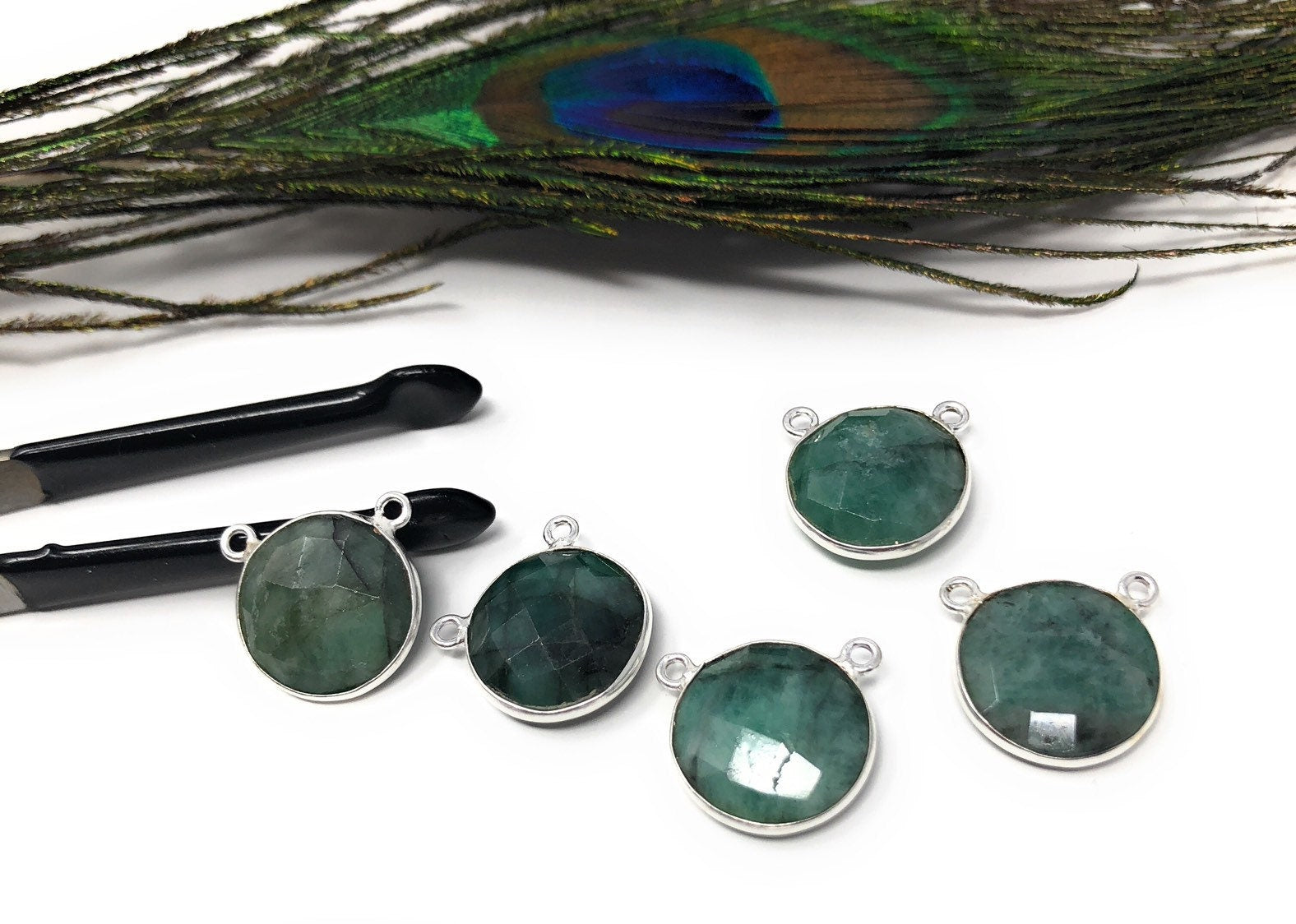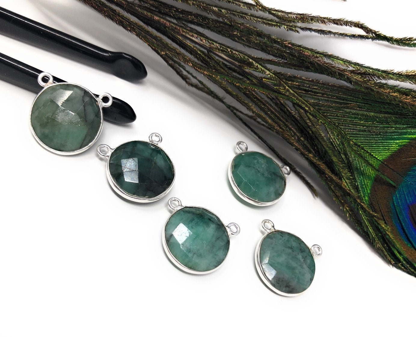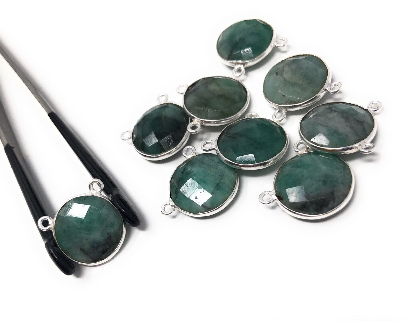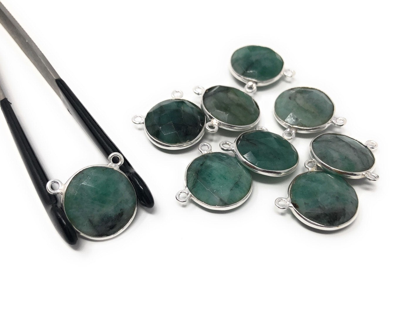 Sterling Silver Natural Emerald Gemstone Connectors Jewelry Findings for Jewelry Making at Wholesale Price.