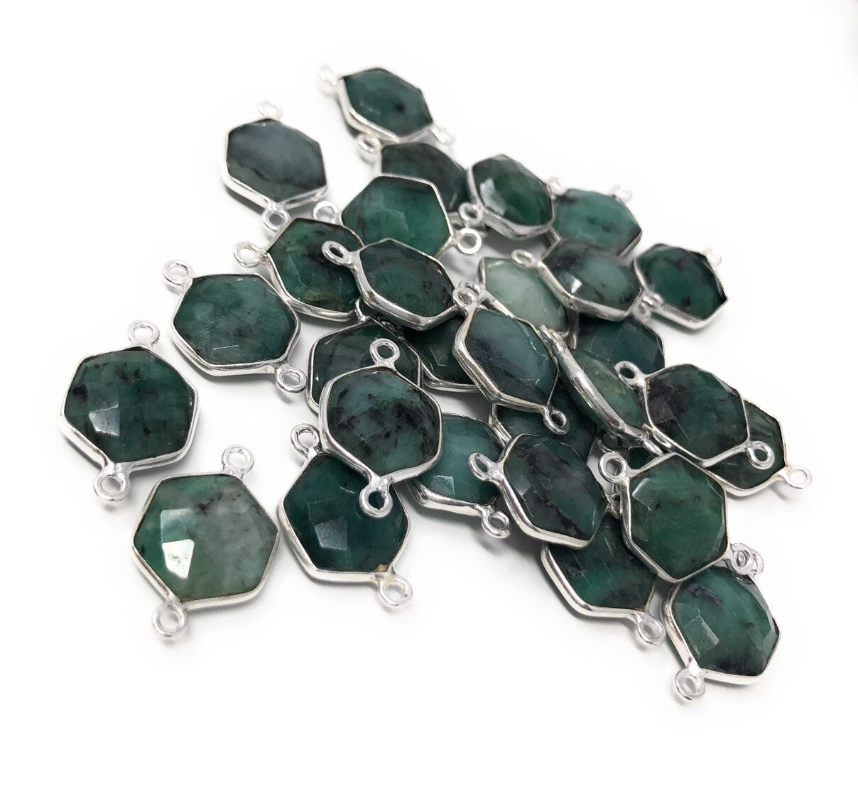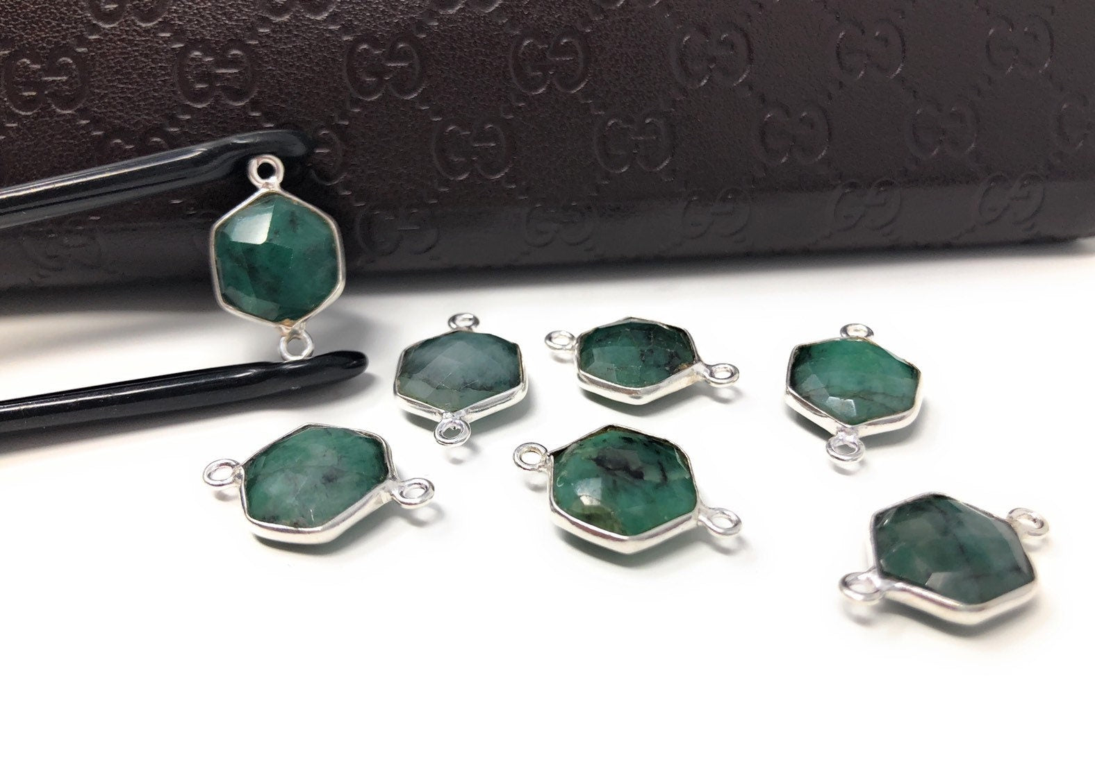 Sterling Silver Natural Emerald Gemstone Connectors Jewelry Findings for Jewelry Making at Wholesale Price.