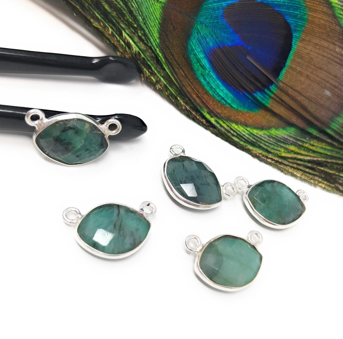 Natural Emerald Gemstone Connector, Sterling Silver Connectors, Jewelry Findings for Jewelry Making, Bulk Jewelry Supplies, Sakota Emerald