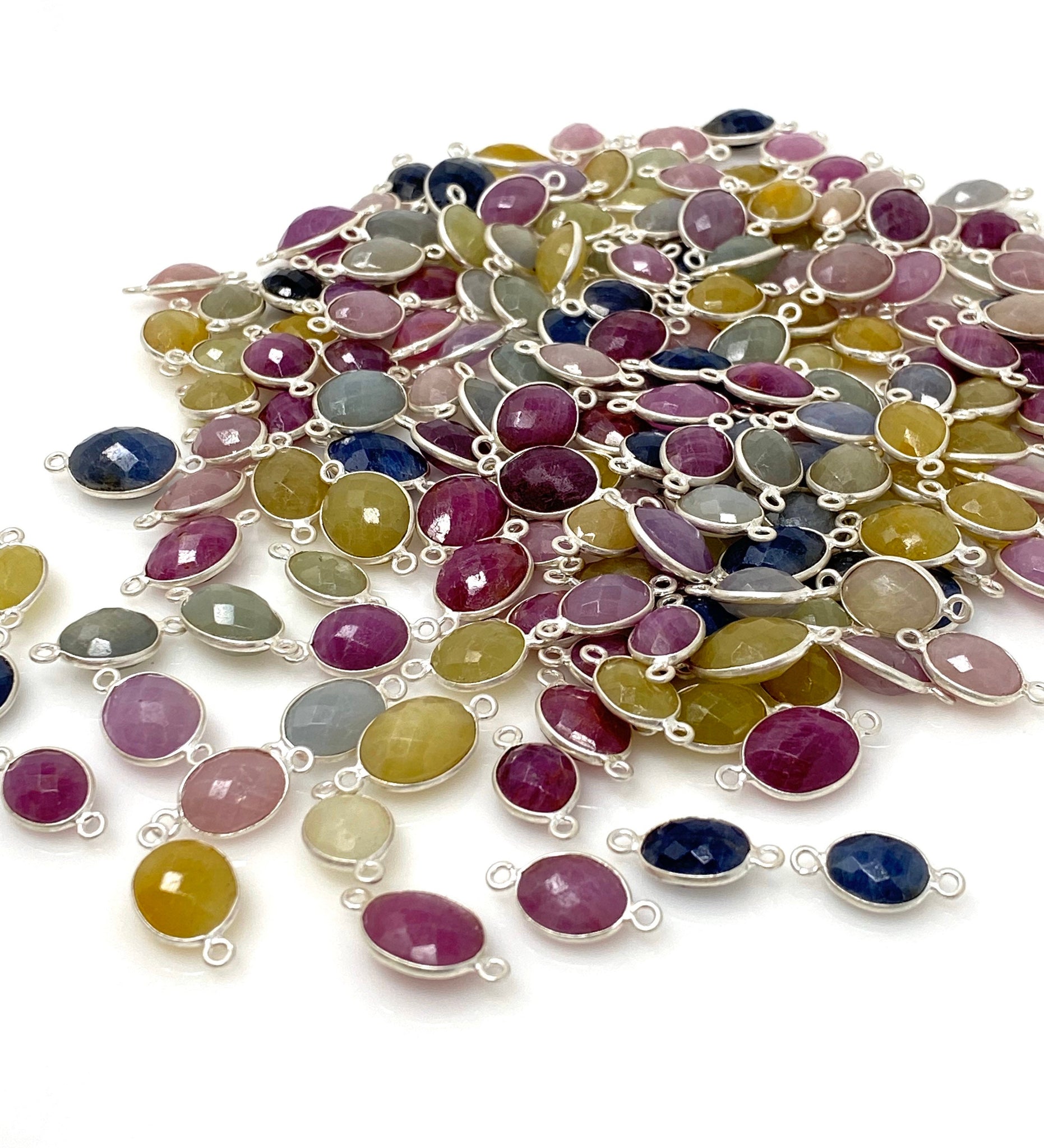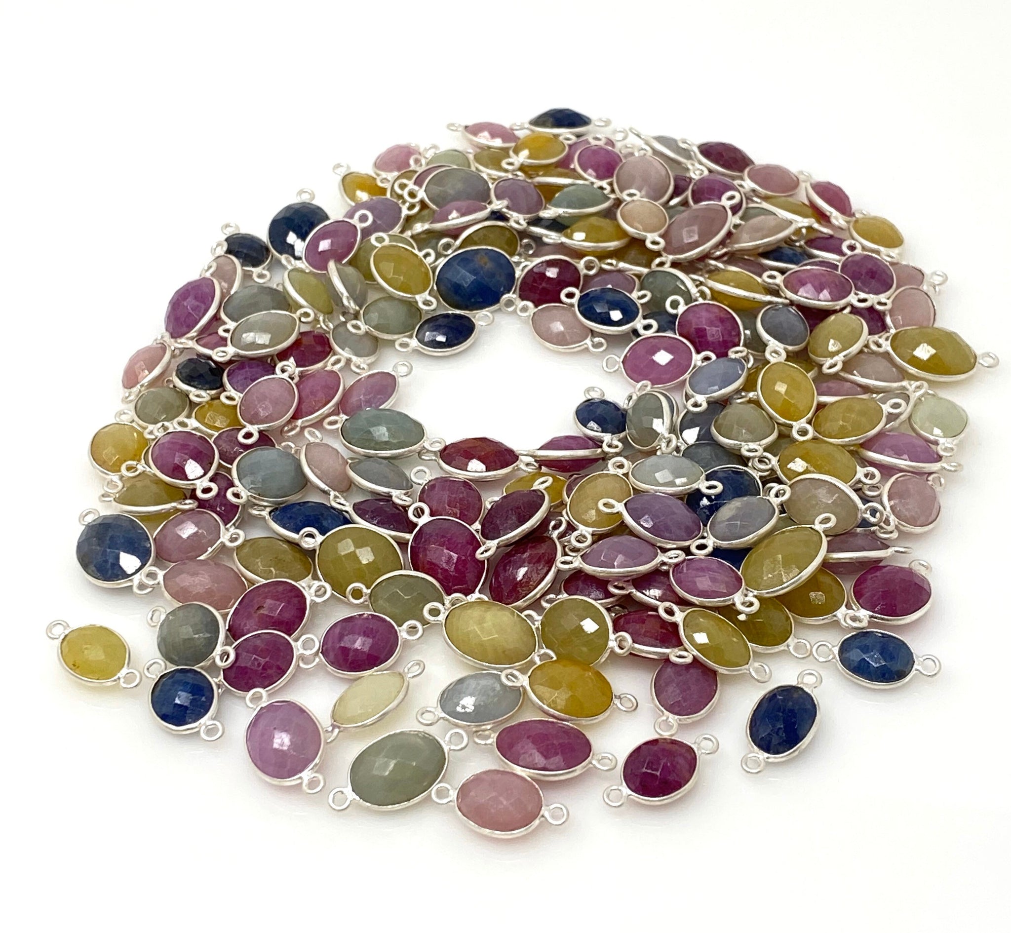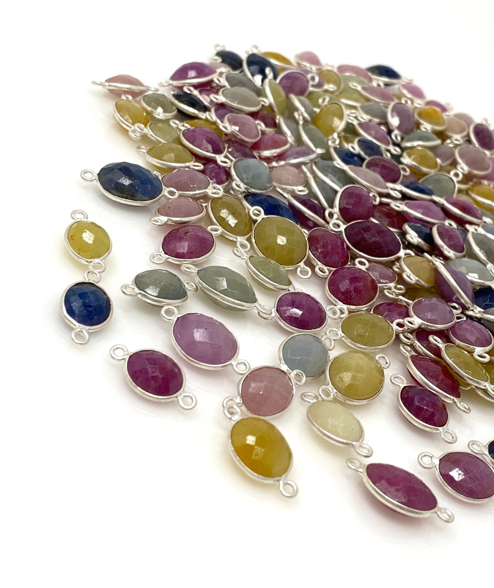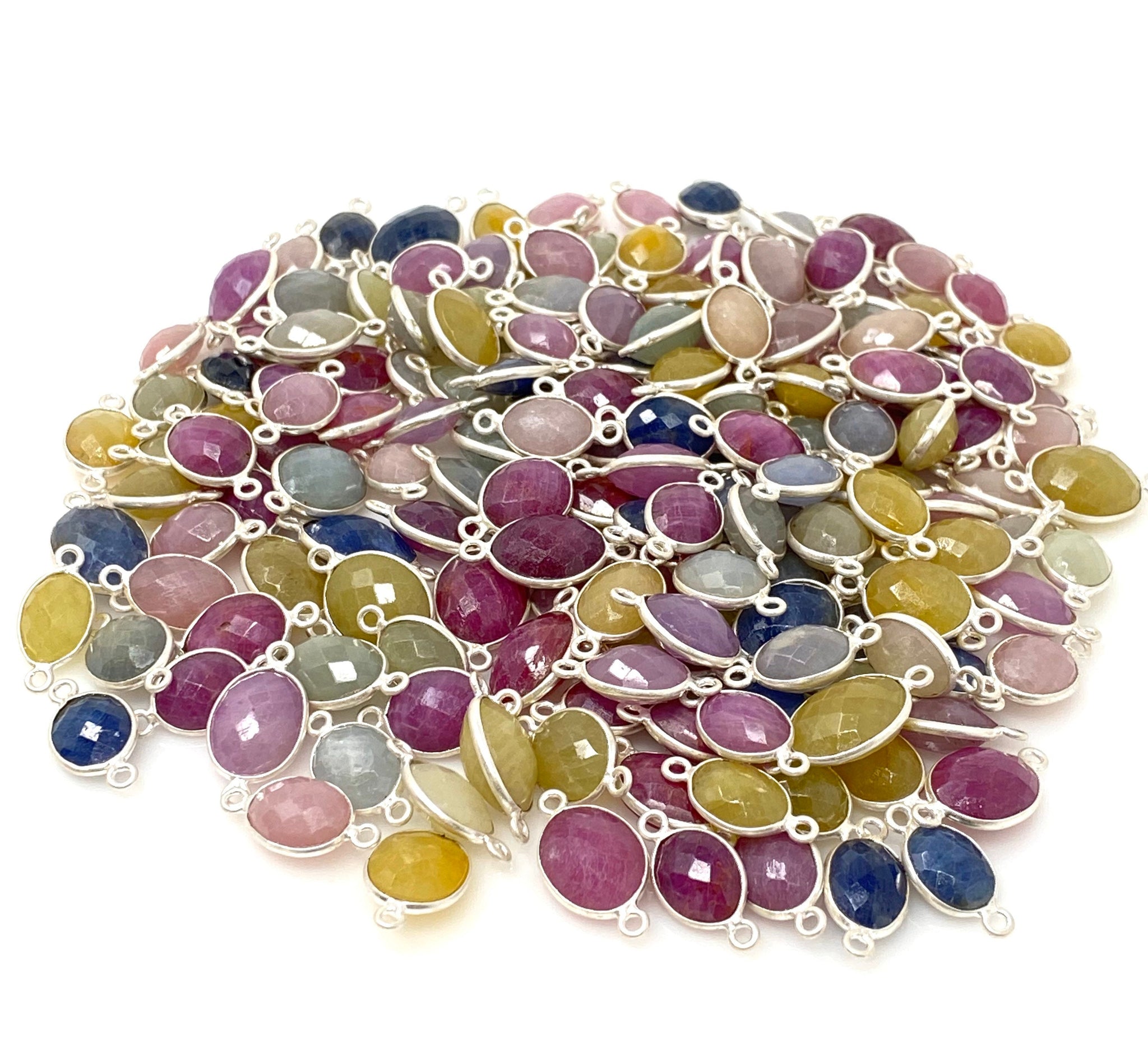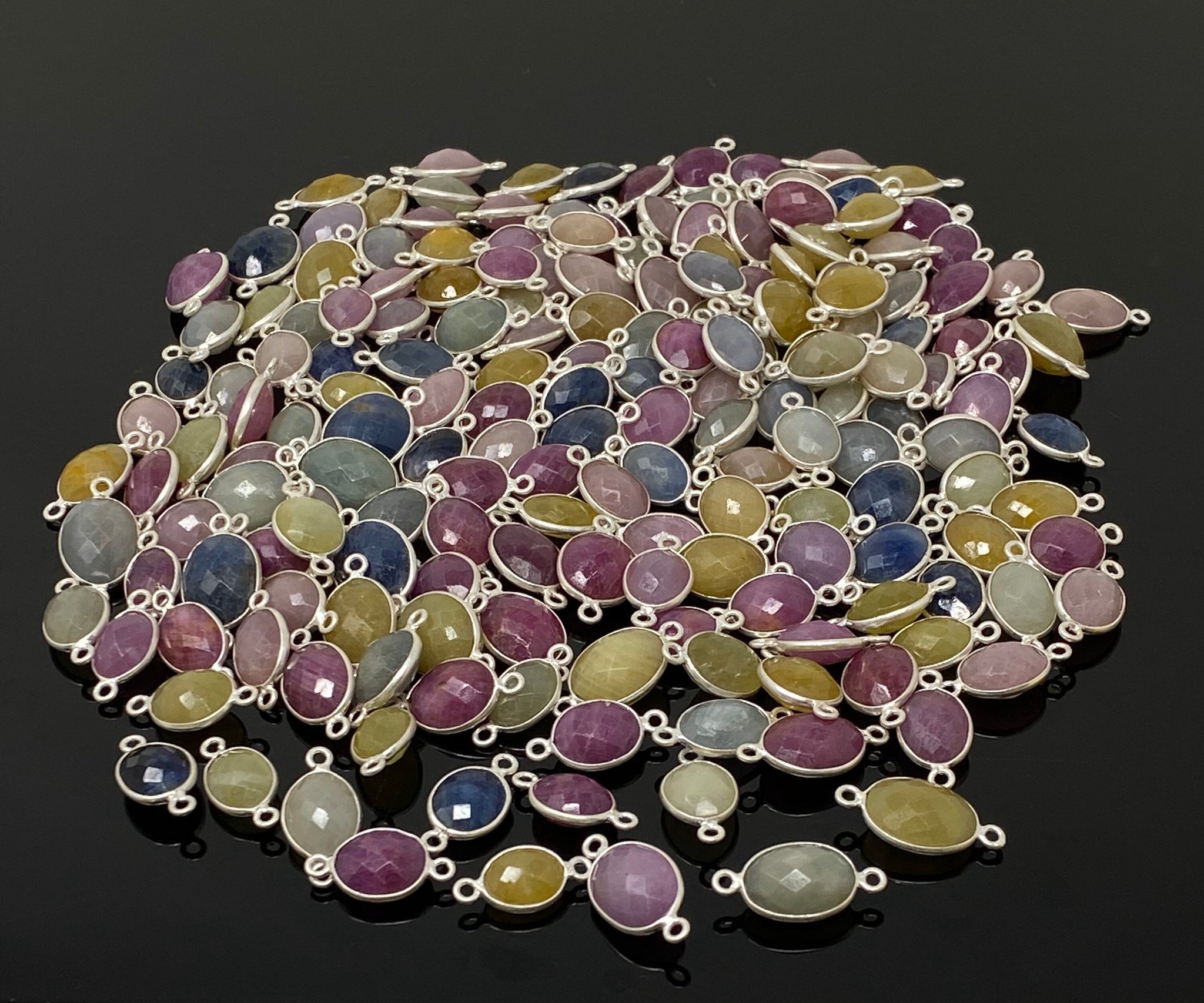 Natural Multi Sapphire Untreated Gemstone Bezel Set Sterling Silver Connectors Jewelry Findings for Jewelry Making at Wholesale Price.