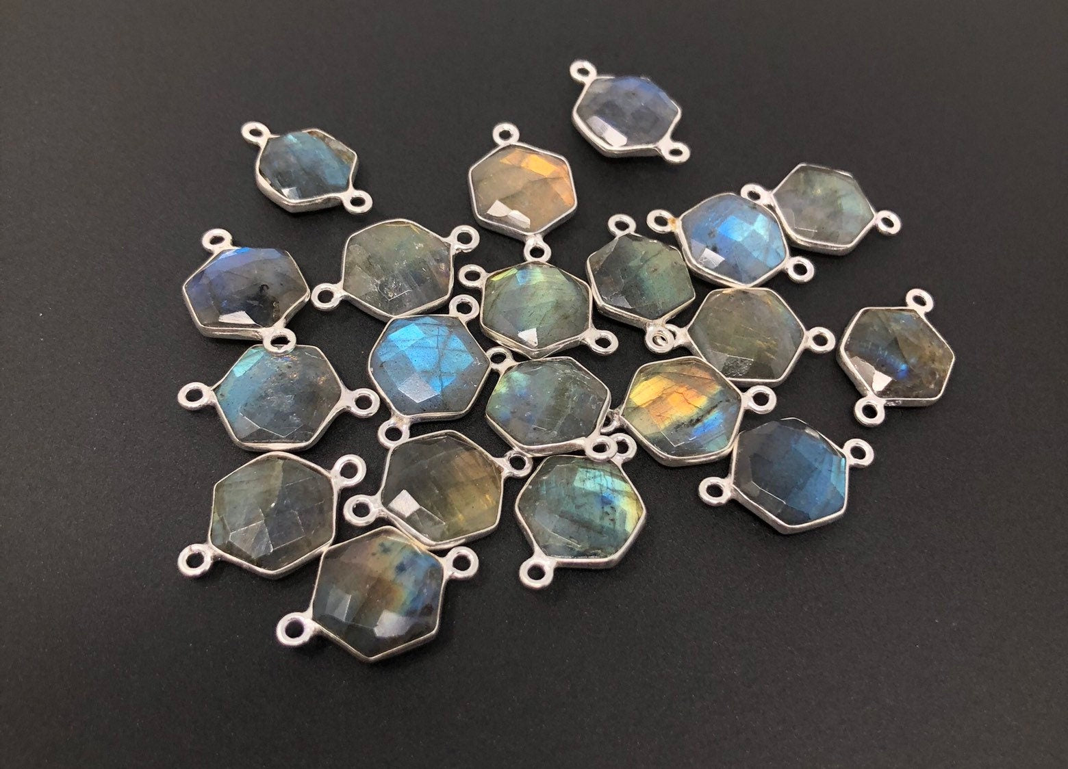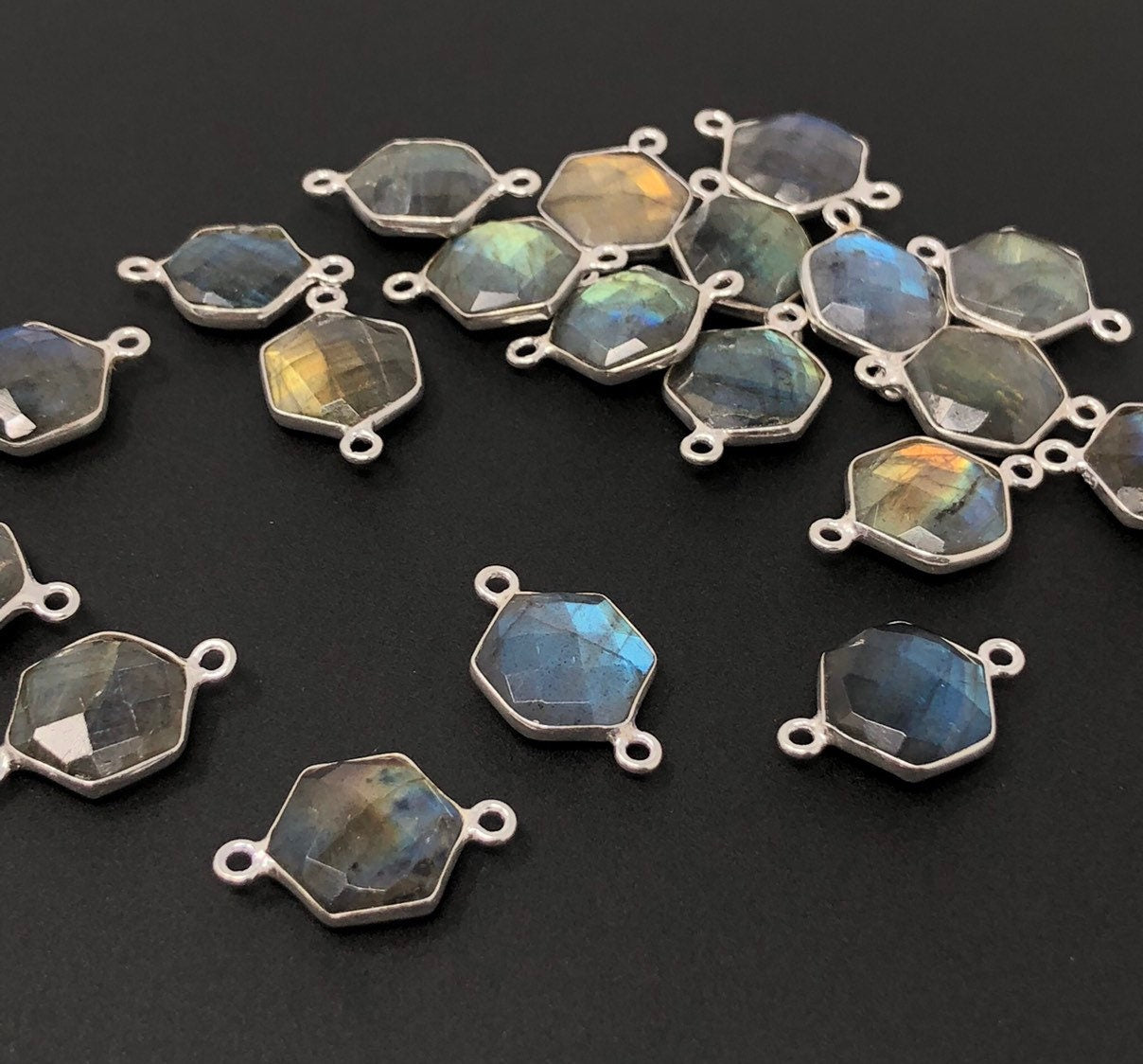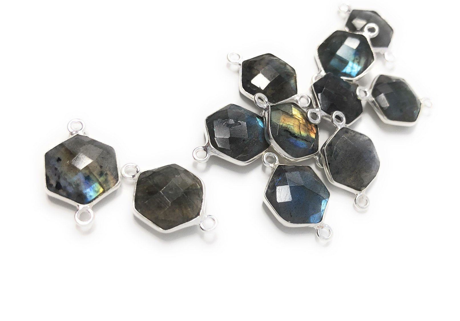 13 Pieces Sterling Silver Labradorite Gemstone Connectors Hexagon Shape Jewelry Findings for Jewelry Making at Wholesale Price.