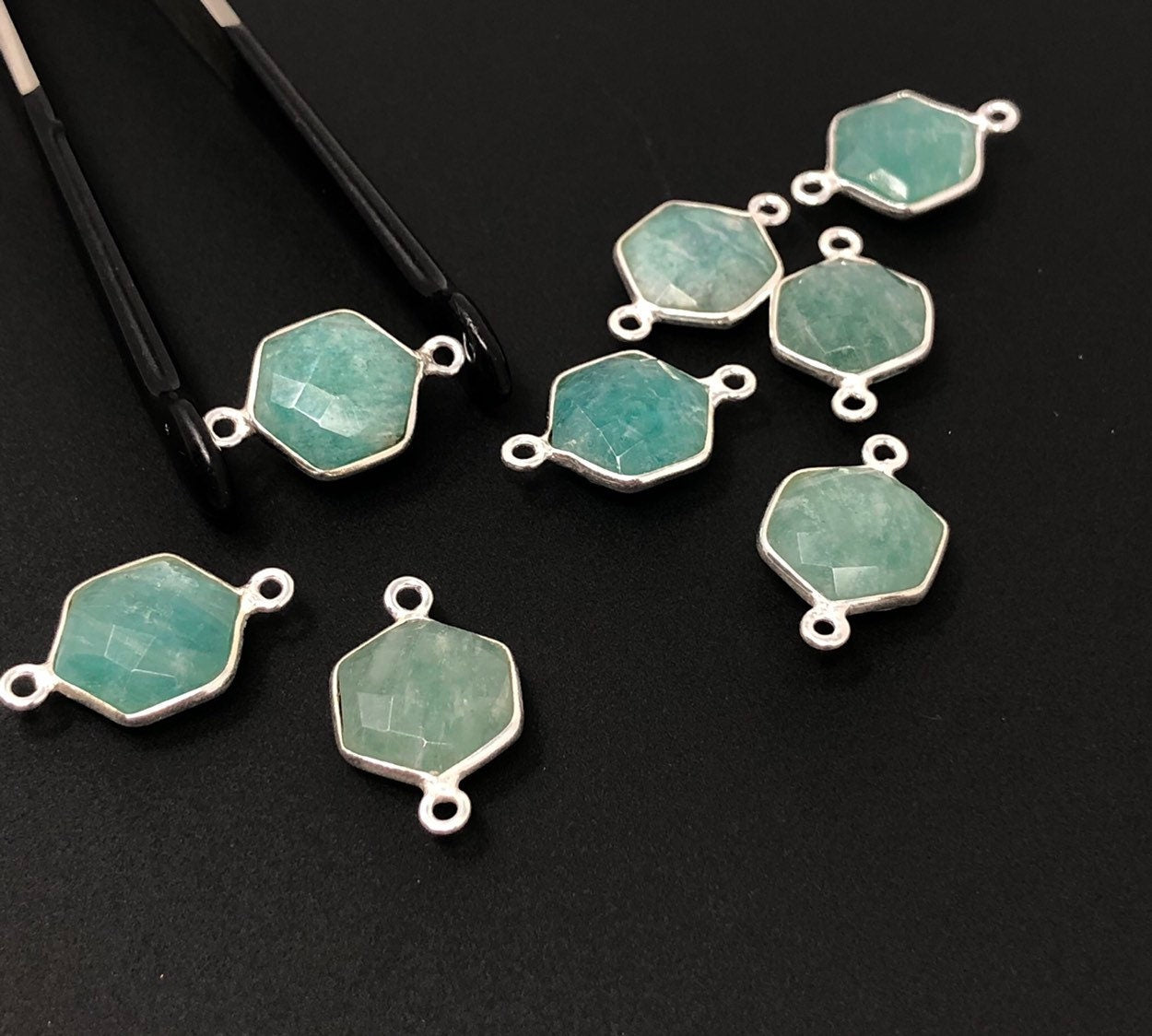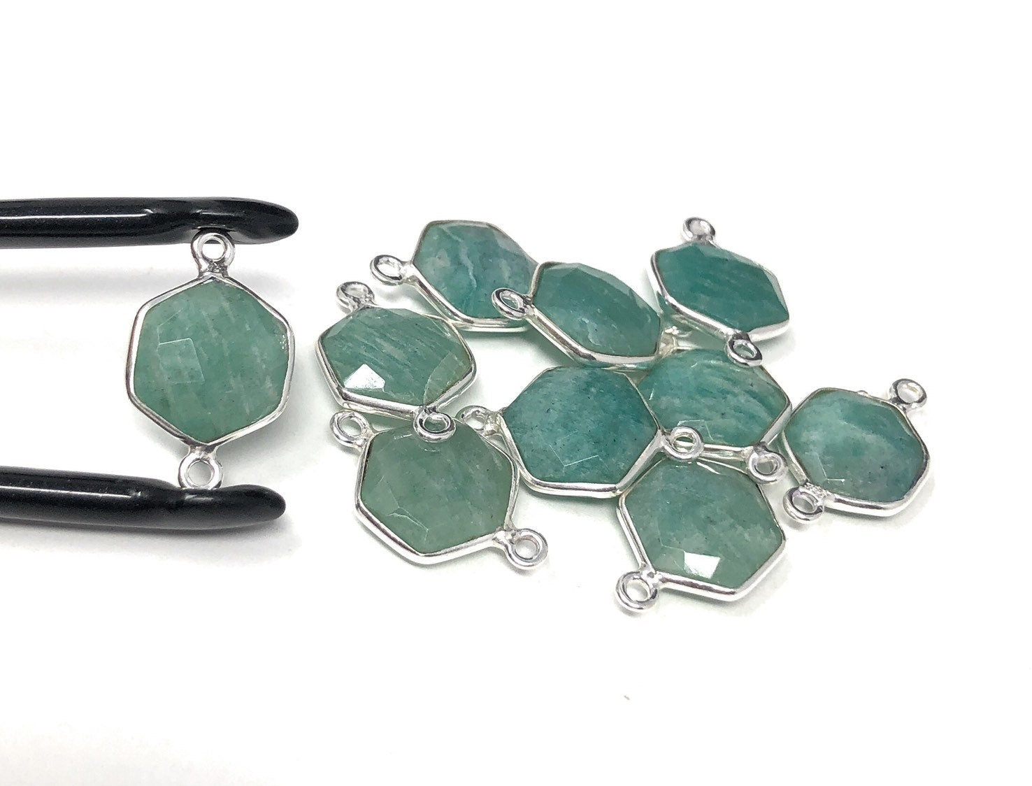 Sterling Silver Natural Gemstone Amazonite Bezel Set Double Sided Briolette Connector Jewelry Findings for Jewelry Making at Wholesale Price.