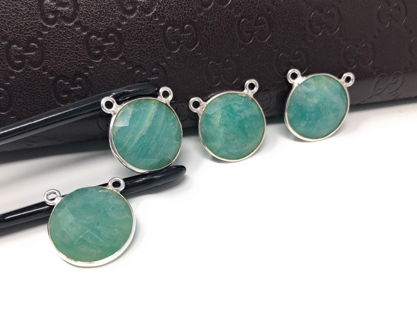 Sterling Silver Natural Gemstone Amazonite Bezel Set Double Sided Briolette Connector Jewelry Findings for Jewelry Making at Wholesale Price.