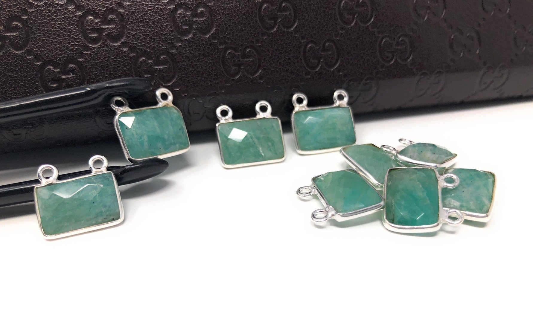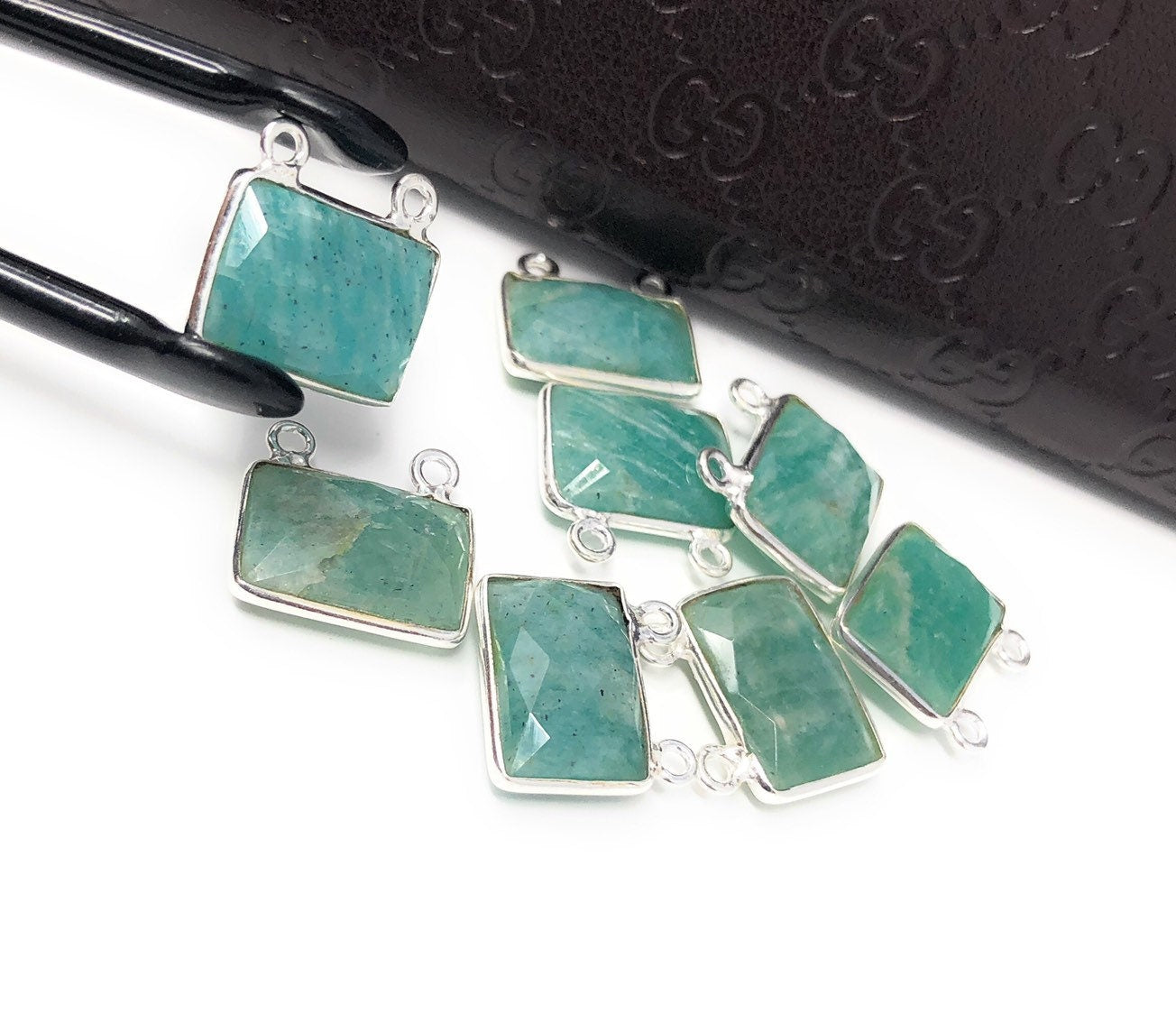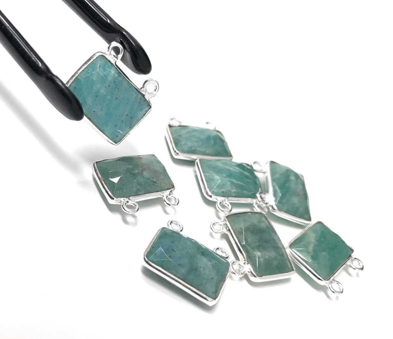 Sterling Silver Natural Gemstone Amazonite Bezel Set Double Sided Briolette Connector Jewelry Findings for Jewelry Making at Wholesale Price.
