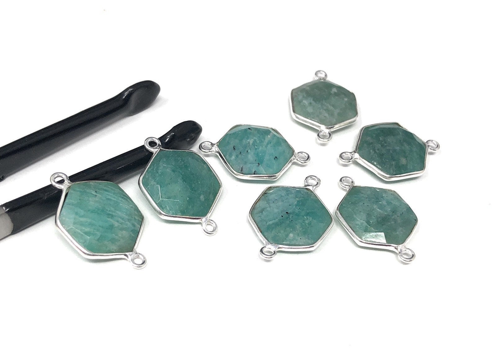 Sterling Silver Amazonite Gemstone Connector, Bulk Charms, Jewelry Supplies for Jewelry Making, Wholesale Jewelry Findings, 1 Pc