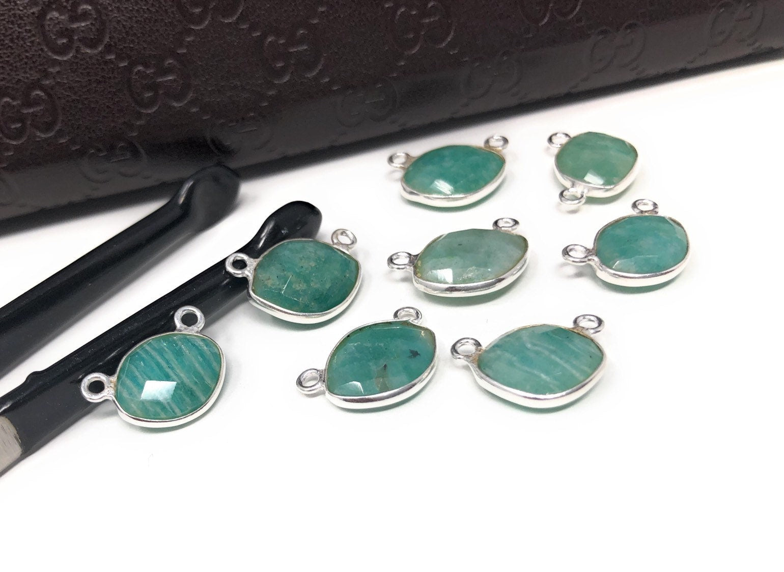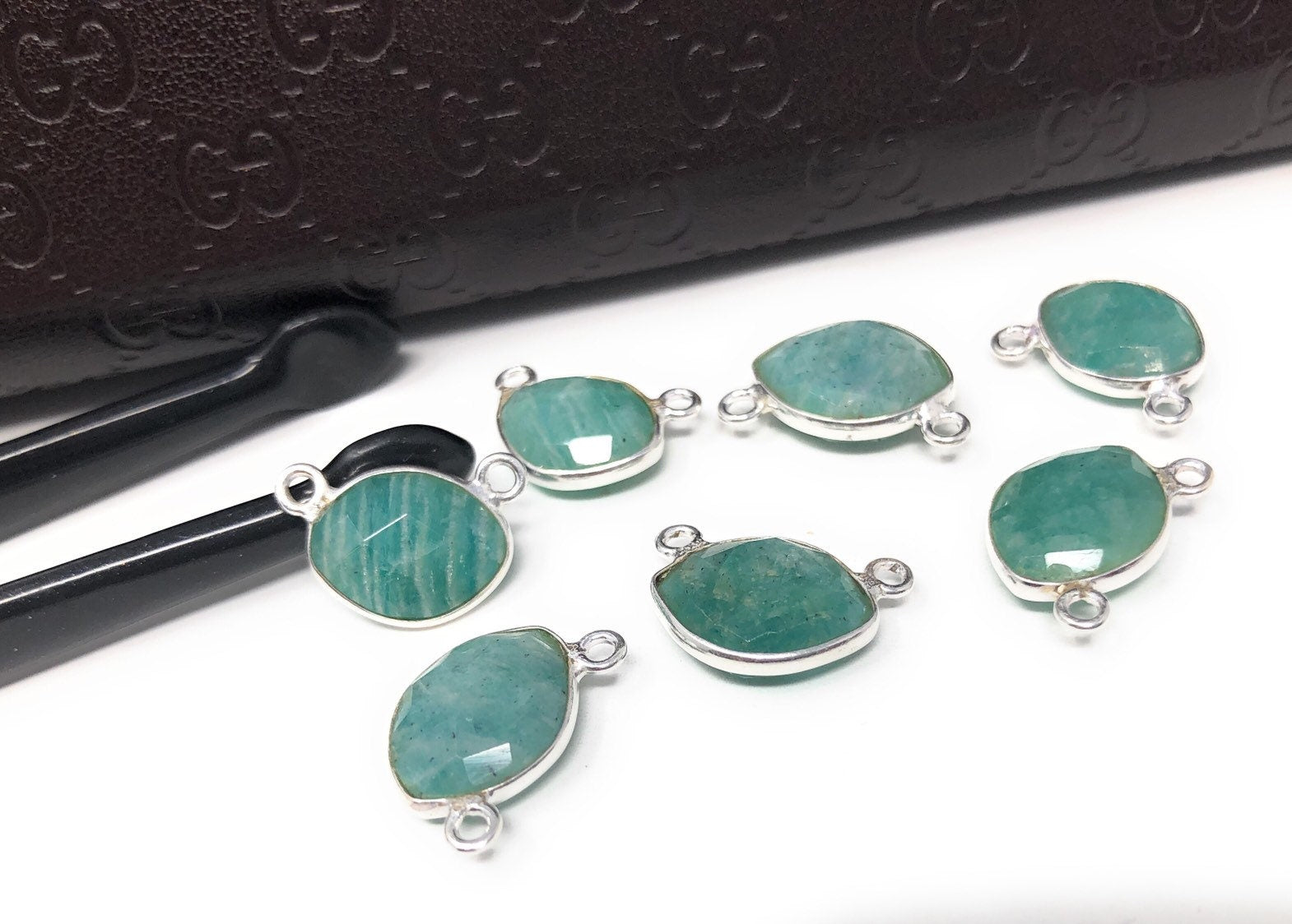 Sterling Silver Natural Gemstone Amazonite Bezel Set Double Sided Briolette Connector Jewelry Findings for Jewelry Making at Wholesale Price.