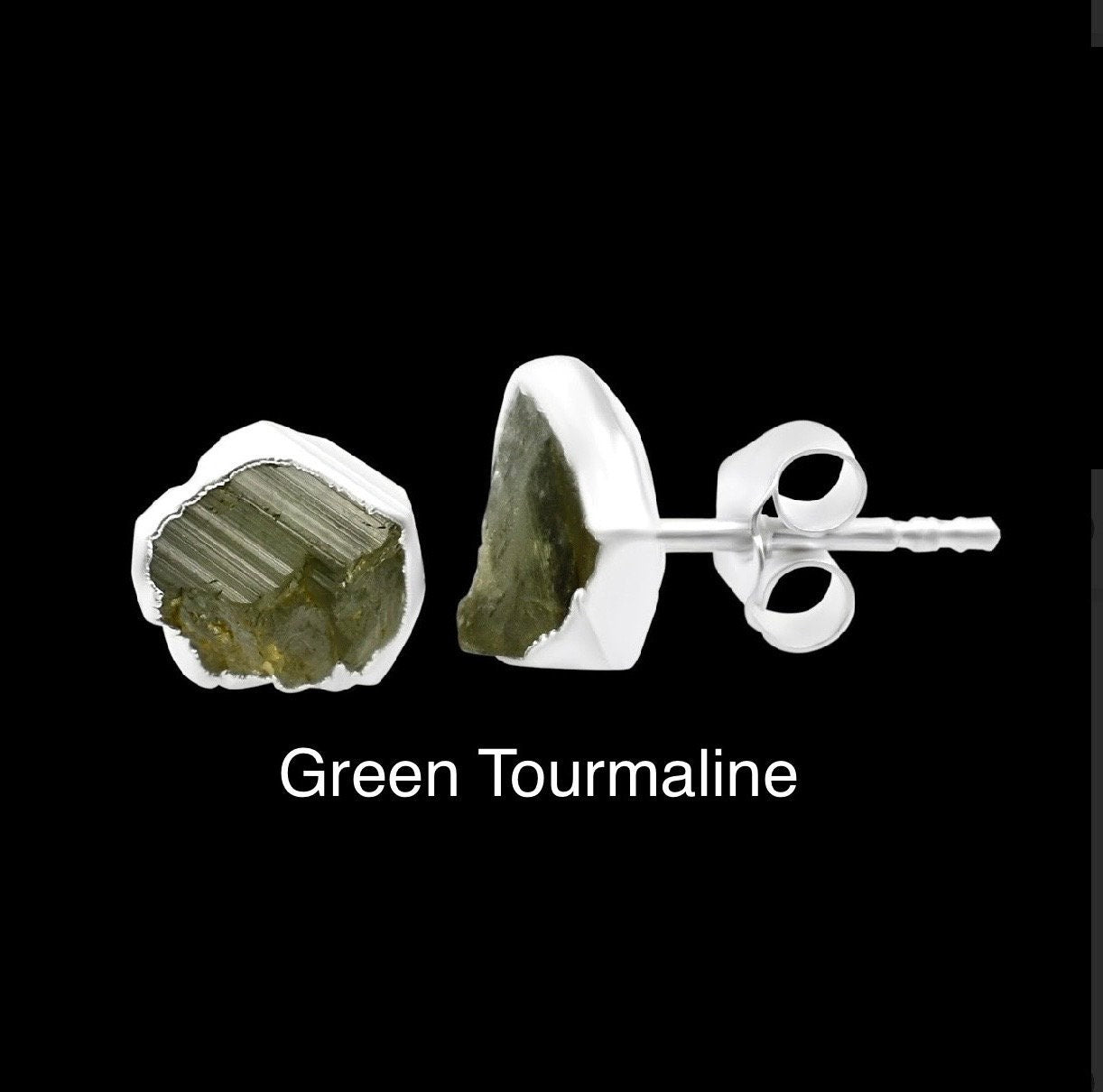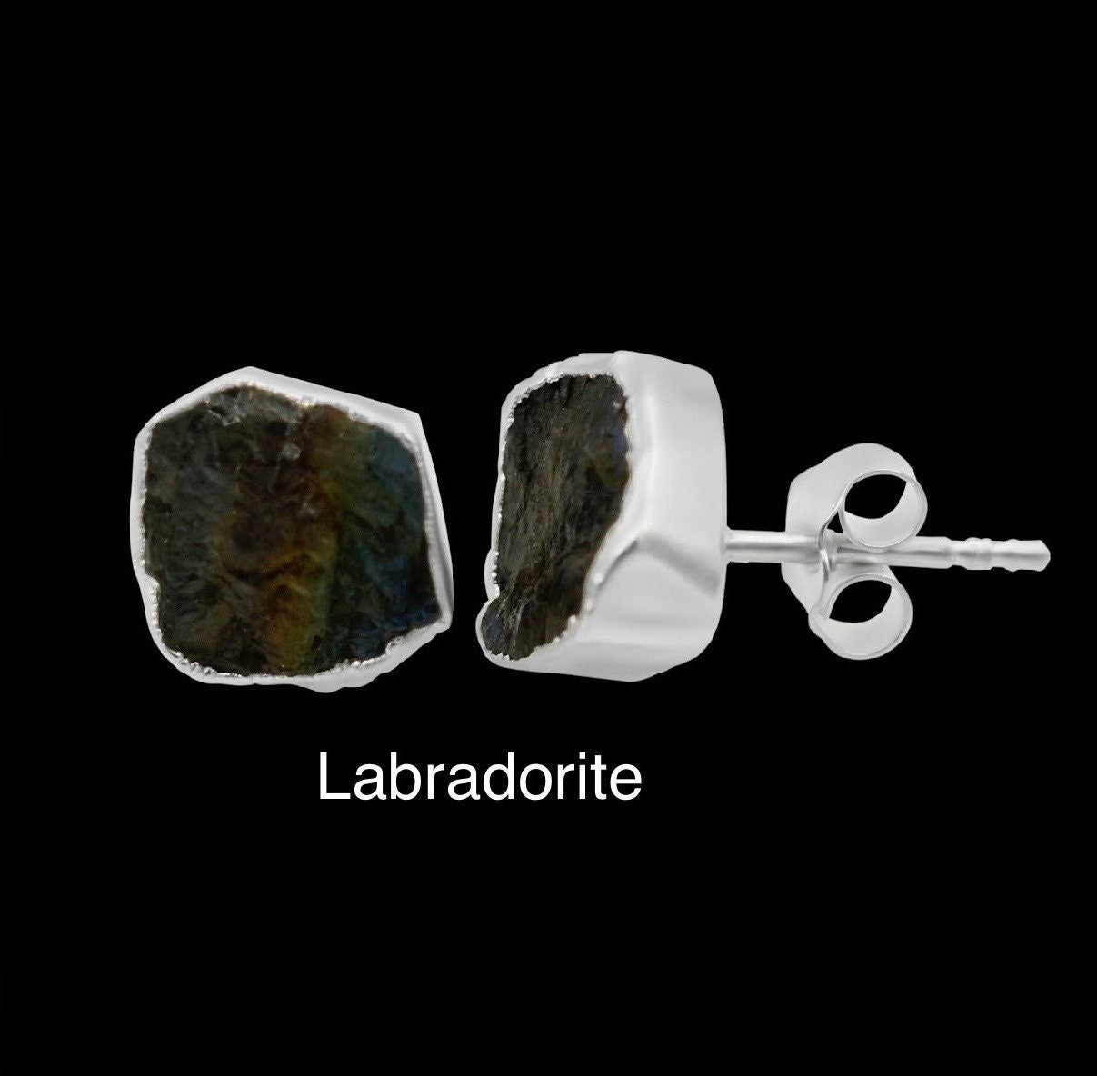 Raw Birthstone Electroplated Stud Earrings, Sterling Silver Gemstone Stud Earrings, Healing Crystal Rough Gemstone Studs