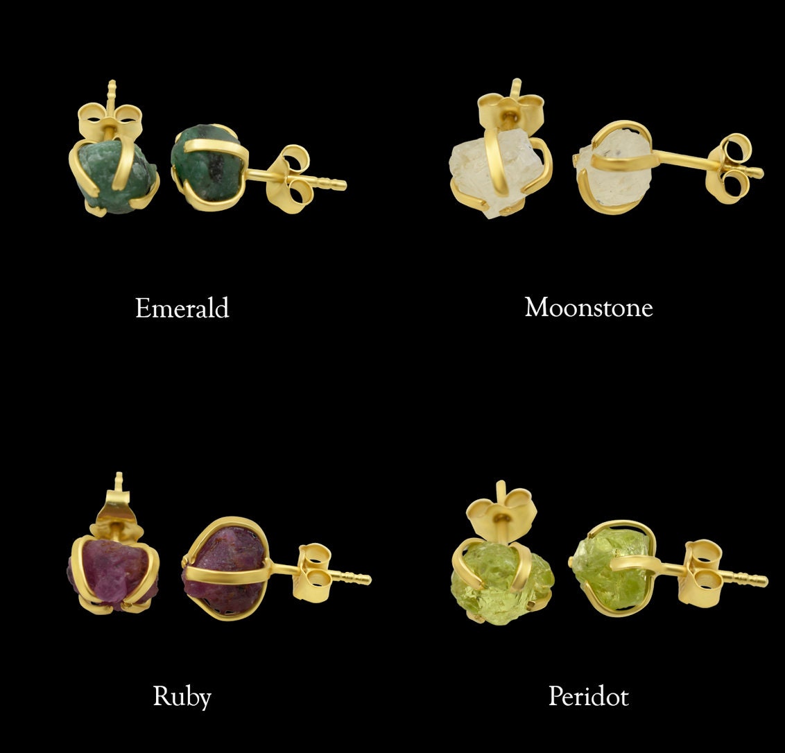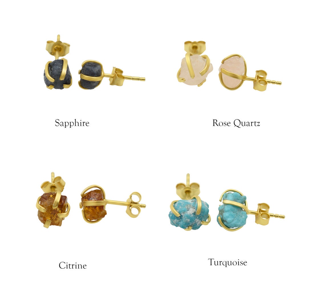 These Natural Rough Handmade Gemstone Stud Earrings are made with raw cut gemstone in a 4 Prong Setting and Gold Plating over Sterling Silver. These makes a perfect gift for the loved ones for any Occassion.
