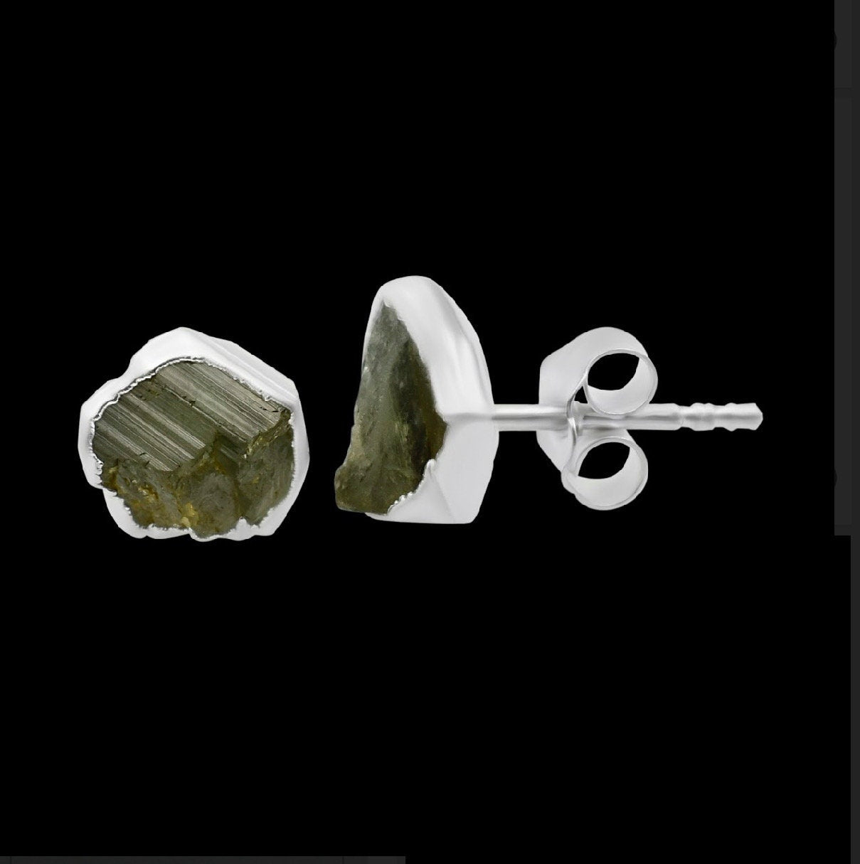 Raw Green Tourmaline Stud Earrings, Rough Gemstone Electroplated Stud Earrings, Healing Crystal Rough Gemstone Studs