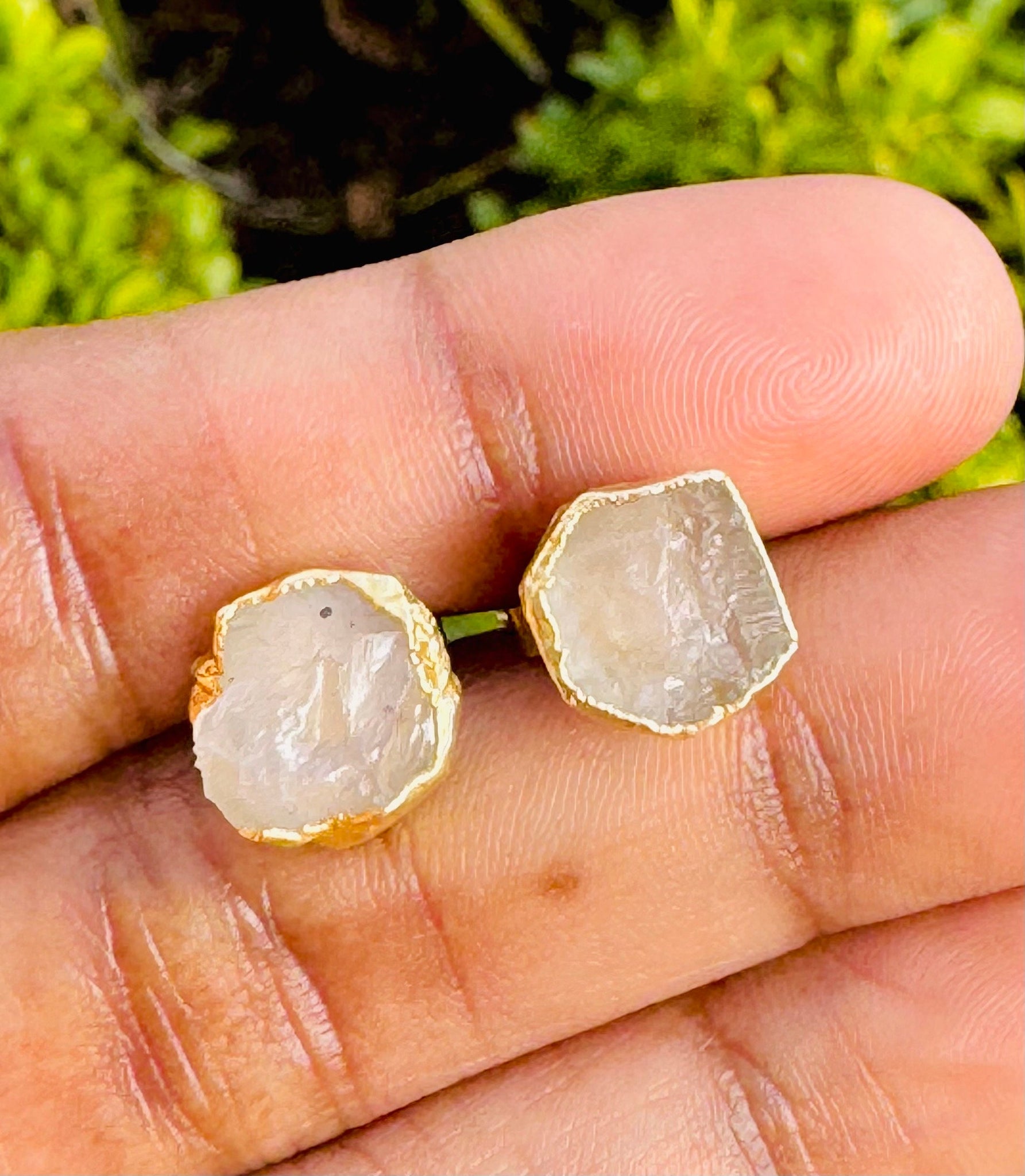 Handcrafted with love and attention to detail, these earrings showcase the raw beauty of natural gemstones. Each stone is carefully selected for its unique shape and color, then delicately electroplated to enhance its natural appeal. The rich, raw textures combined with the shimmering electroplated finish create a mesmerizing contrast that will make a statement wherever you go. These earrings are the perfect accessory to add a touch of elegance and sophistication to any outfit. Whether for a special occasion or daily wear, these Raw Electroplated Gemstone Stud Earrings are sure to turn heads and be cherished for years to come.