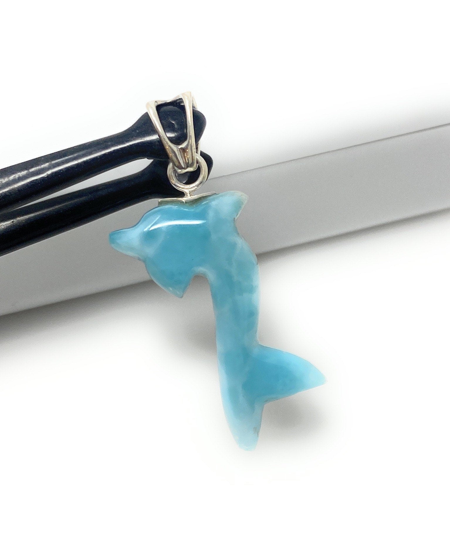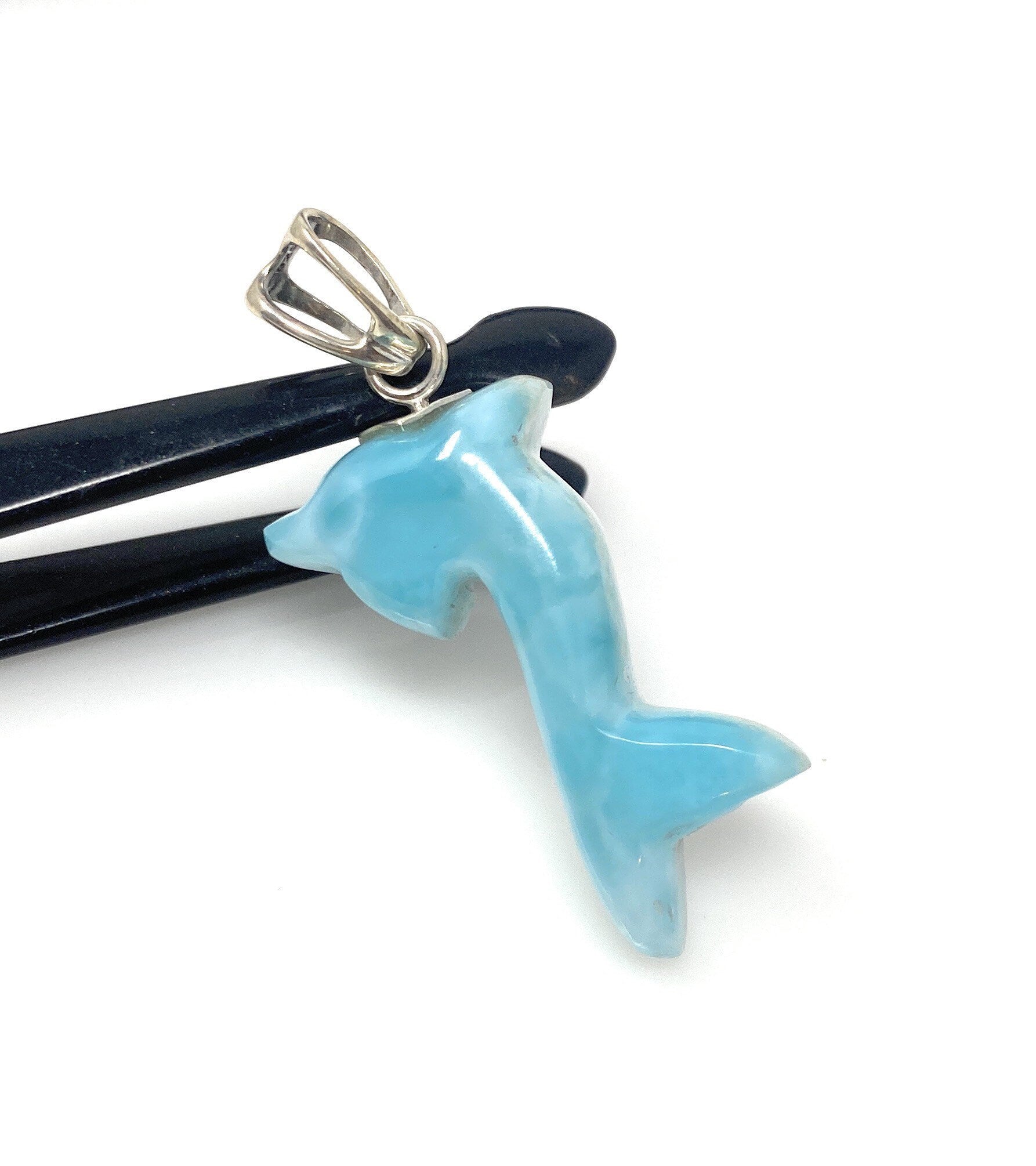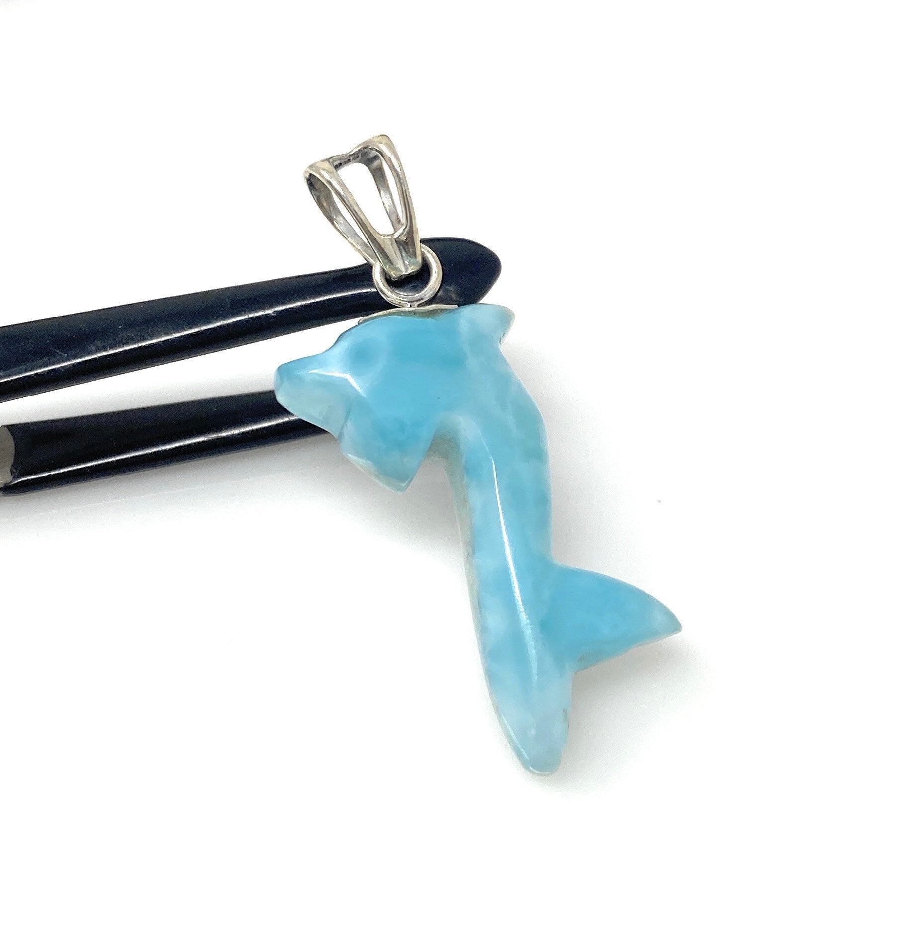 10g Larimar Dolphin Pendant, Larimar Pendant, Bohemian Jewelry, Dominican Republic Larimar Pendant