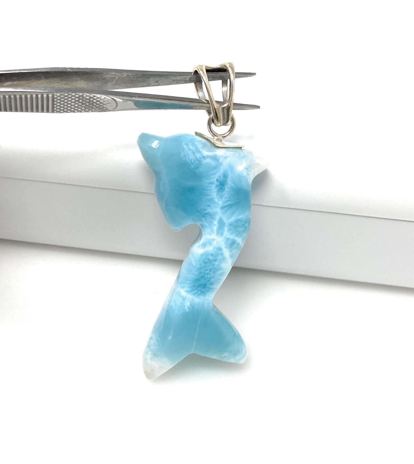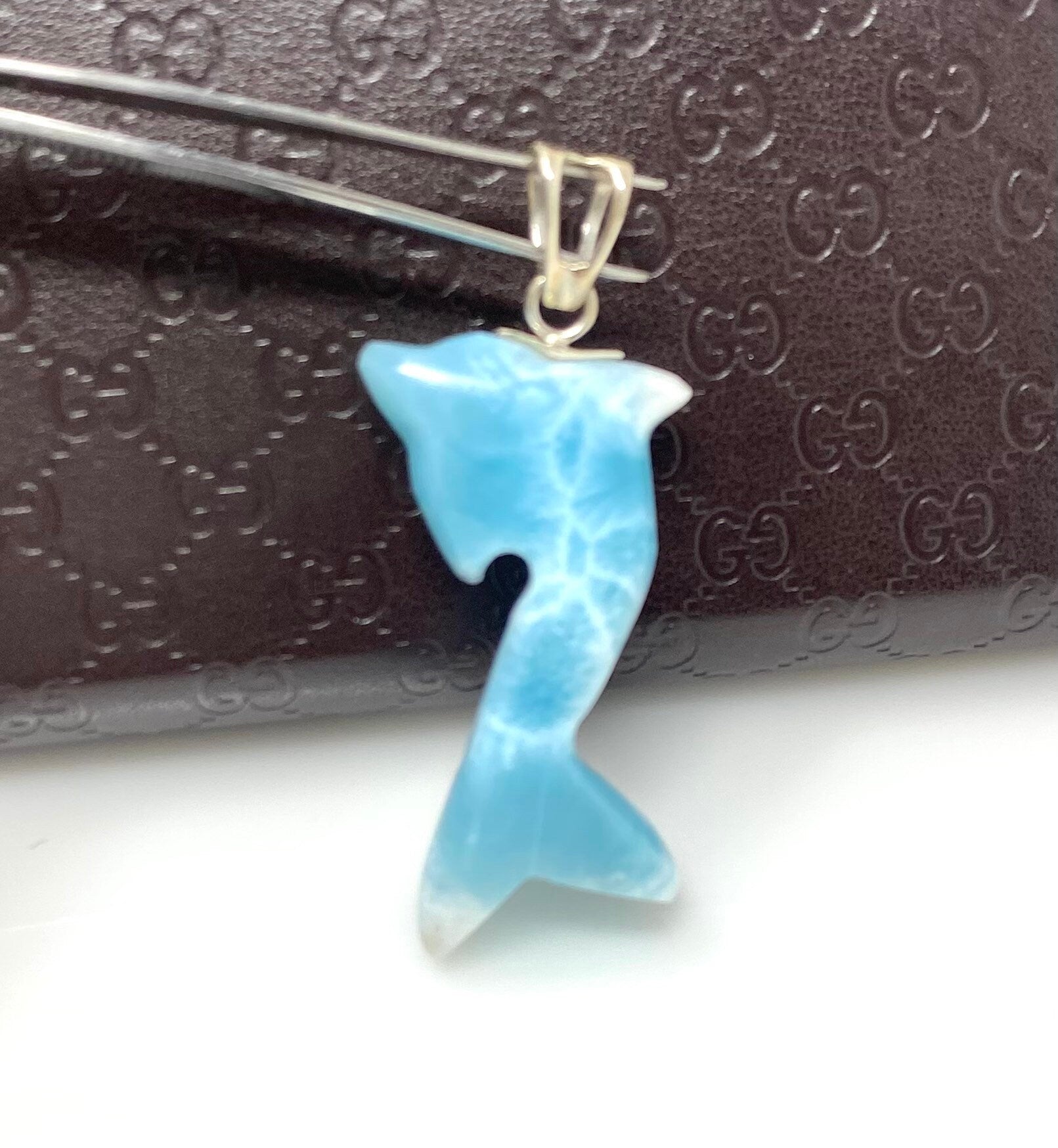 12g Larimar Dolphin Pendant, Larimar Pendant, Bohemian Jewelry, Dominican Republic Larimar Pendant