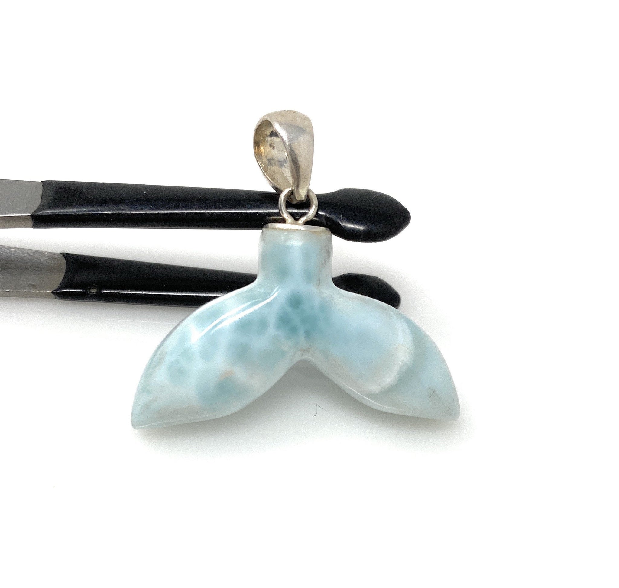 12g Larimar Mermaid Tail Pendant, Sterling Silver Pendant, Bohemian Jewelry, Larimar Whale Tail Pendant