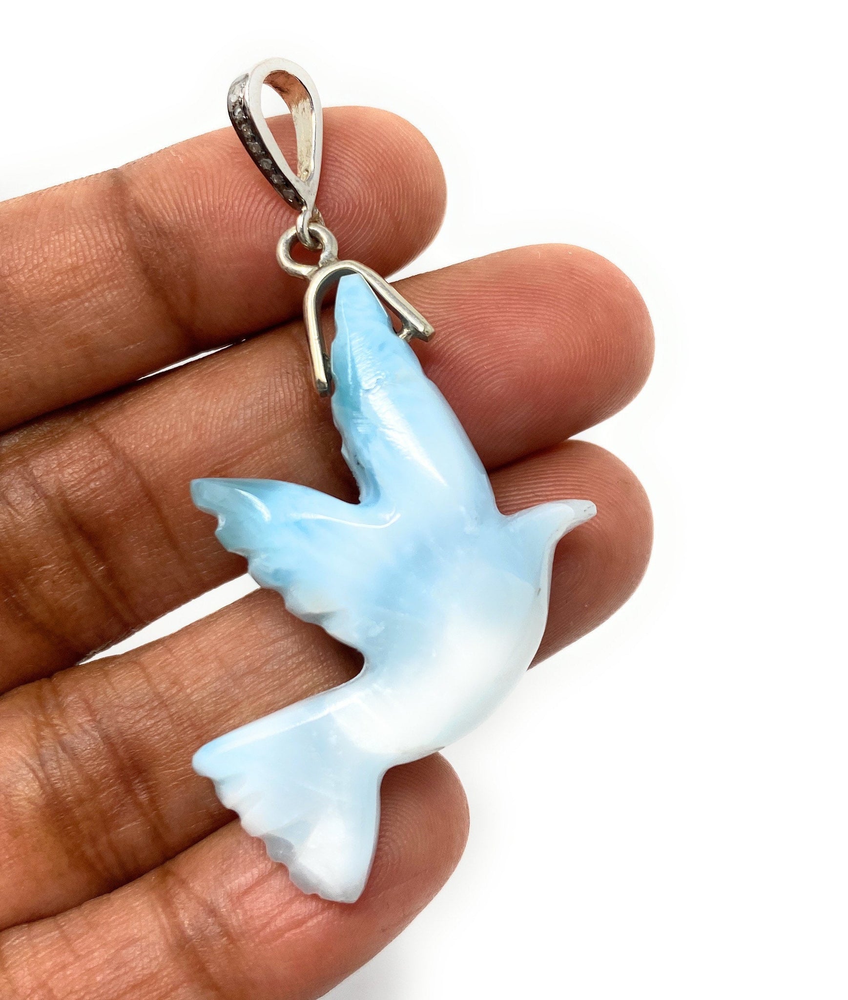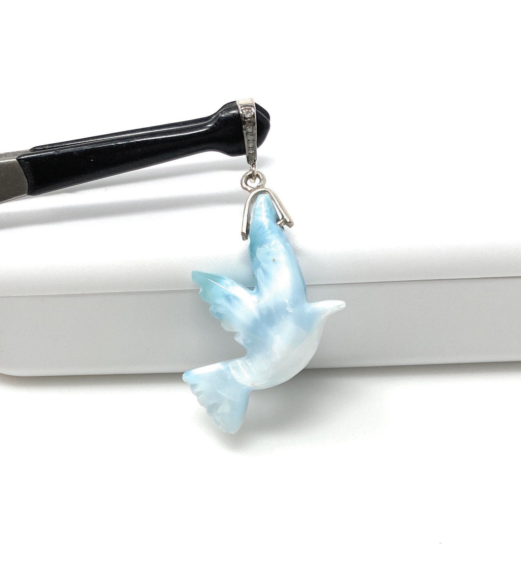 12g Rare Large Larimar Bird Pave Diamond Pendant, Silver Bohemian Jewelry, Dominican Republic Larimar Bird Pendant