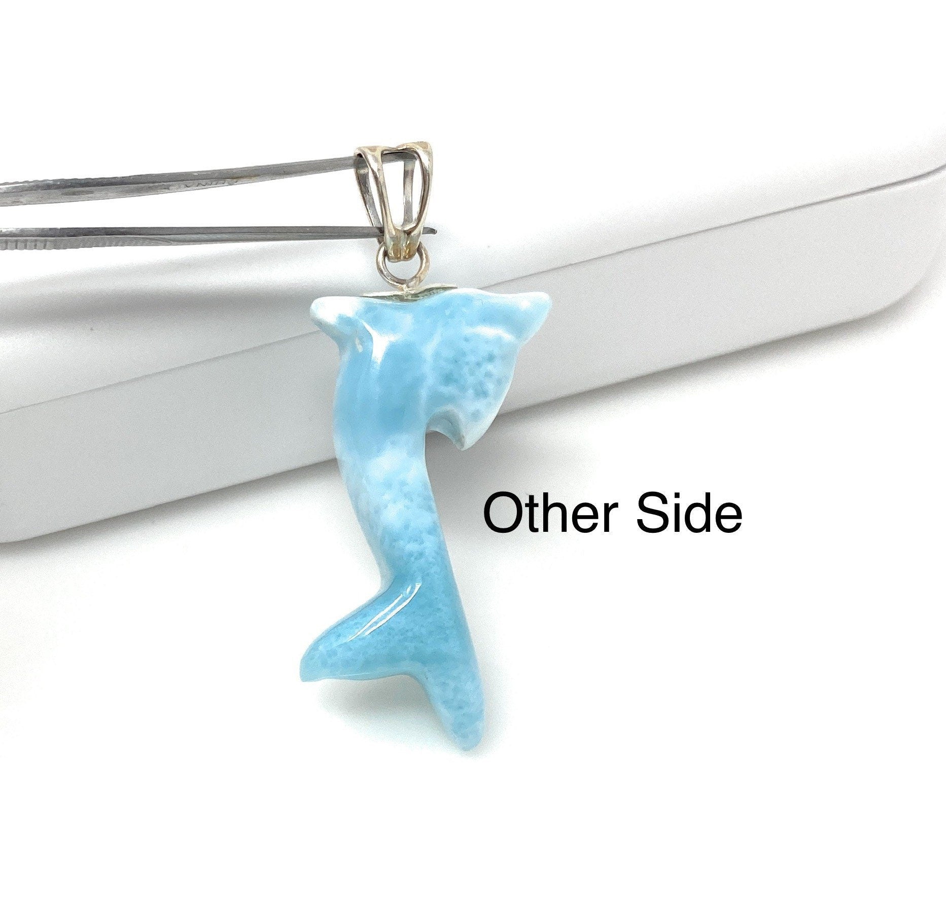Reversible Larimar Gemstone Sterling Silver Dolphin Pendant Jewelry at Wholesale Price.
