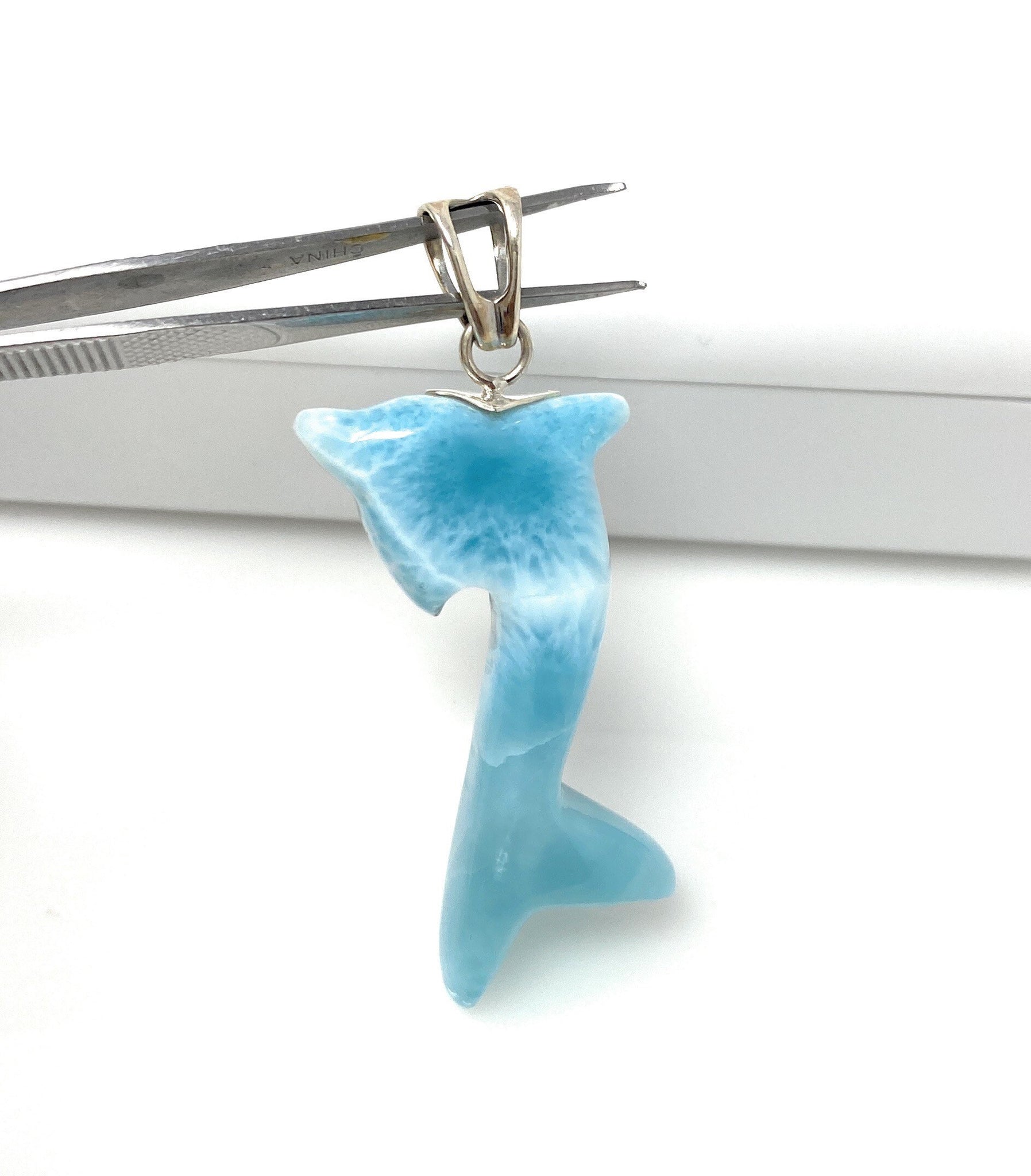 14g Larimar Dolphin Pendant, Reversible Larimar Pendant, Bohemian Jewelry, Dominican Republic Larimar Pendant
