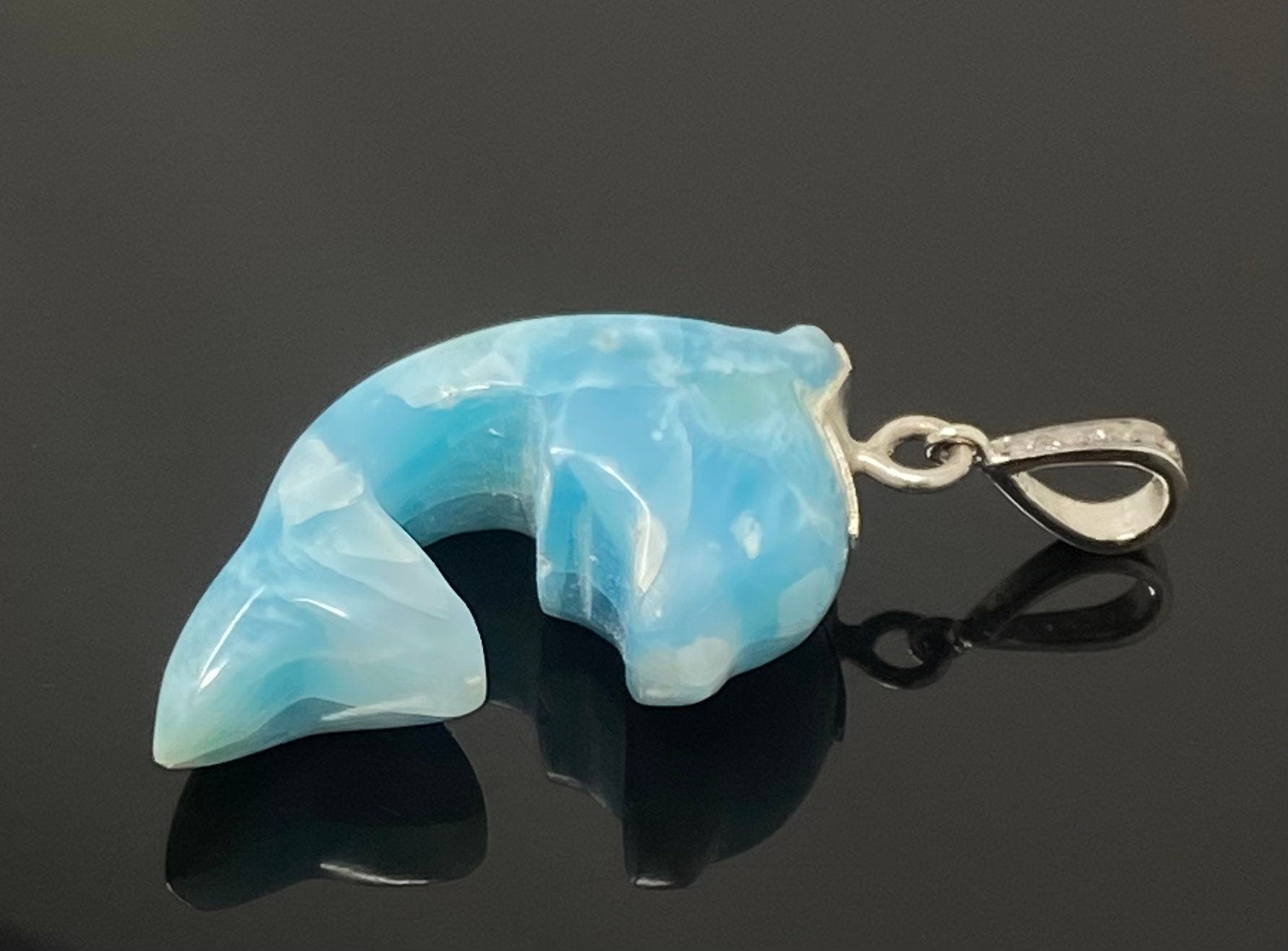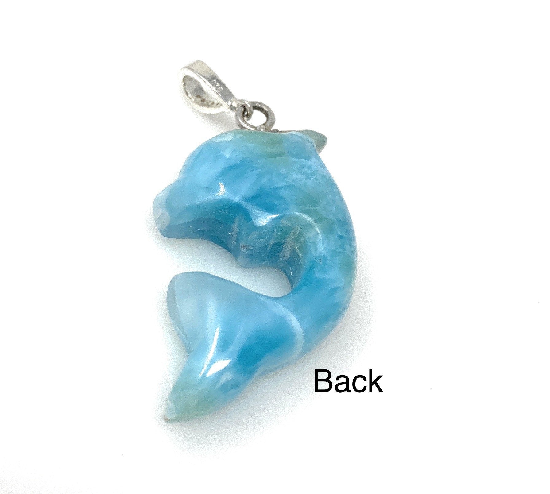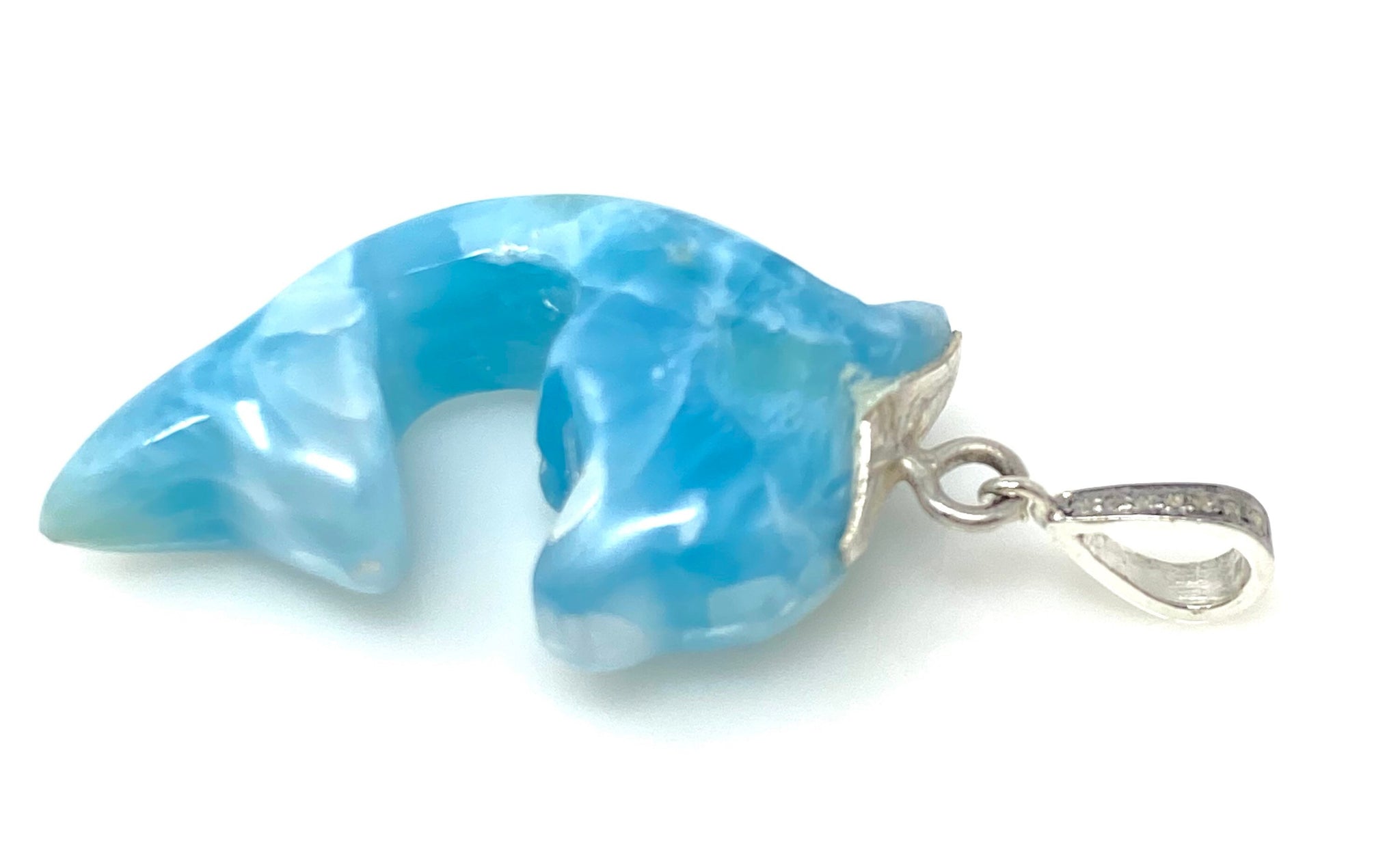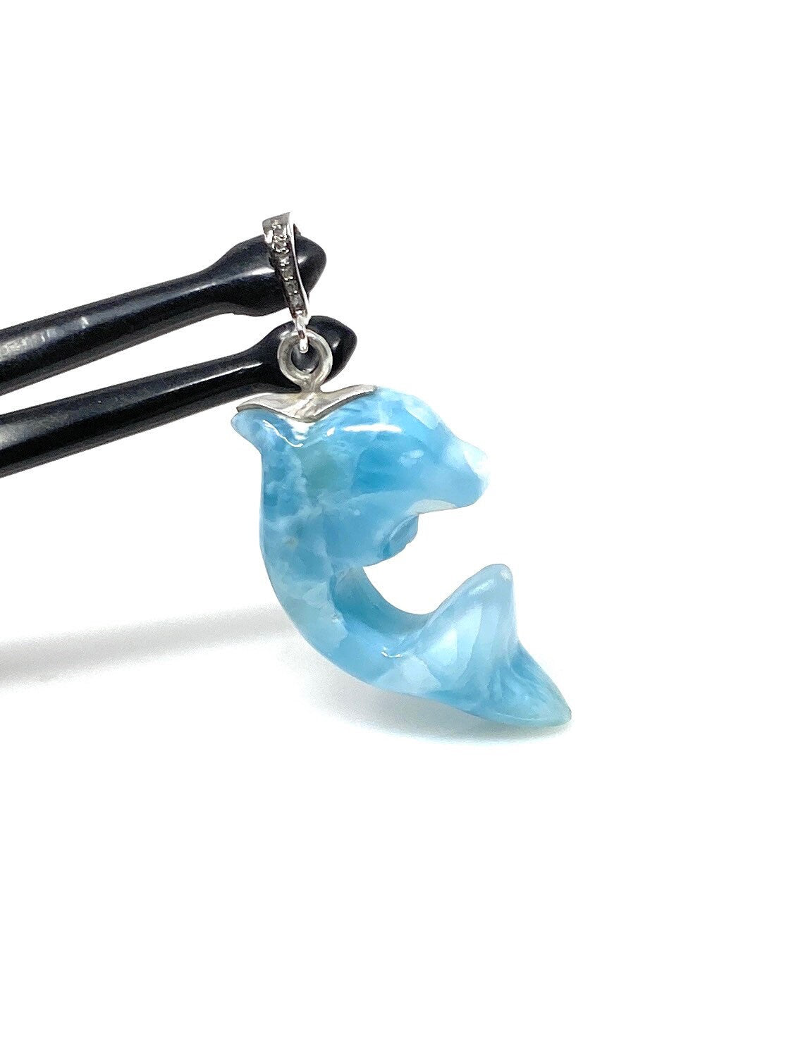 14g Larimar Dolphin Pendant, Silver Pave Diamond Larimar Pendant, Bohemian Jewelry, Dominican Republic Larimar Pendant