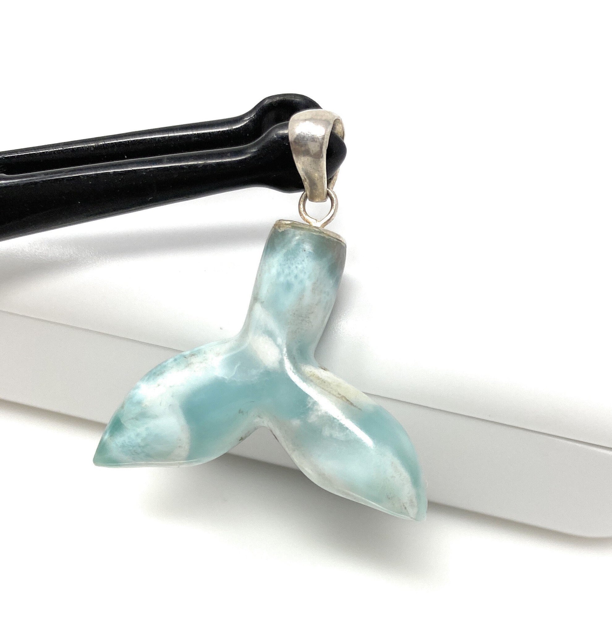 14g Larimar Mermaid Tail Pendant, Sterling Silver Pendant, Bohemian Jewelry, Larimar Whale Tail Pendant