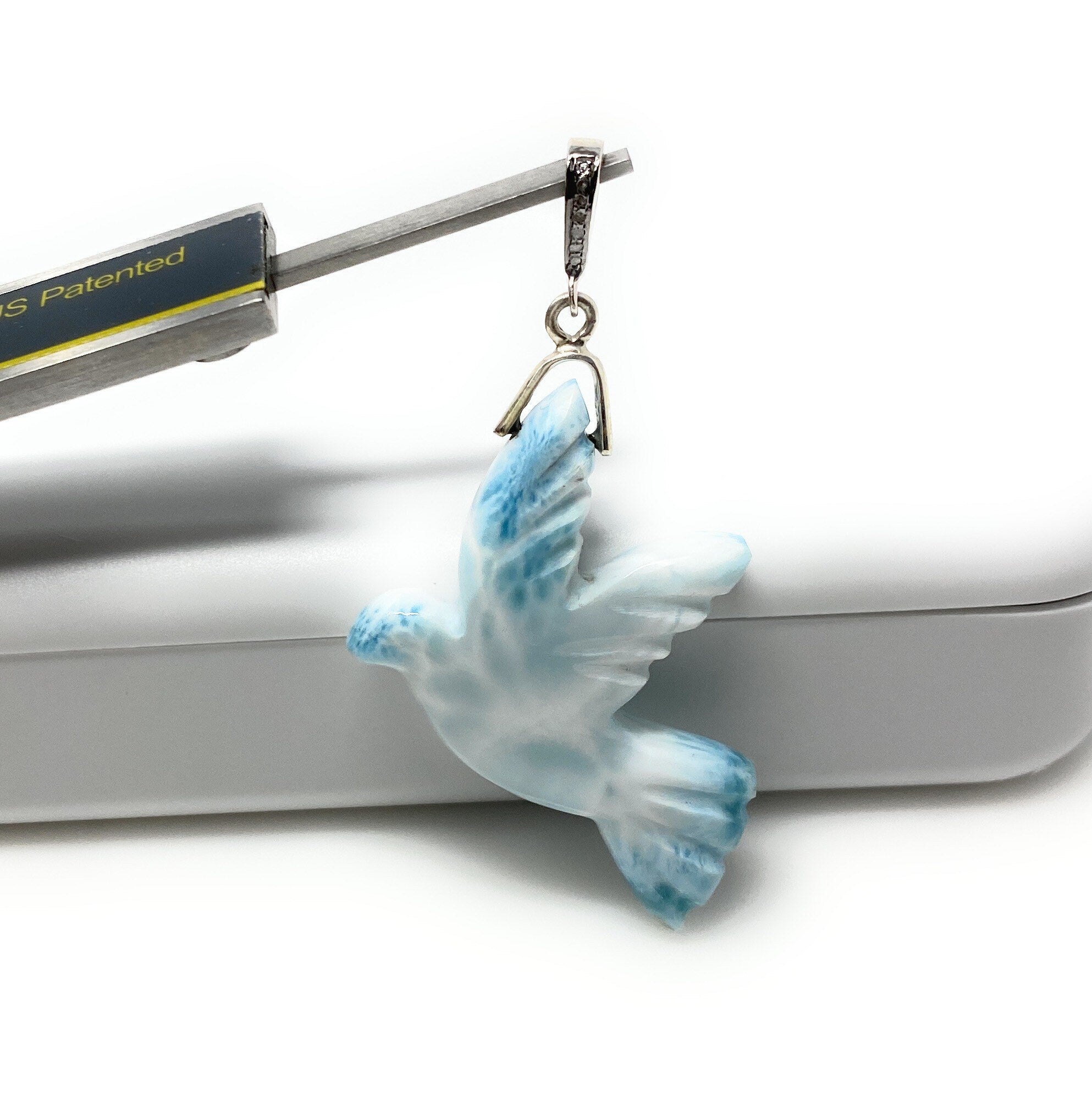 14g Rare Large Larimar Bird Pave Diamond Pendant, Silver Bohemian Jewelry, Dominican Republic Larimar Pendant, Larimar Bird Pendant