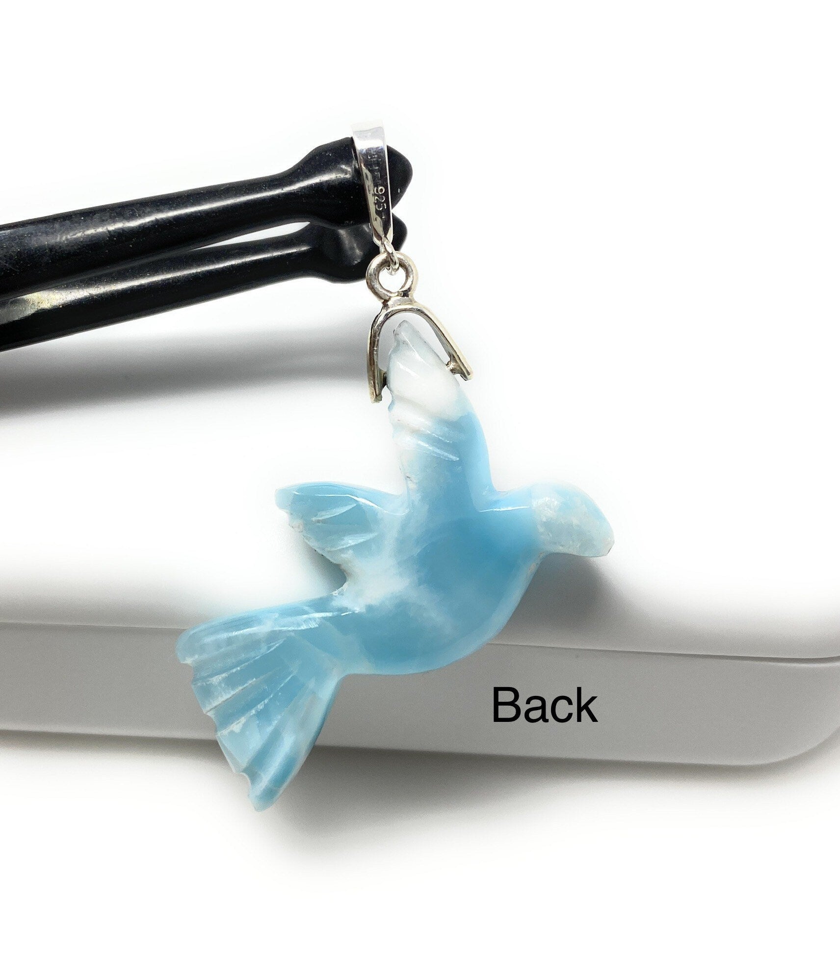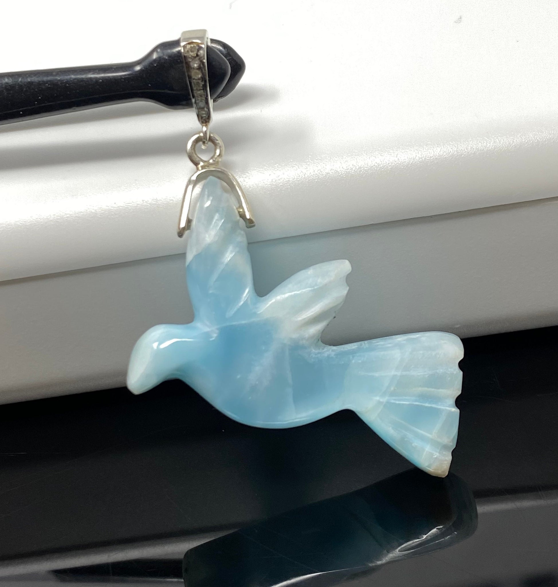 14g Rare Large Larimar Bird Pave Diamond Pendant, Silver Bohemian Jewelry, Dominican Republic Larimar Pendant, Larimar Bird Pendant