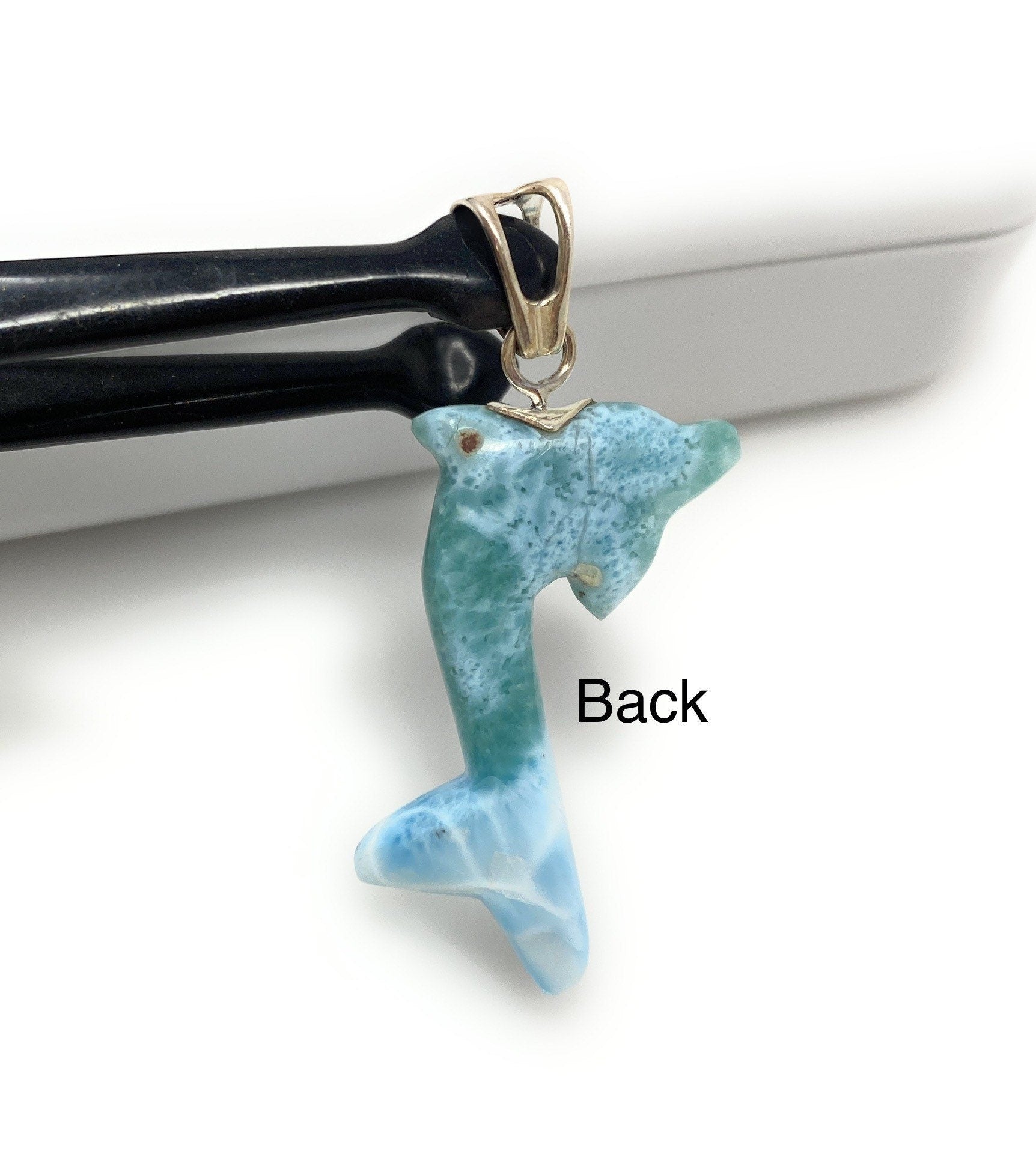 Reversible Larimar Gemstone Sterling Silver Dolphin Pendant Jewelry at Wholesale Price.