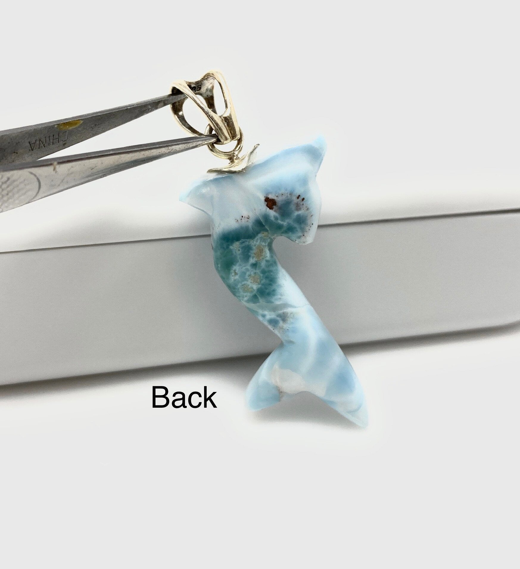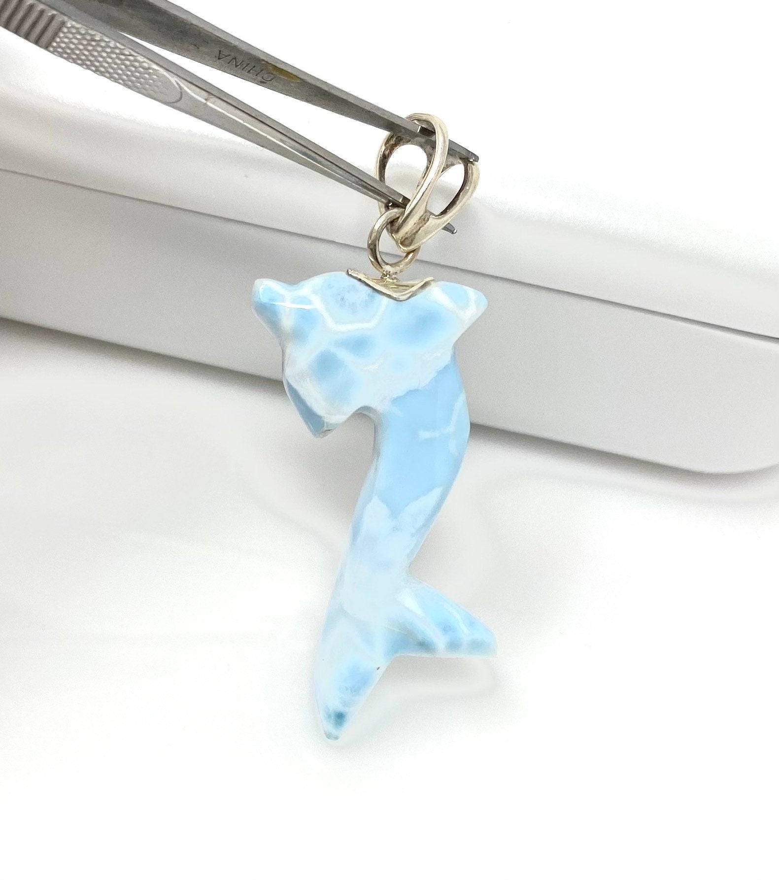 8g Larimar Dolphin Pendant, Larimar Pendant, Bohemian Jewelry, Dominican Republic Larimar Pendant,Light Blue Dolphin Larimar Pendant