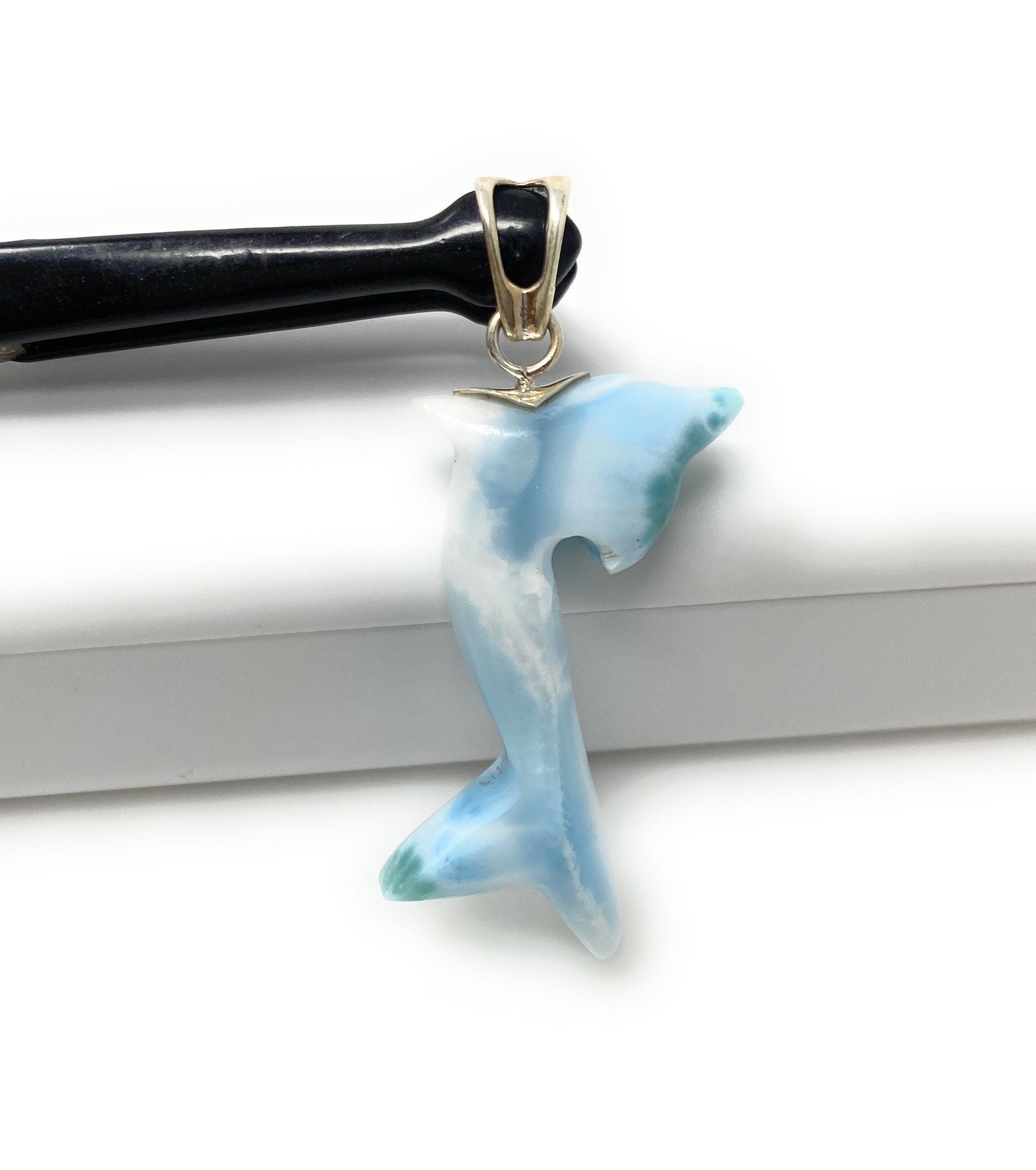 8g Larimar Dolphin Pendant, Larimar Pendant, Bohemian Jewelry, Dominican Republic Larimar Pendant