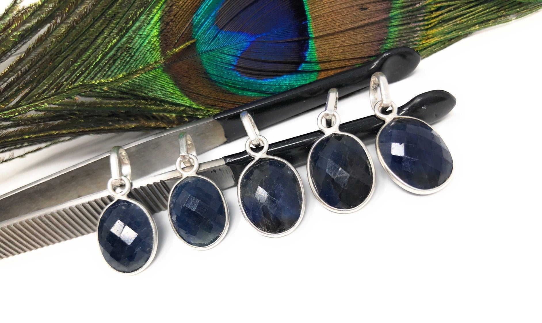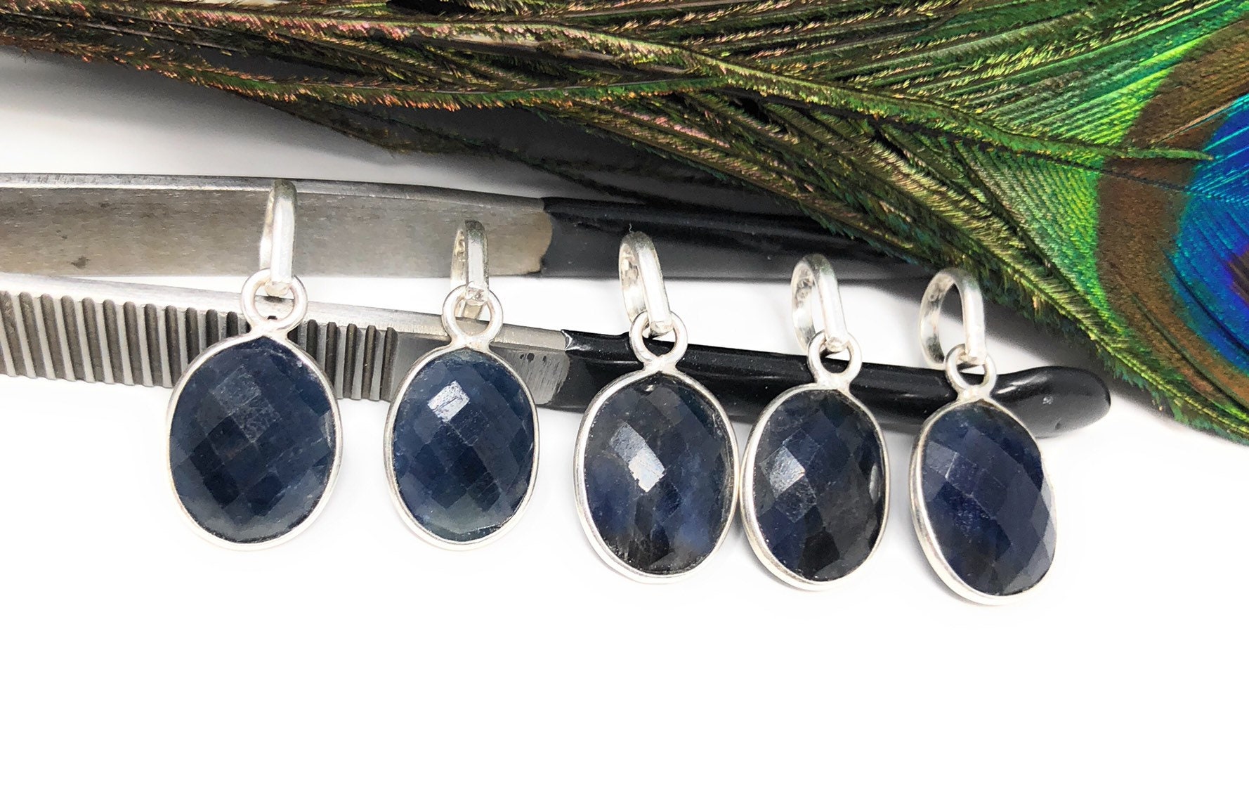 Natural Gemstone Blue Sapphire Pendant Sterling Silver Jewelry Supplies for Jewelry Making.