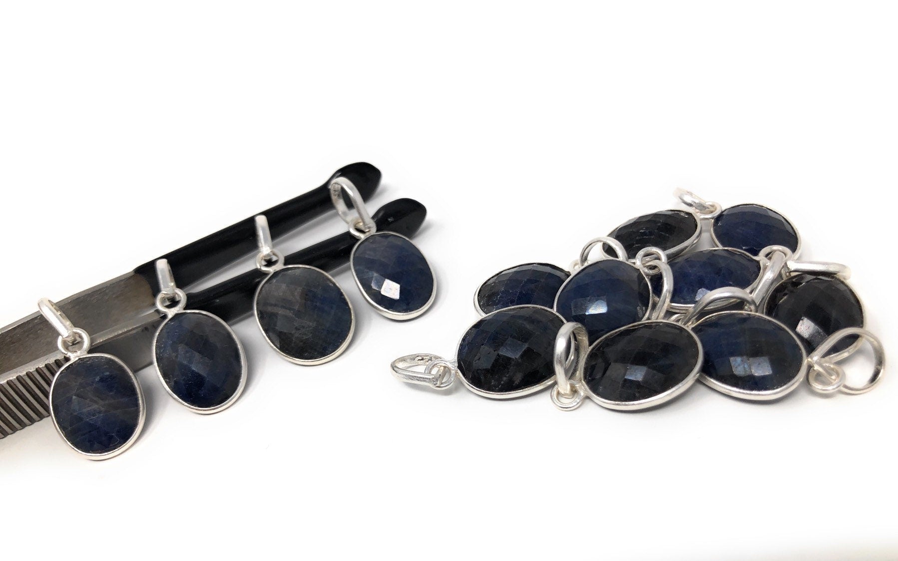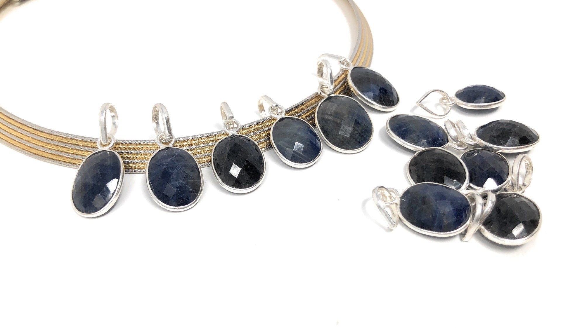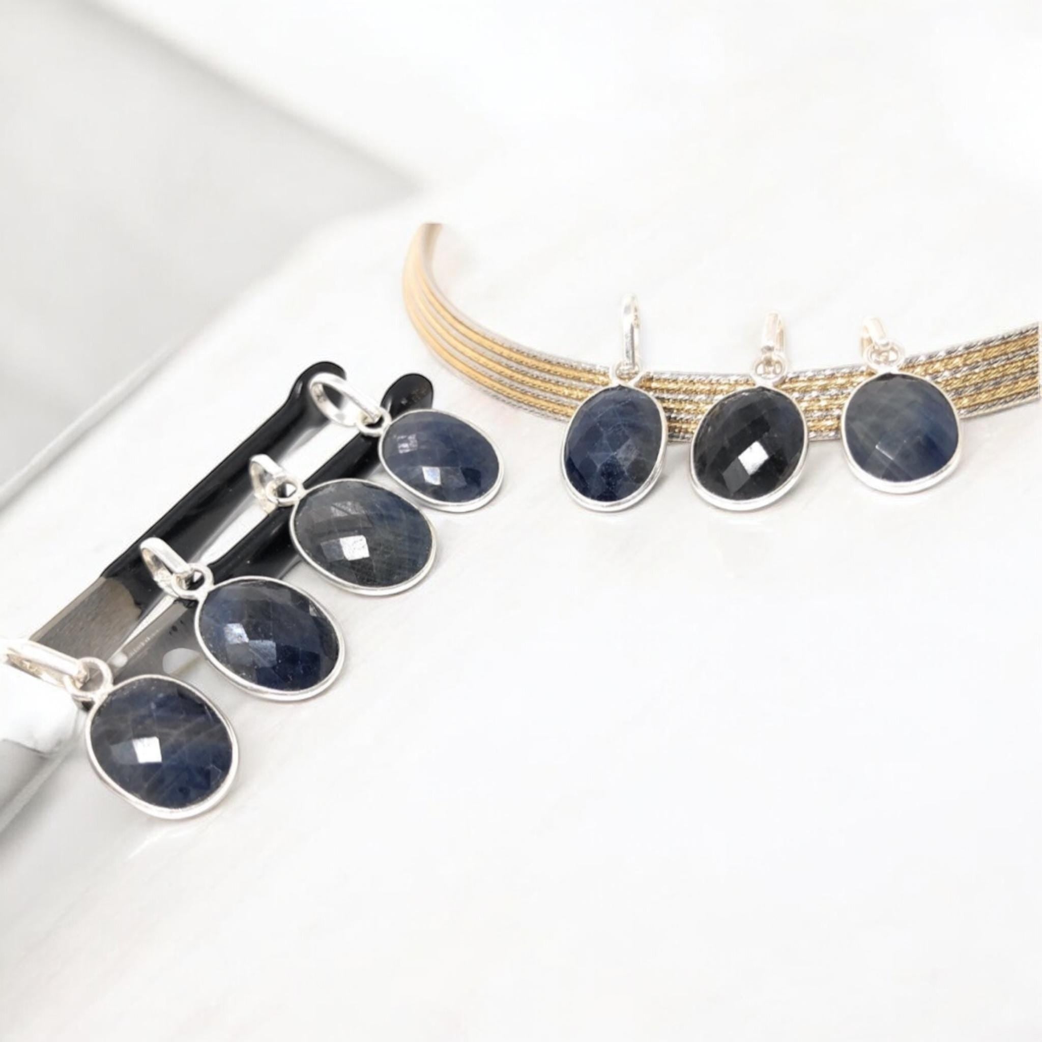 Natural Gemstone Blue Sapphire Pendant Sterling Silver Jewelry Supplies for Jewelry Making