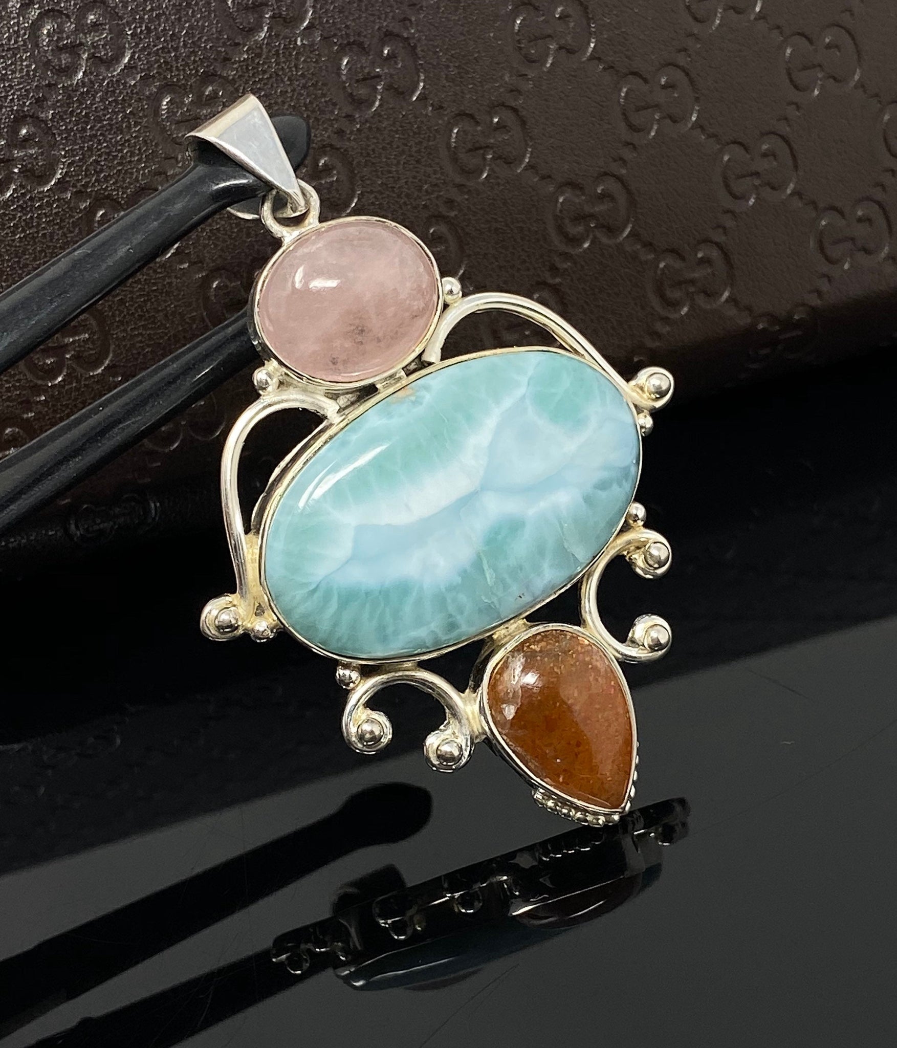 Larimar, Morganite and Sunstone Gemstone Sterling Silver Pendant Jewelry at Wholesale Price.