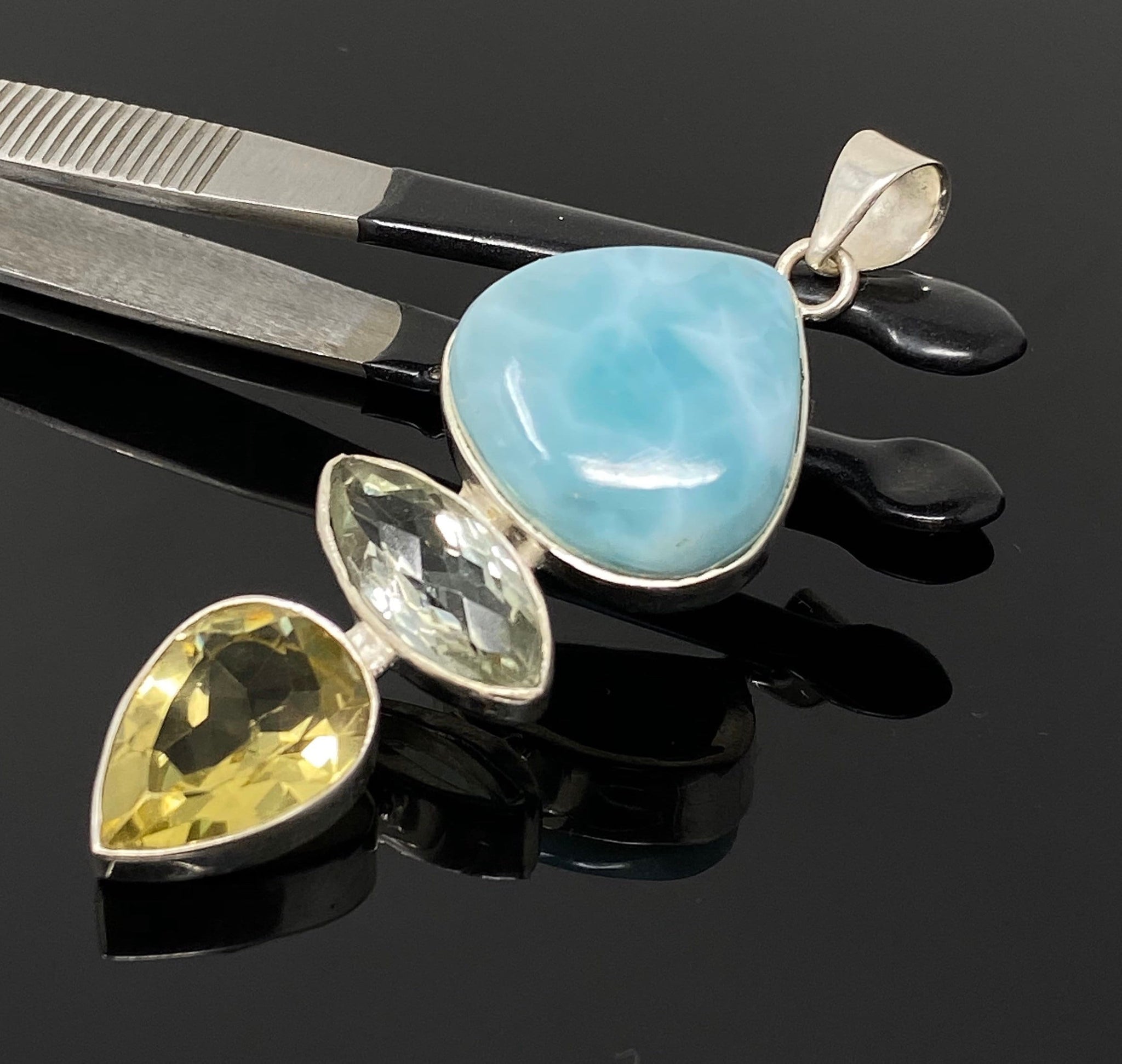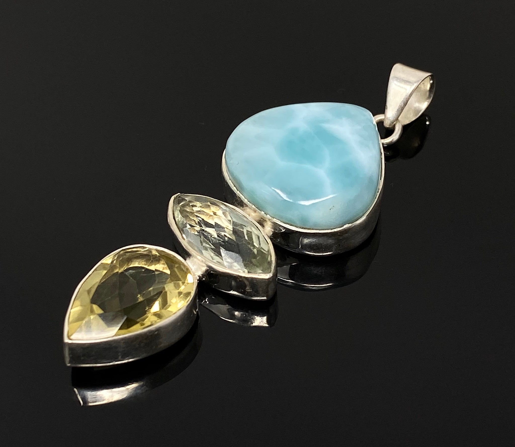 Natural Larimar with Green Amethyst and Lemon Quartz Gemstone Sterling Silver Pendant DIY Jewelry at Wholesale Price.