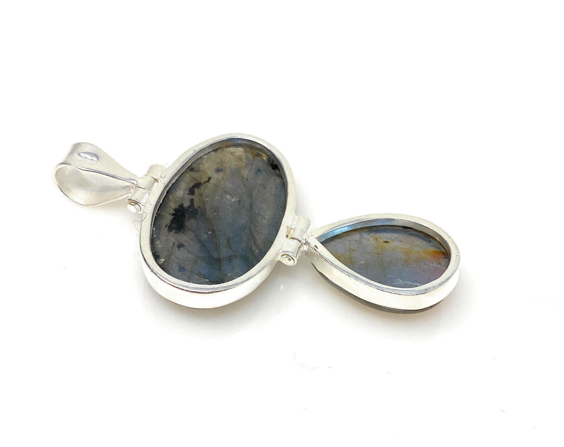 This beautiful Handmade Natural Labradorite 925 Sterling Silver Pendant is made with attaching 2 Pieces together with the unique hinge design which makes the pendant flexible and is an excellent choice for any occasion and makes a great gift for the loved ones.