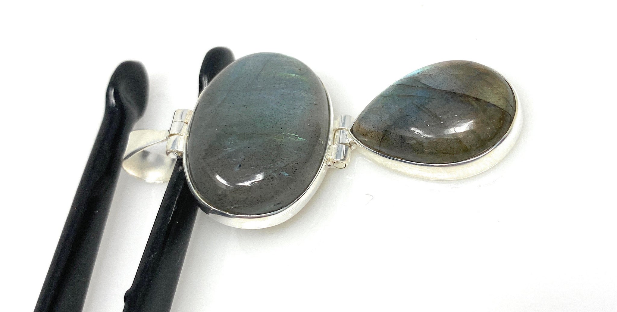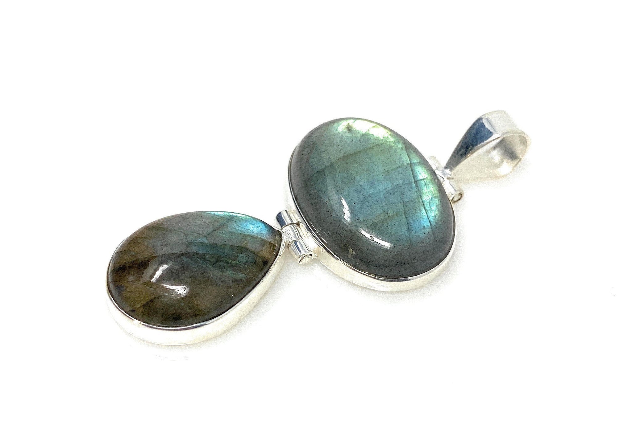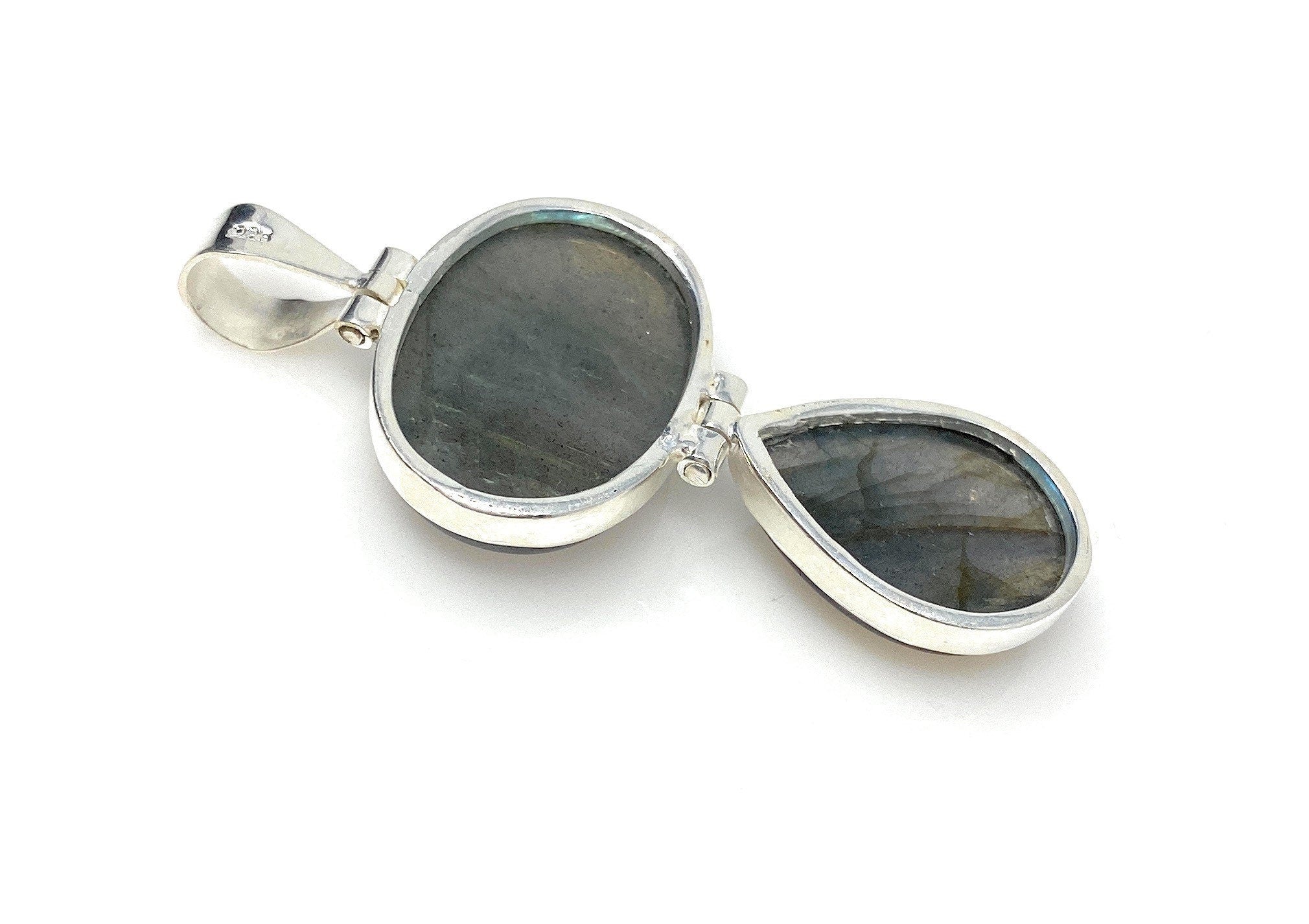 This beautiful Handmade Natural Labradorite 925 Sterling Silver Pendant is made with attaching 2 Pieces together with the unique hinge design which makes the pendant flexible and is an excellent choice for any occasion and makes a great gift for the loved ones.