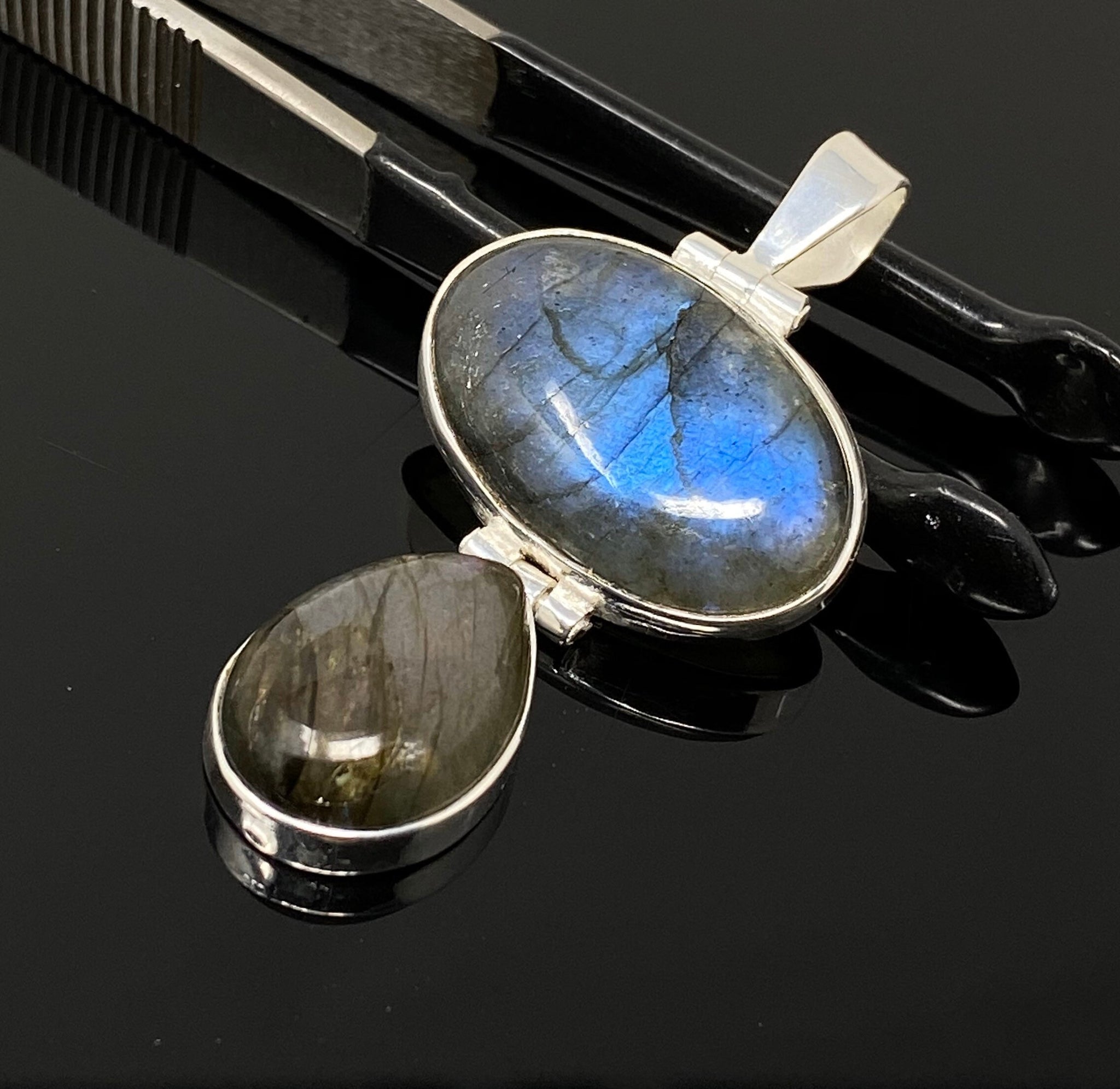 This beautiful Handmade Natural Labradorite 925 Sterling Silver Pendant is made with attaching 2 Pieces together with the unique hinge design which makes the pendant flexible and is an excellent choice for any occasion and makes a great gift for the loved ones.