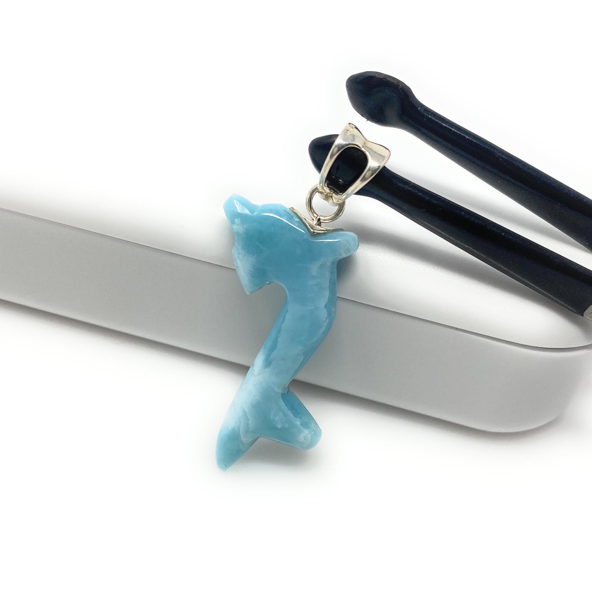 Larimar Dolphin Pendant, Caribbean Larimar Pendant, Atlantis Stone Bohemian Jewelry, Dominican Republic Larimar Pendant