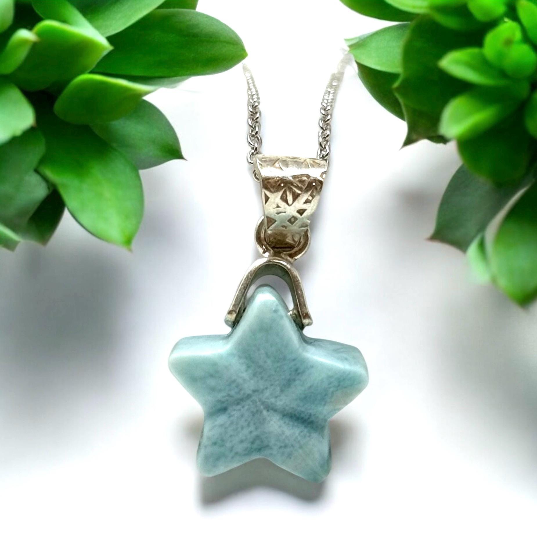Larimar Star Shape Handmade Gemstone Sterling Pendant Necklace
