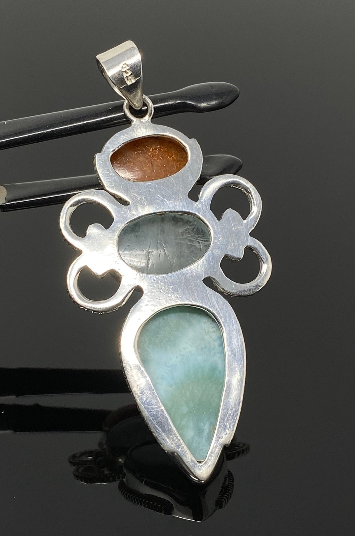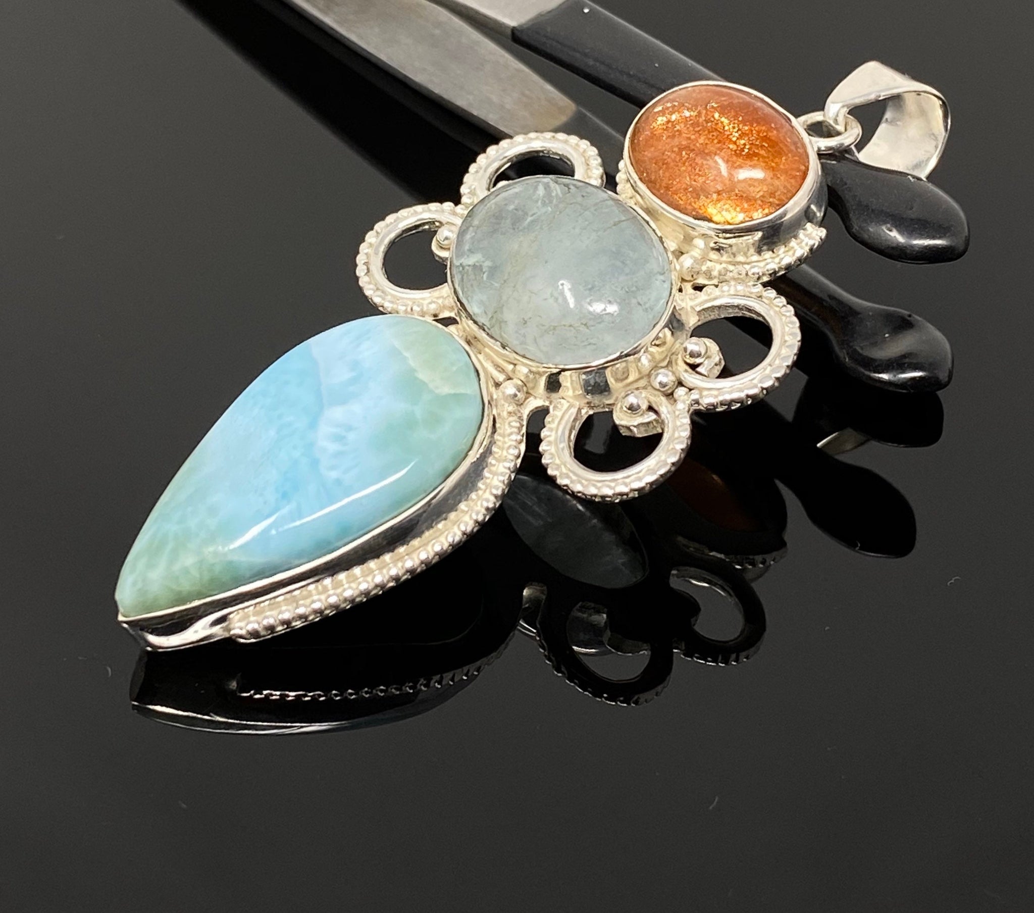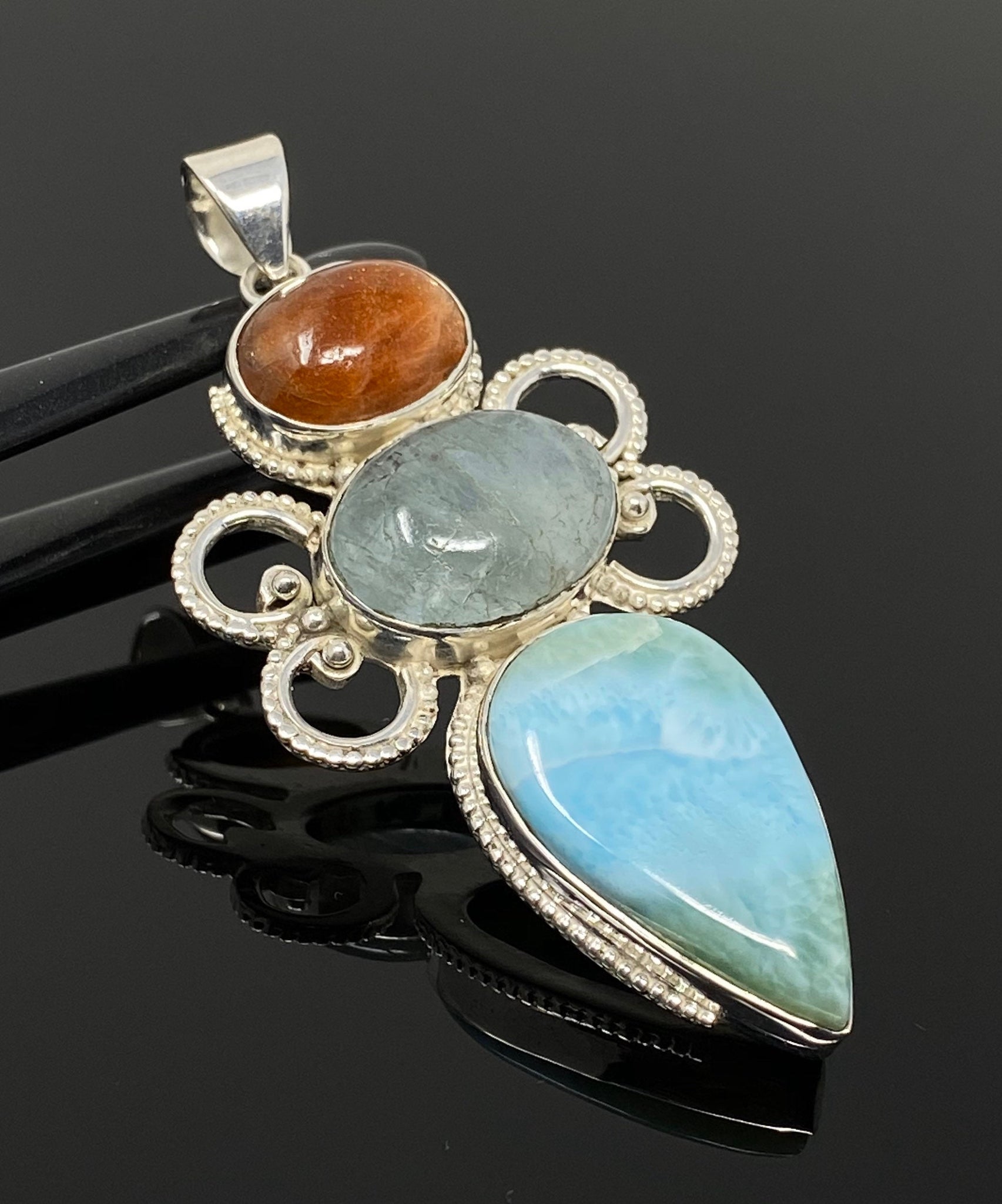 Larimar, Aquamarine and Sunstone Gemstone Sterling Silver Pendant Jewelry at Wholesale Price.
