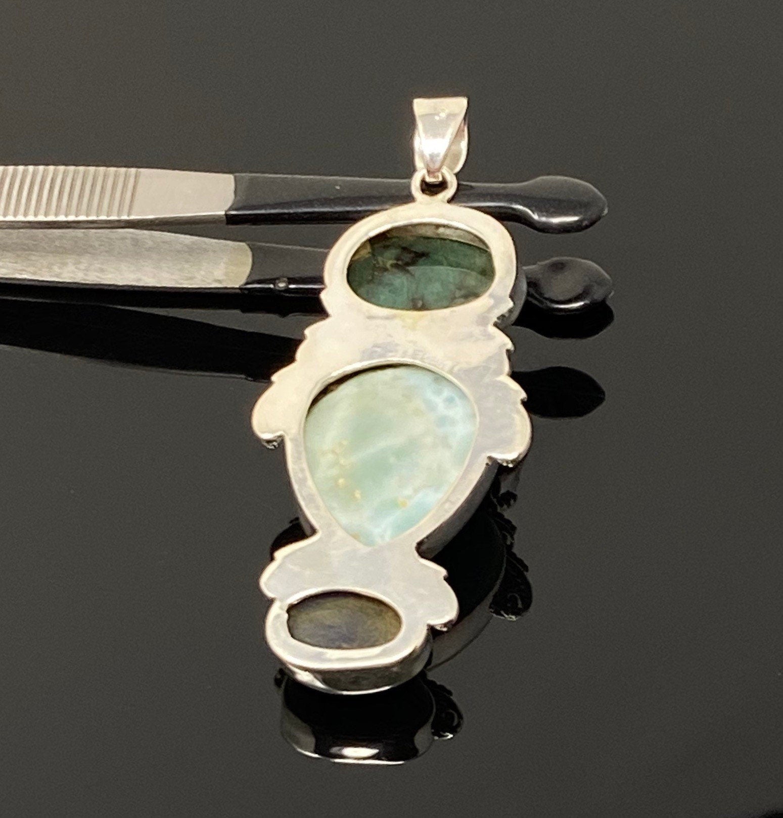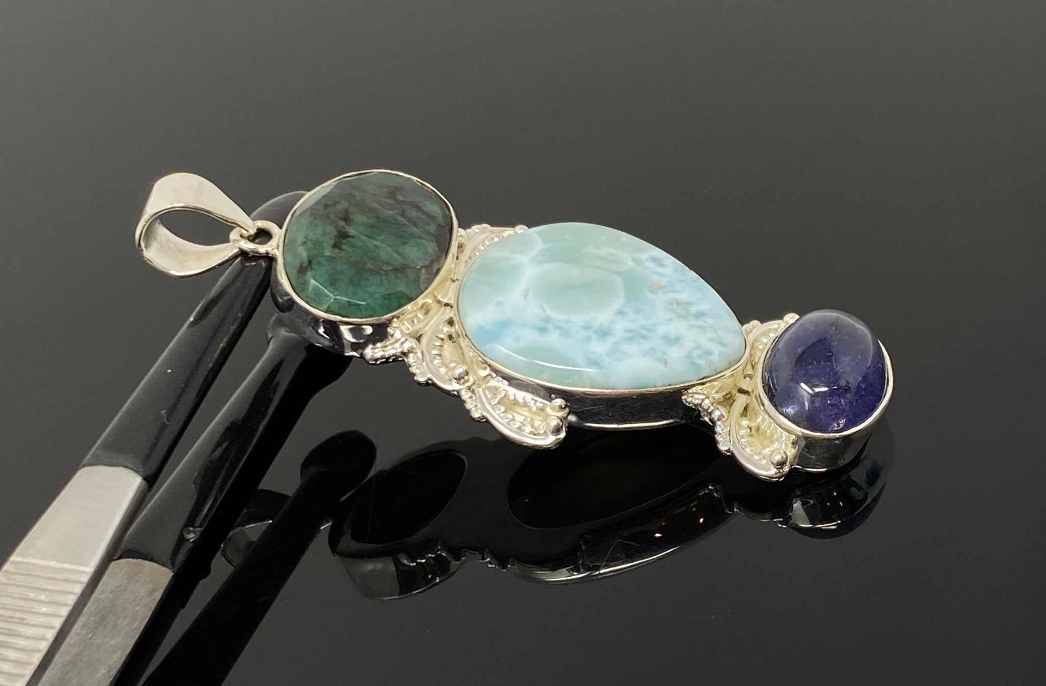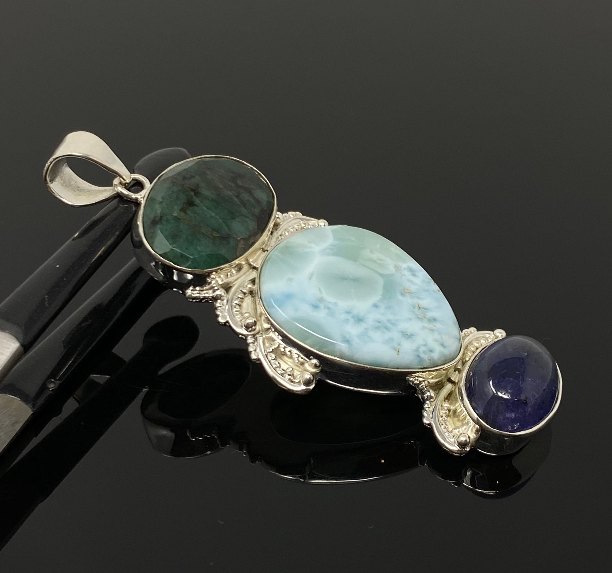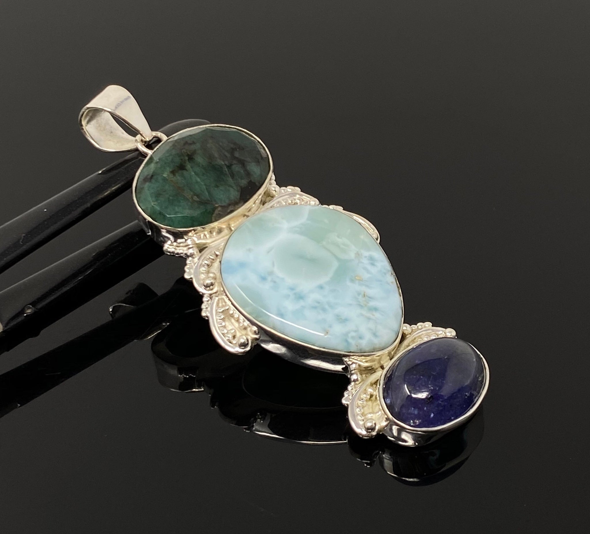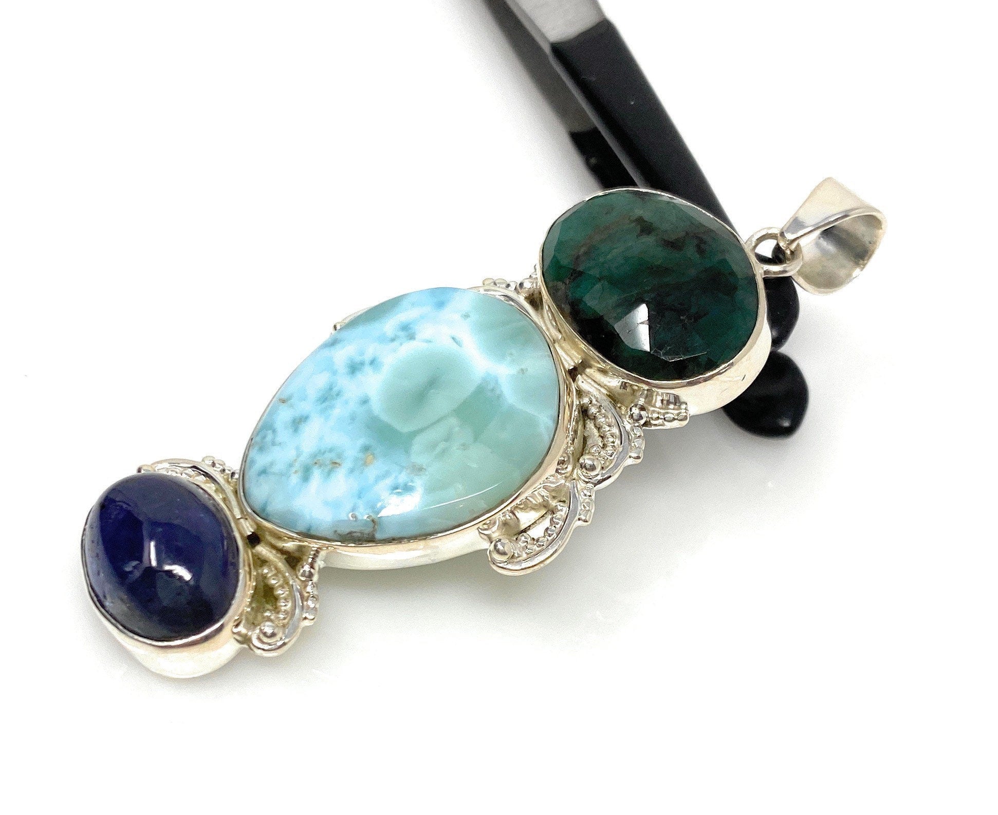 Larimar, Emerald and Tanzanite Gemstone Sterling Silver Pendant Jewelry at Wholesale Price.