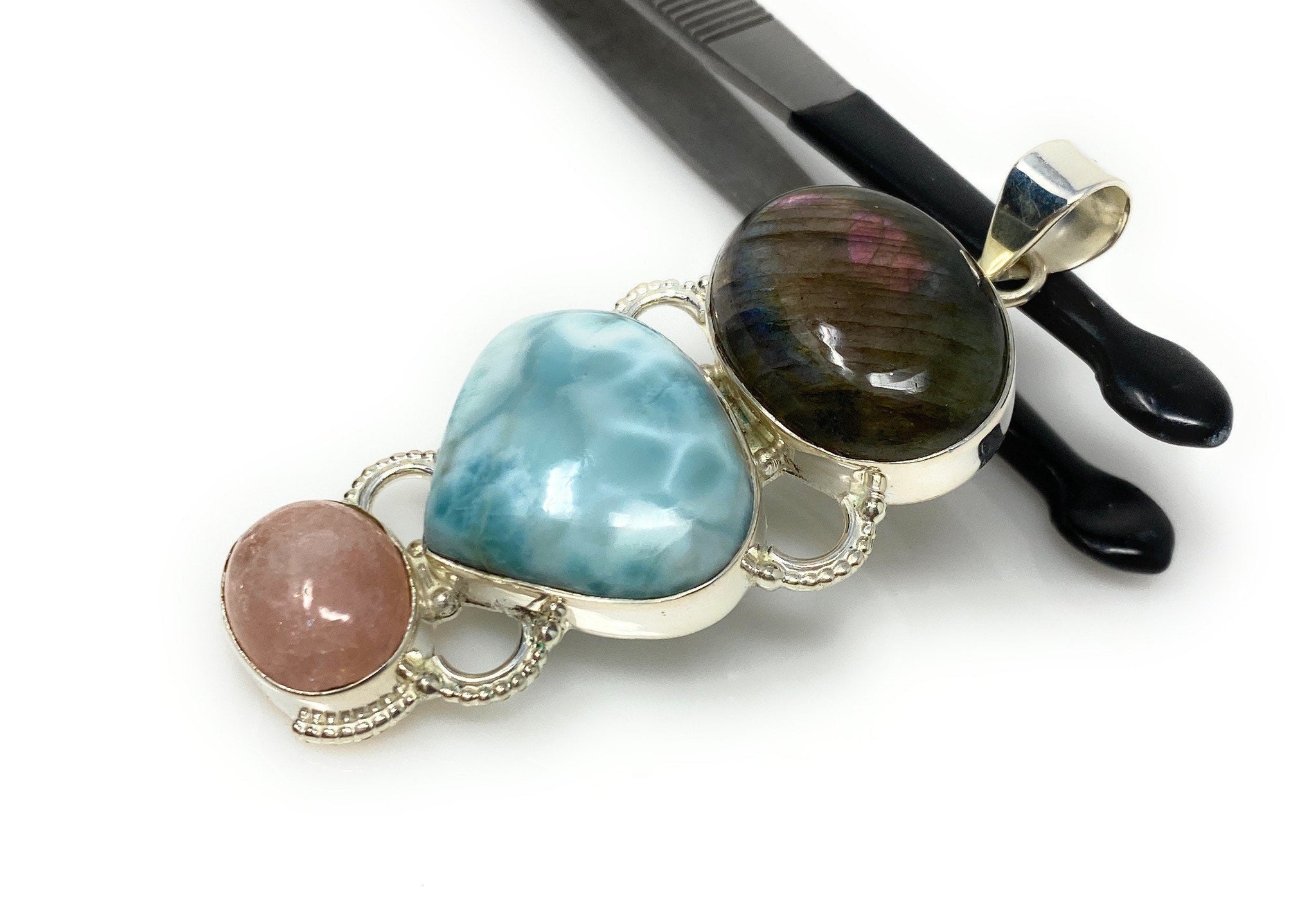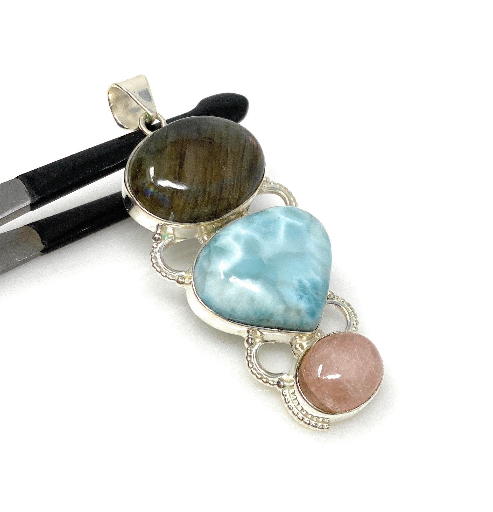Larimar, Purple Flash Labradorite and Morganite Gemstone Sterling Silver Pendant Jewelry at Wholesale Price.