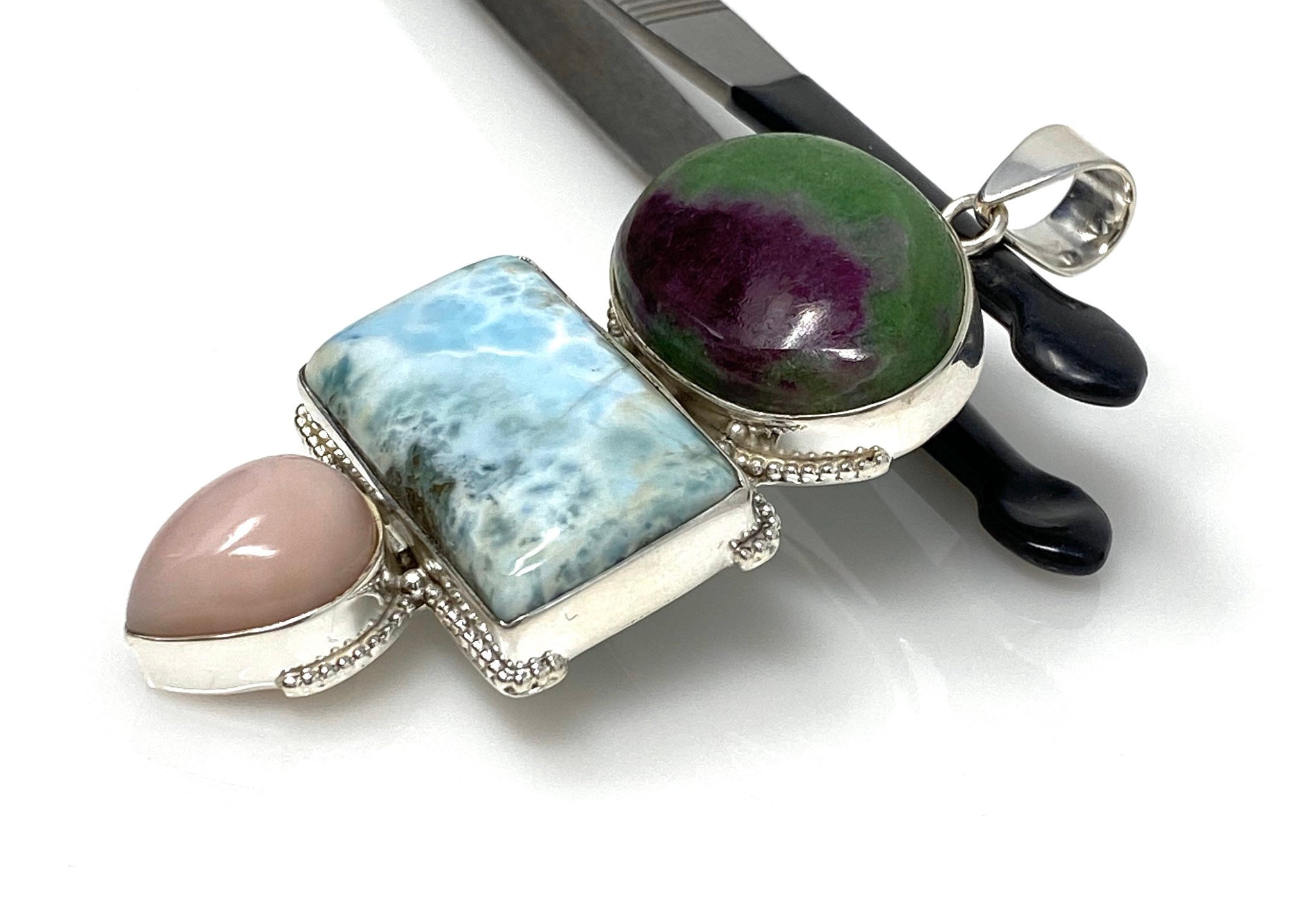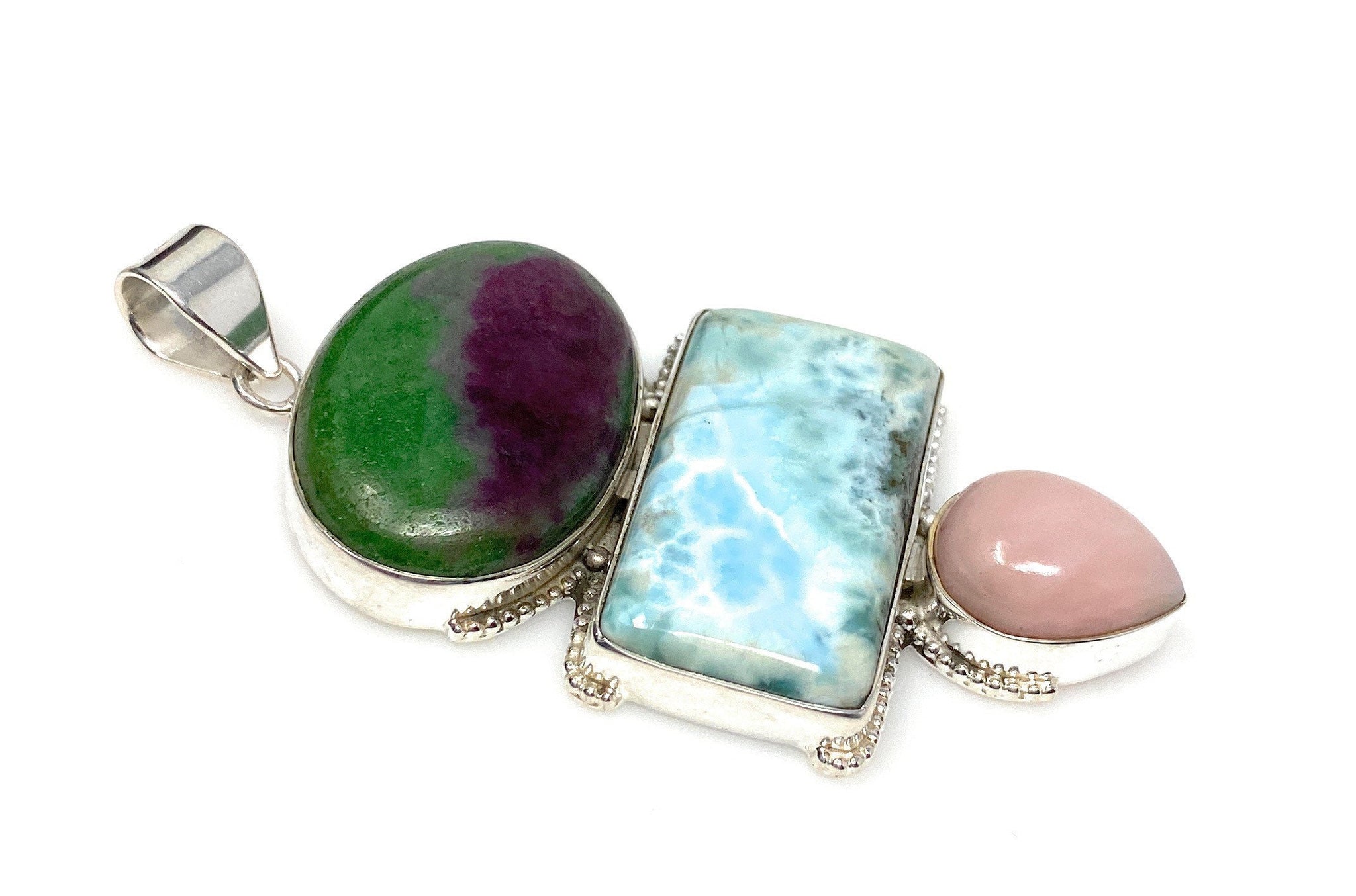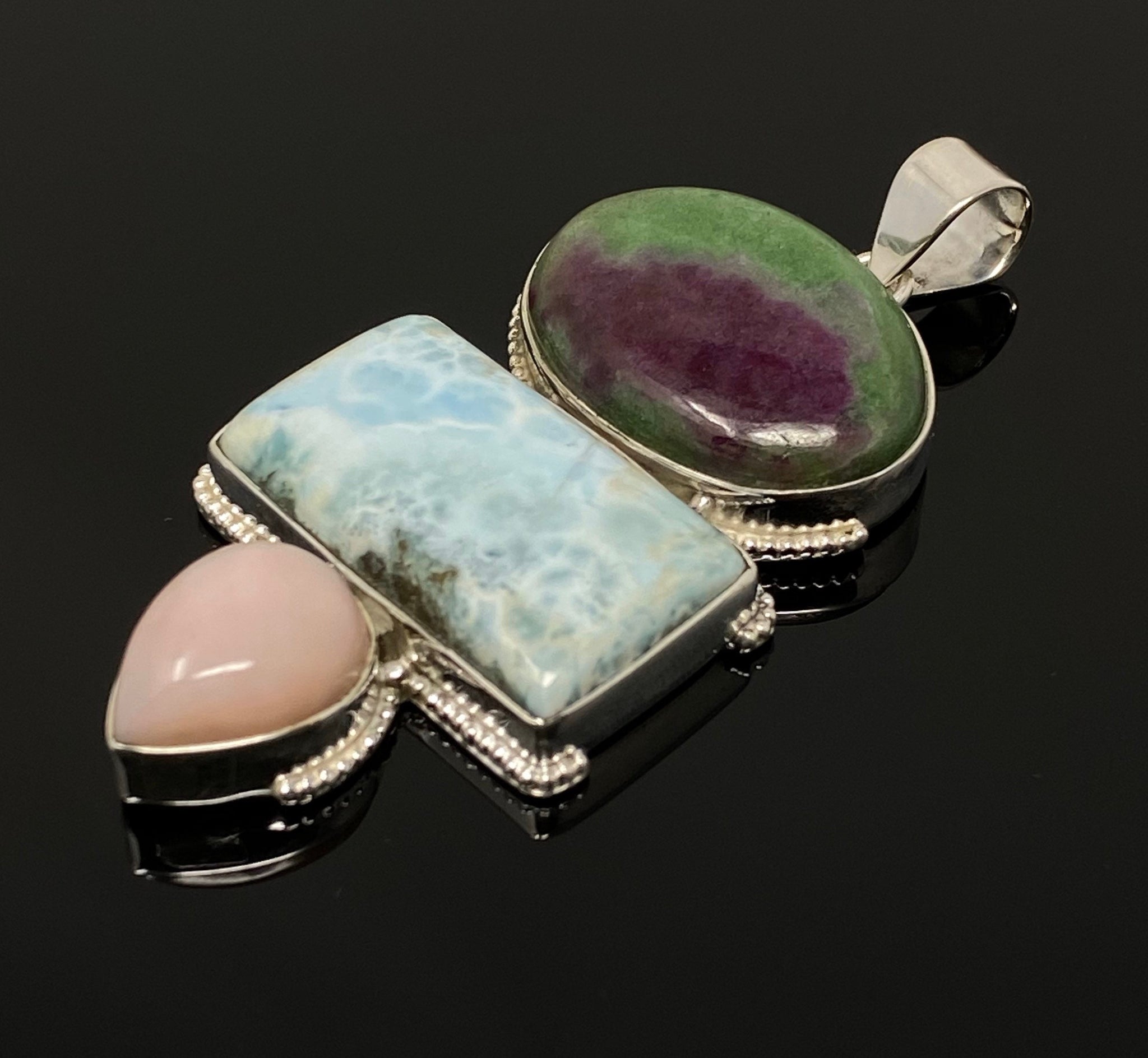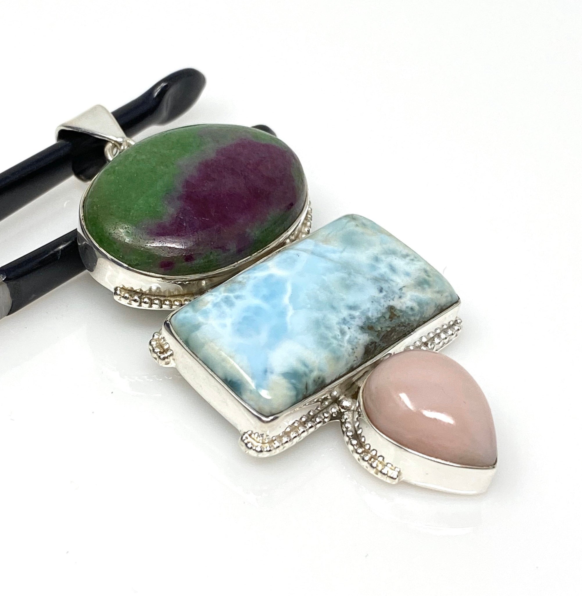 Larimar with Ruby Zoisite and Pink Opal Gemstone Sterling Silver Pendant Jewelry at Wholesale Price.