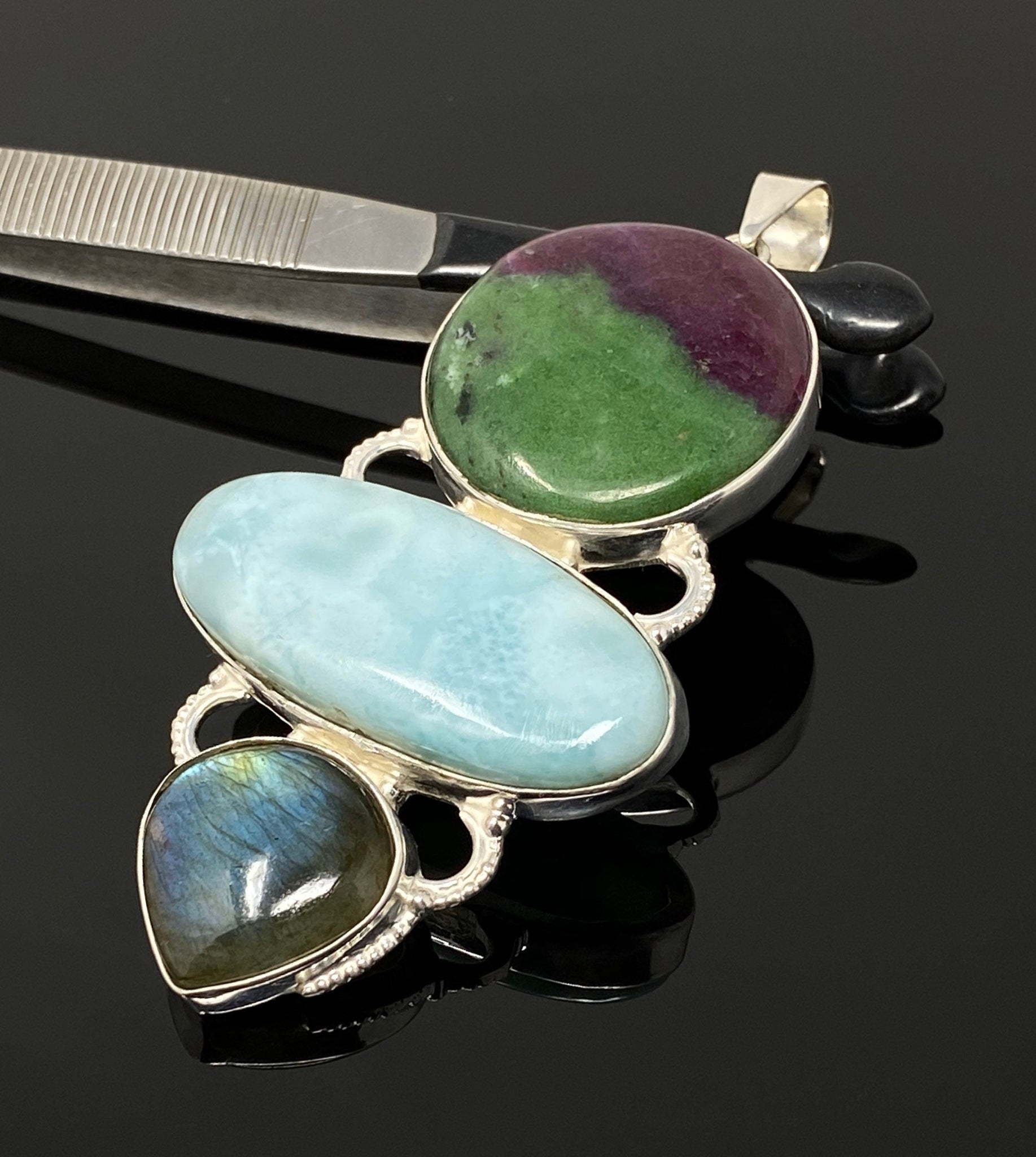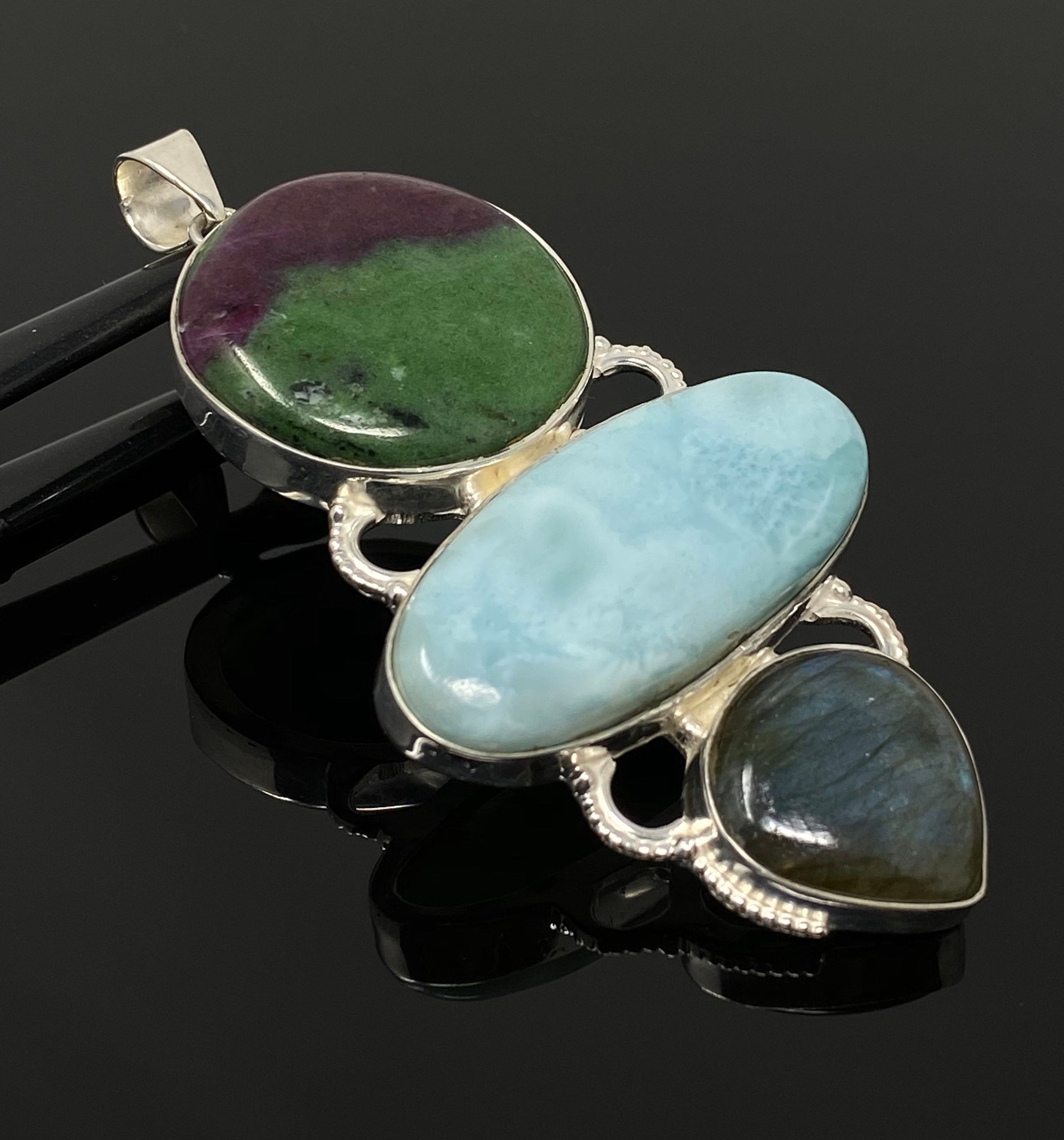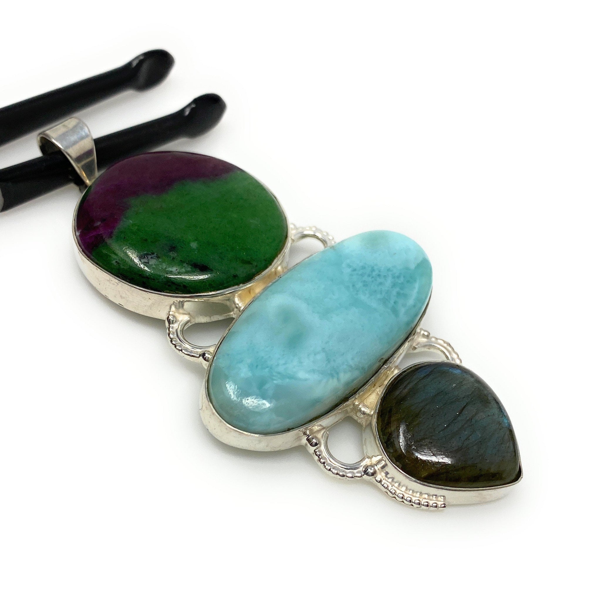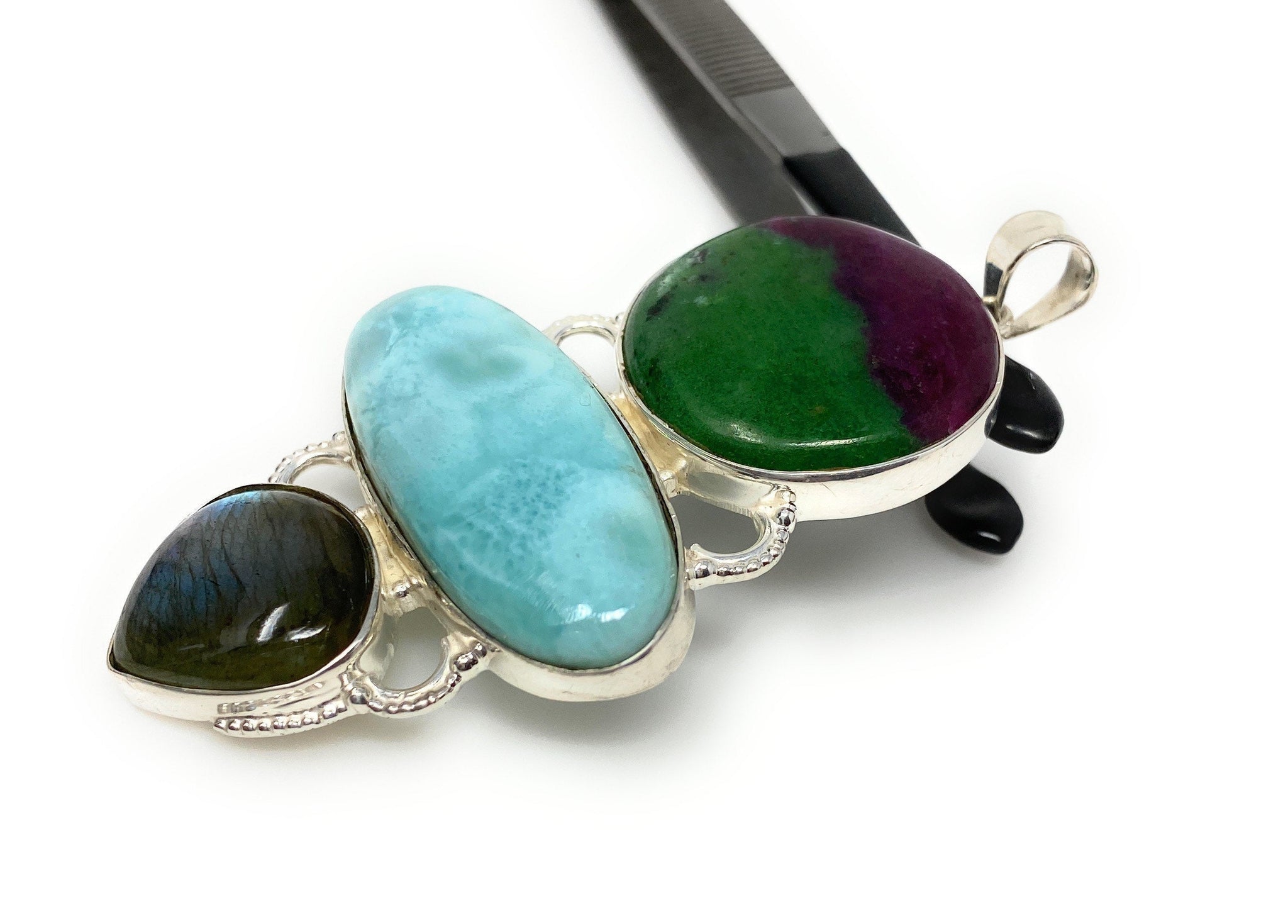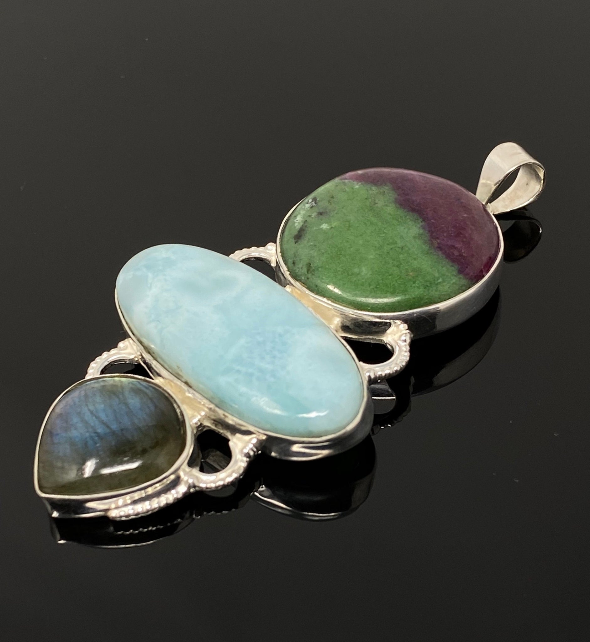 Larimar with Ruby Zoisite and Labradorite Gemstone Sterling Silver Pendant Jewelry at Wholesale Price.