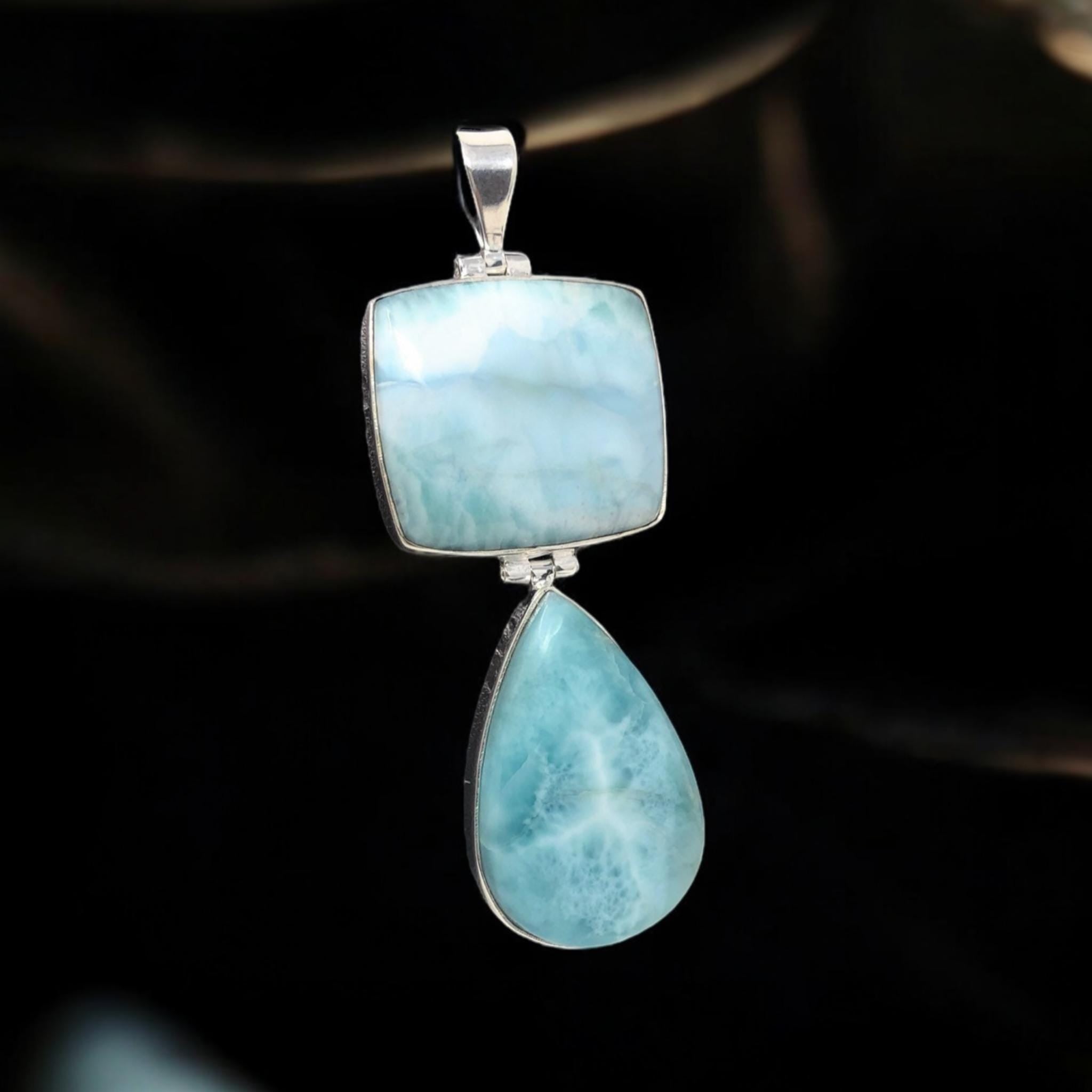 This beautiful Handmade AAA Grade Natural Larimar Gemstone 925 Sterling Silver Large Pendant is made with exclusive design by attaching two pieces of Larimar Gemstone using a hinge pattern to give the pendant flexibility and is an excellent choice for any occasion and makes a great gift for the loved ones.