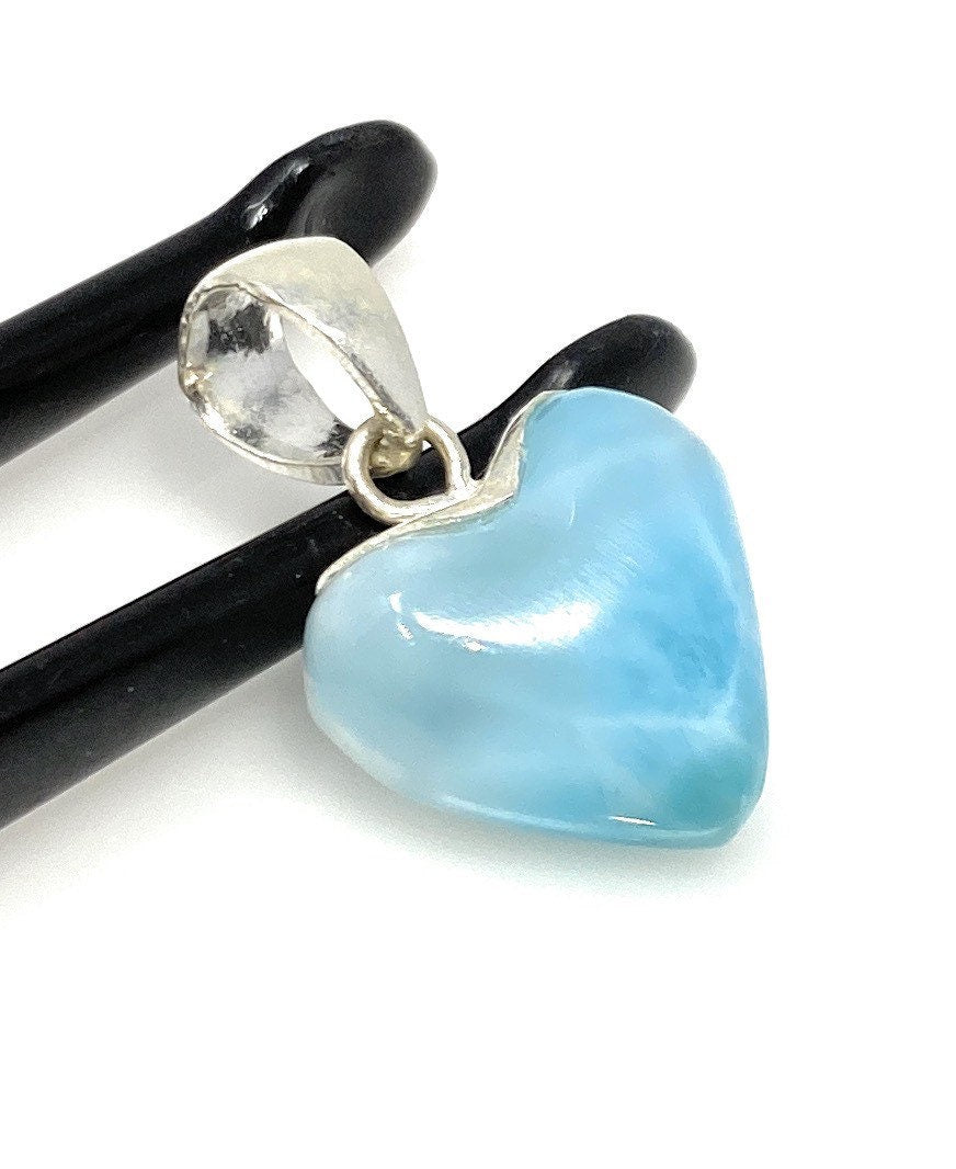 Larimar Heart Pendant, Larimar Sterling Silver Pendant, Bohemian Jewelry, Puffy Larimar Heart Pendant
