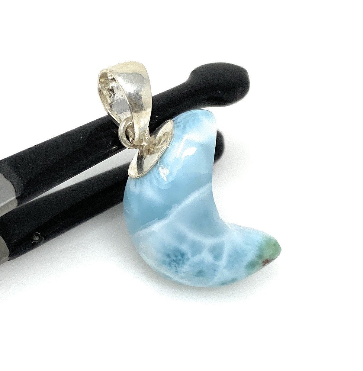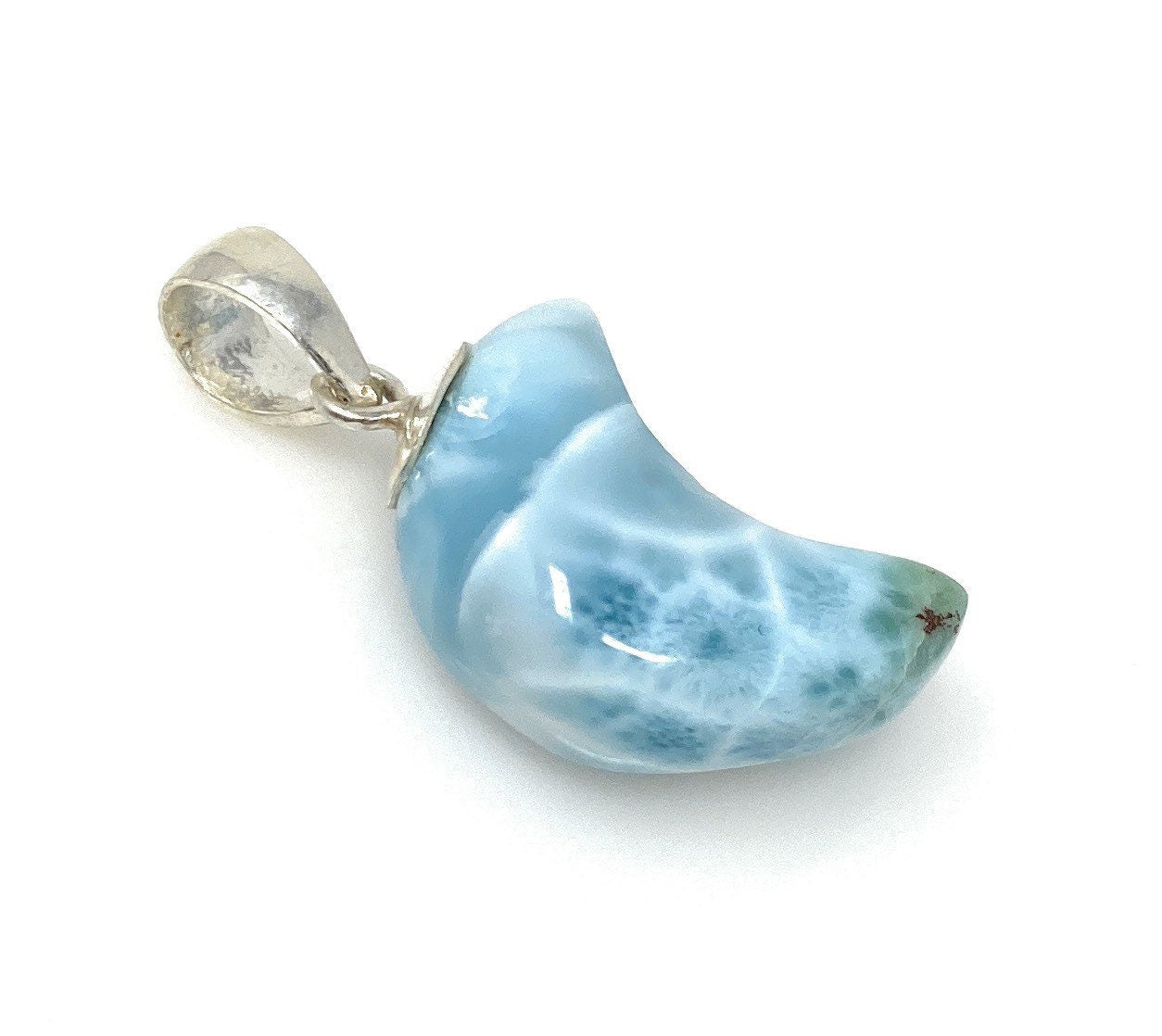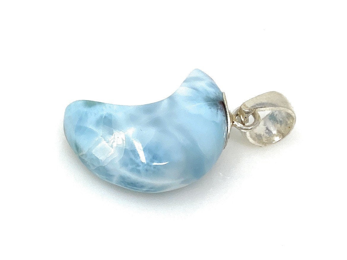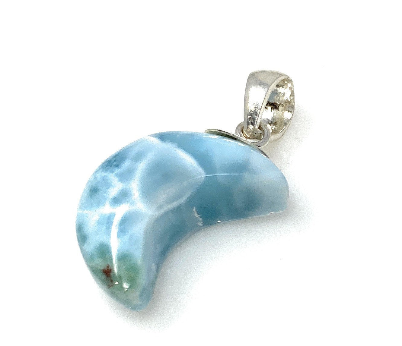 Larimar Moon Pendant, Sterling Silver Pendant, Bohemian Jewelry, Hand Carved Half Moon Larimar Pendant