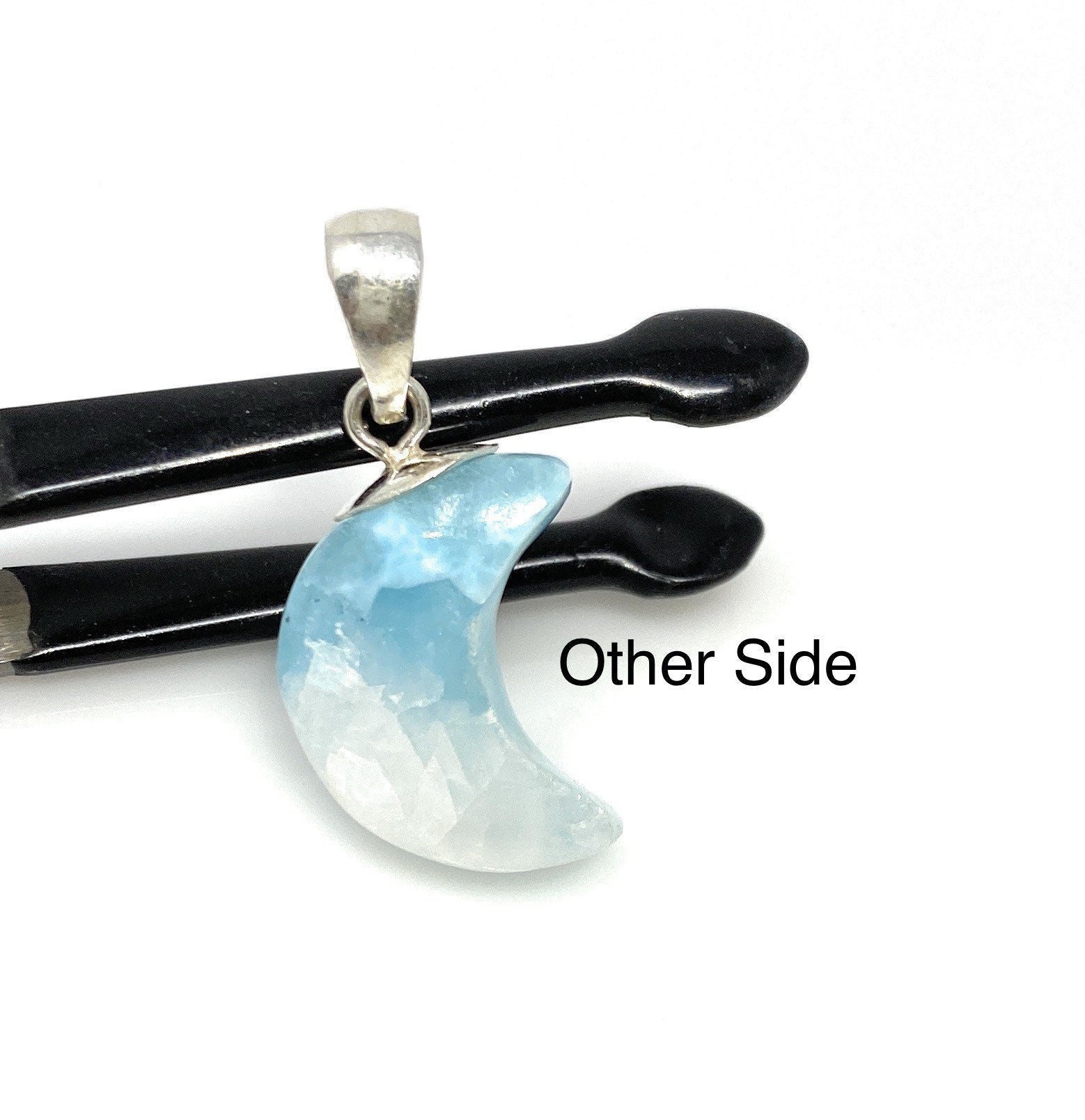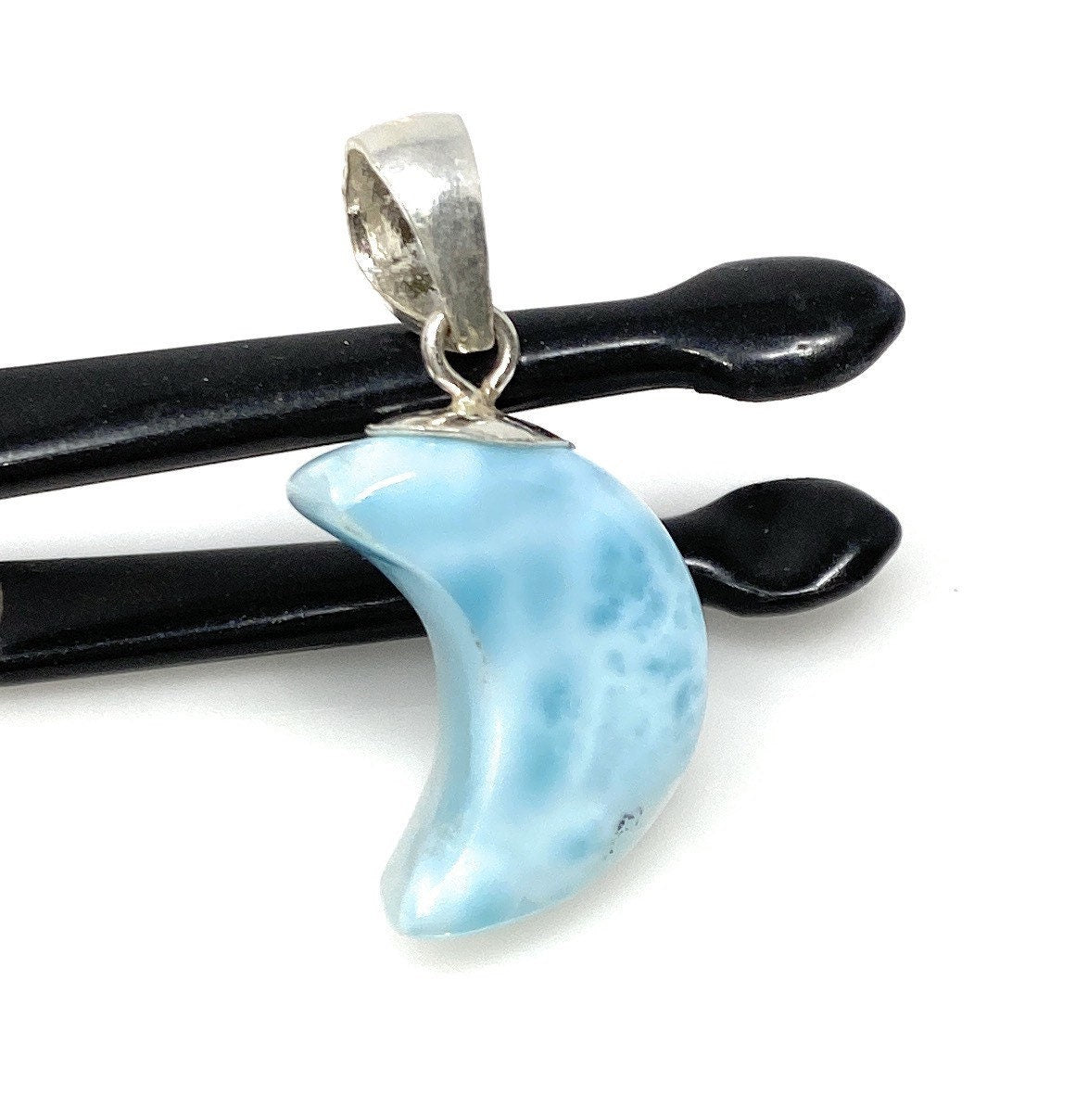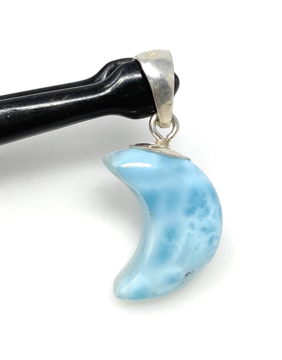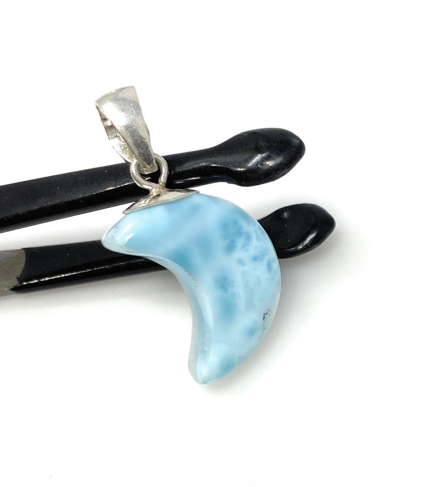Larimar Moon Pendant, Sterling Silver Pendant, Bohemian Jewelry, Hand Carved Half Moon Larimar Pendant