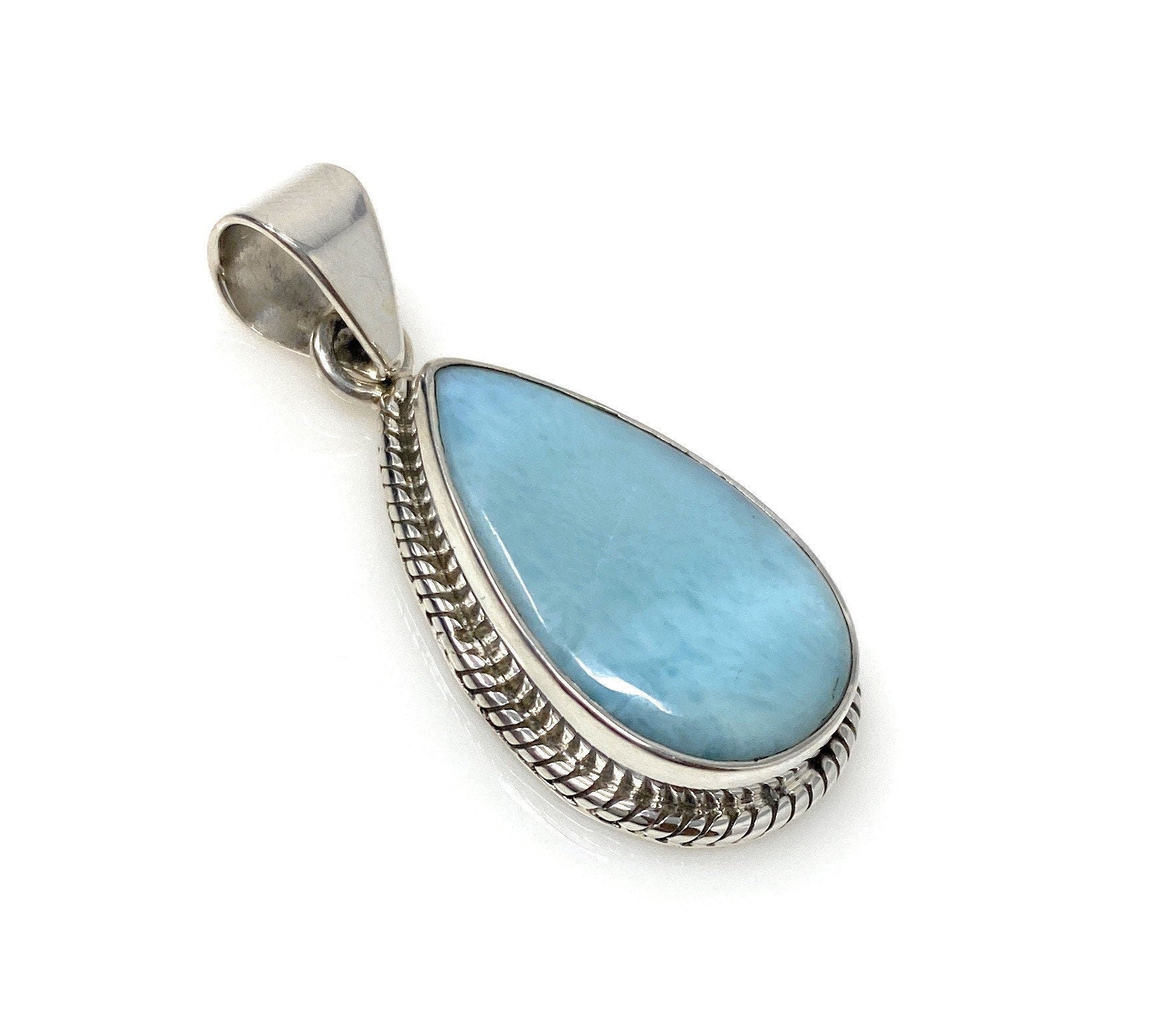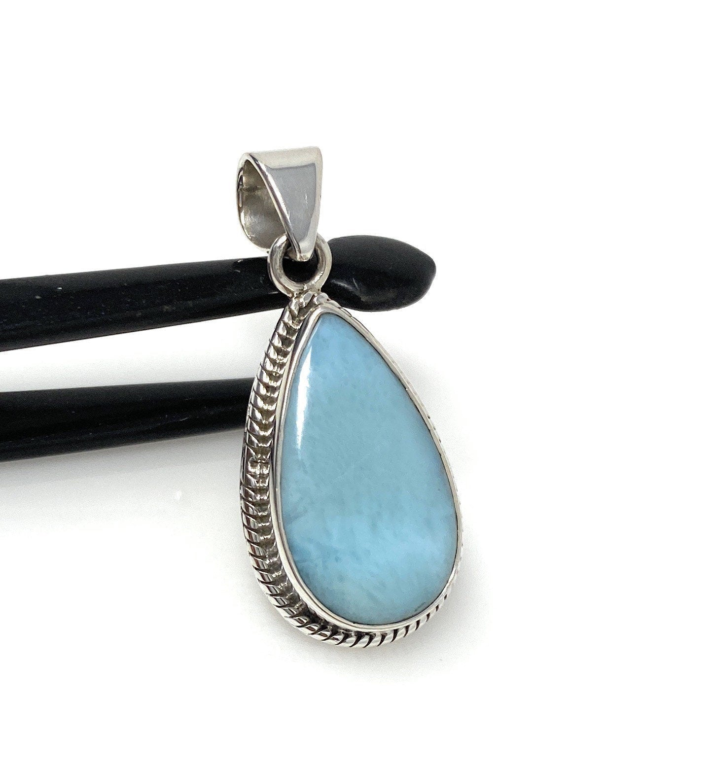 This beautiful Handmade AAA Grade Natural Larimar Gemstone Drop Shape 925 Sterling Silver Pendant is an excellent choice for any occasion and makes a great gift for the loved ones.