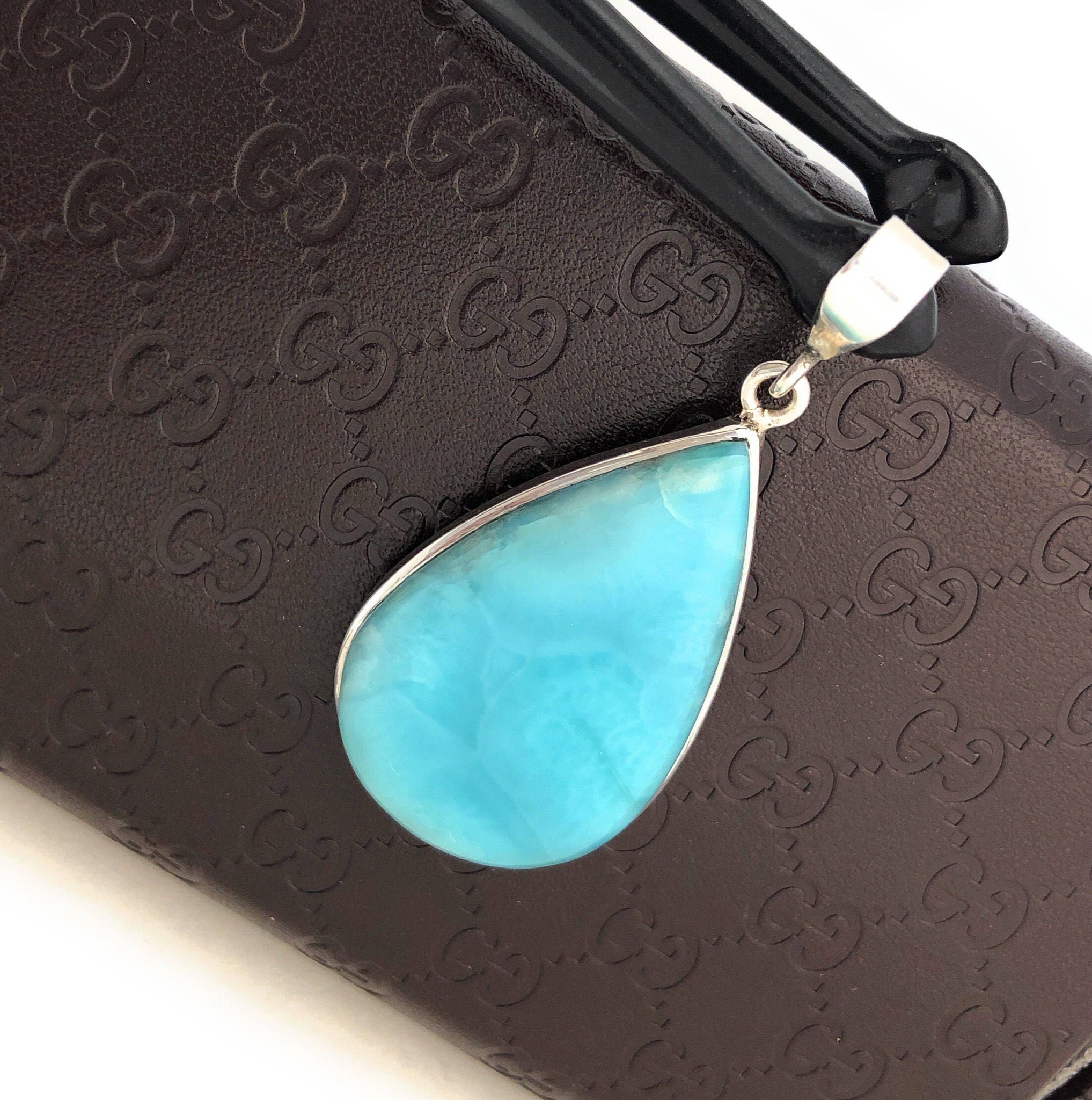 This beautiful Handmade AAA Grade Natural Larimar Gemstone Drop Shape 925 Sterling Silver Large Pendant is an excellent choice for any occasion and makes a great gift for the loved ones.