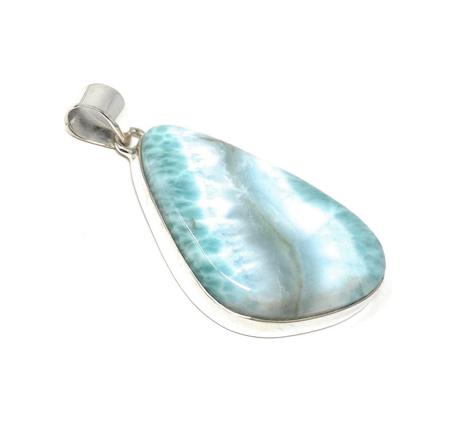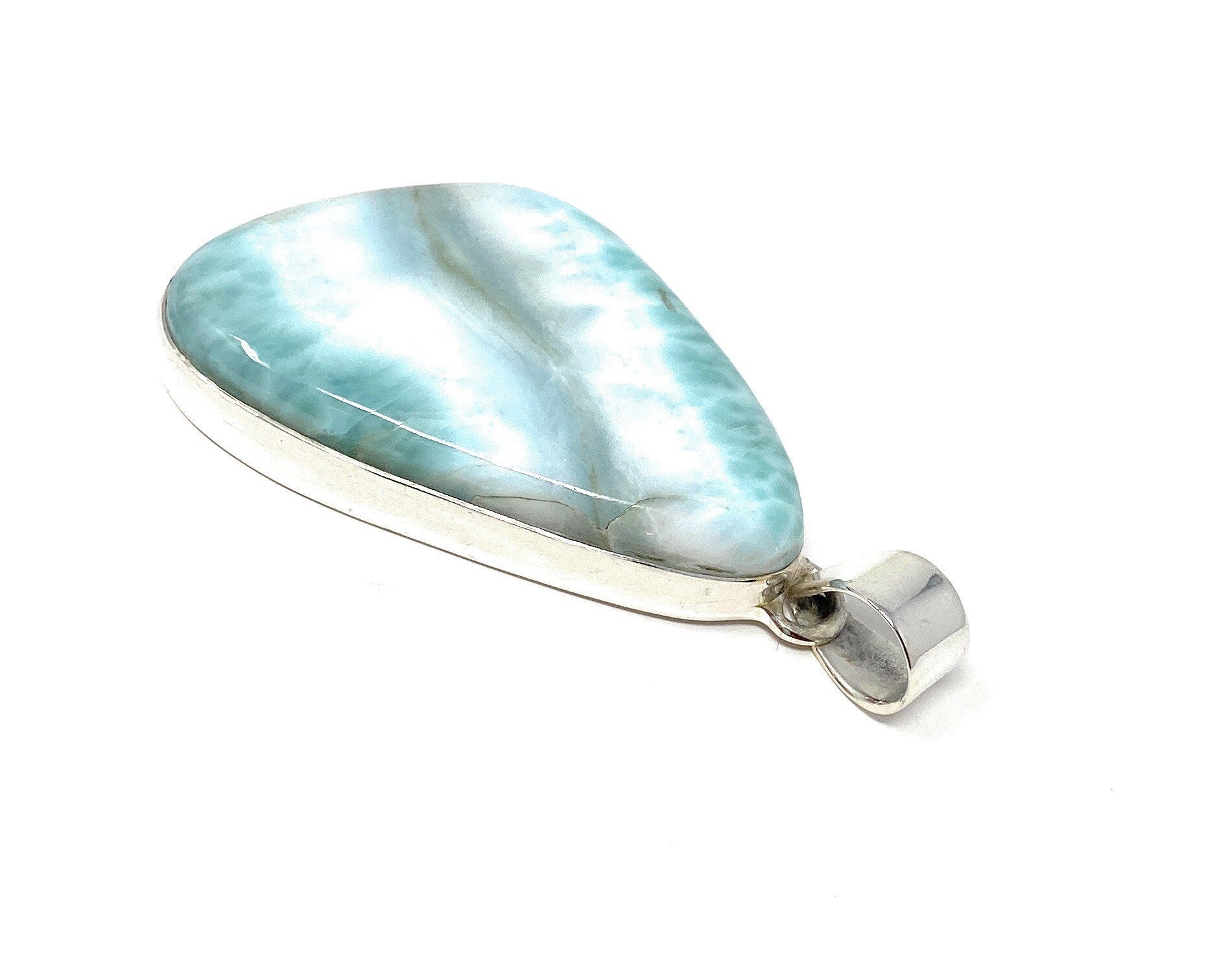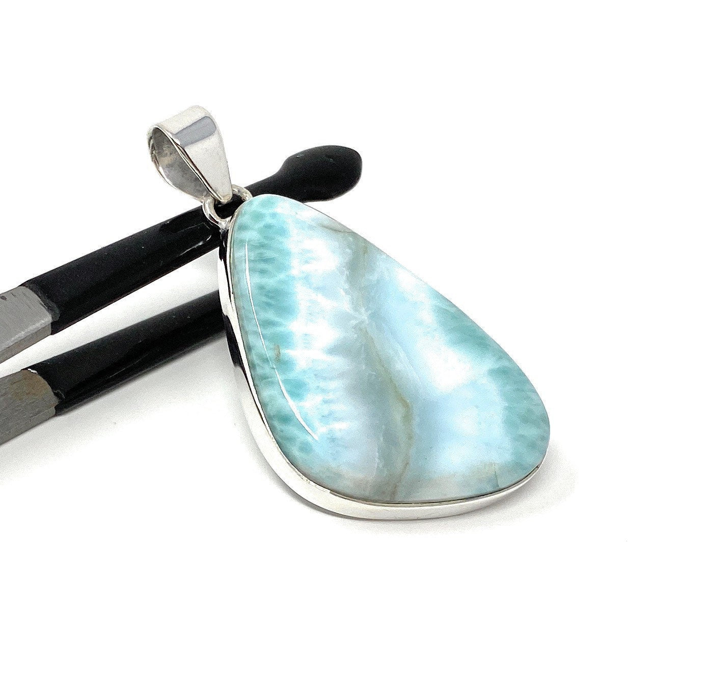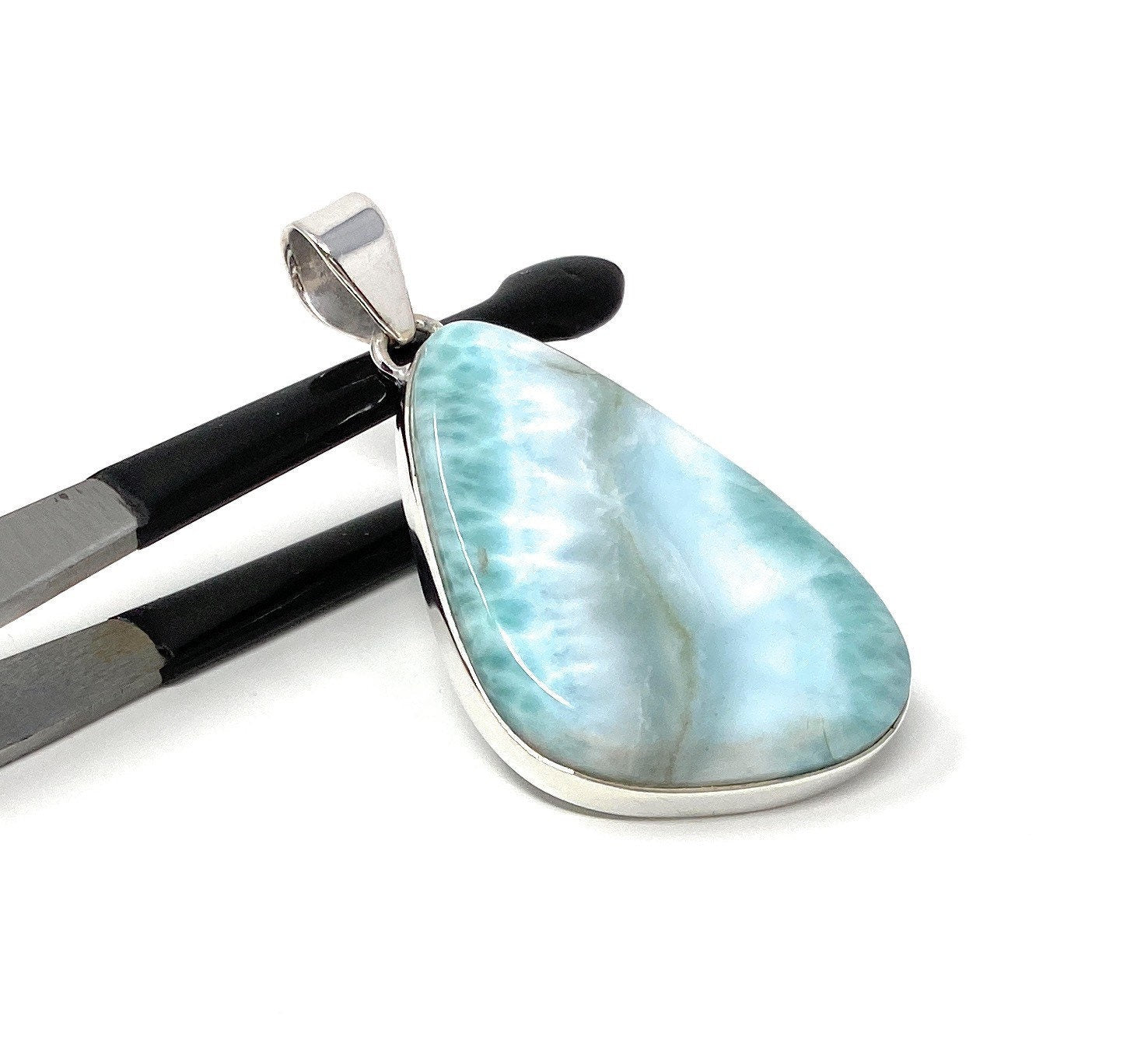 Larimar Pendant, Gemstone Pendant, Bohemian Jewelry, Sterling Silver Pendant, Natural Gemstone Pendant, 54mm X 26.75mm