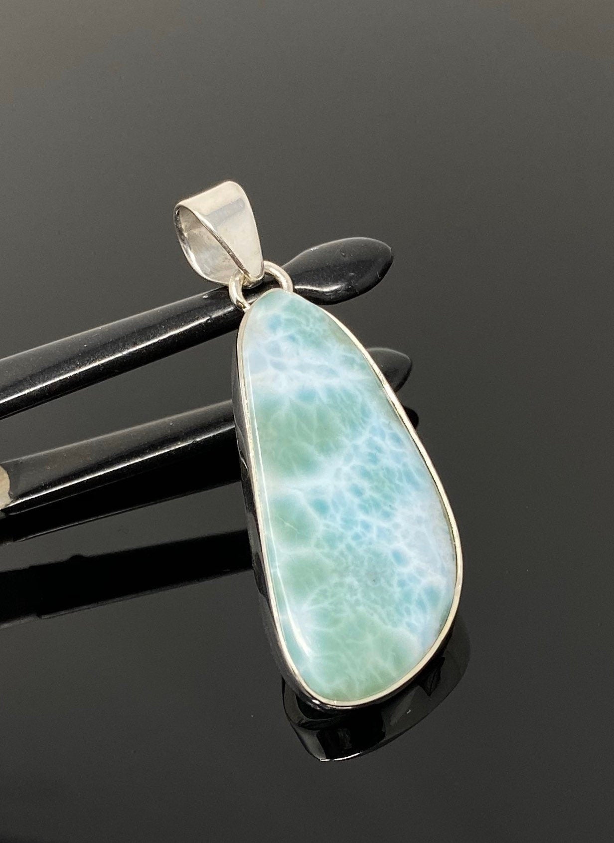 Larimar Pendant, Gemstone Pendant, Bohemian Jewelry, Sterling Silver Pendant, Natural Gemstone Pendant, 51.5 X 18.45mm