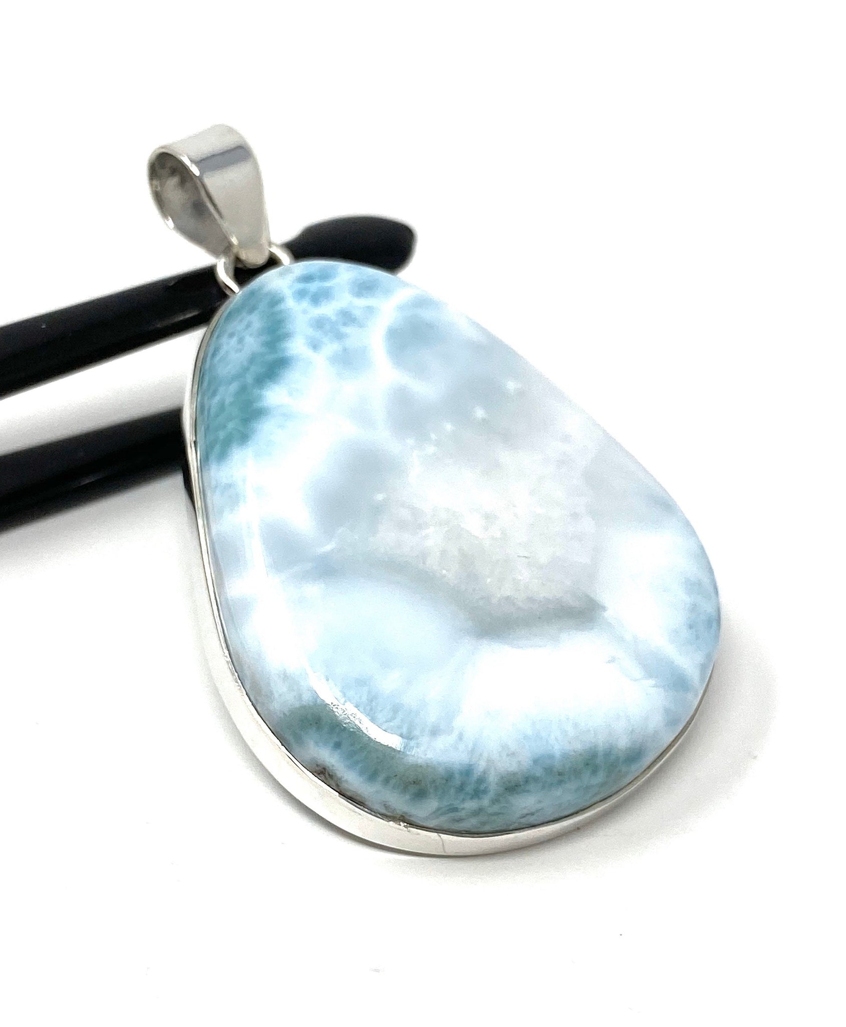 Larimar Pendant, Gemstone Pendant, Bohemian Jewelry, Sterling Silver Pendant, Natural Gemstone Pendant, 60mm x 35mm